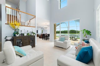 Enjoy peaceful lake views from this spacious two-story home, thoughtfully updated throughout. The main floor features tile flooring, a large guest bedroom with bamboo flooring and a full bath, and a chef-style kitchen with gas appliances that opens to expansive family, living, and dining areas filled with natural light. Upstairs, light bamboo wood flooring continues, adding warmth and character. Additional features include a gas dryer, gas water heater for efficiency, and a total of four bedrooms, including a spacious primary suite. Step outside to a large screened paver lanai overlooking the serene lake--an ideal setting for relaxing or entertaining. Recent upgrades include a newer A/C unit, newer water heater,fresh interior paint (2025), and exterior paint (2023). A 3-car garage and paver driveway provide both practicality and curb appeal. Located in the gated community of Thoroughbred, residents enjoy resort-style amenities and a prime location near shopping, dining, and major roadwaysoffering the perfect blend of convenience and tranquility.