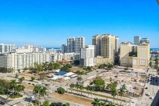 Spectacular views of the city to the ocean from this 17th floor 2-bedroom, 2-bathroom condo in the heart of downtown! Featuring floor-to-ceiling windows with natural light, polished high-end tile floors, and a spacious balcony. The gourmet kitchen boasts stainless appliances, a wine cooler, and sleek, modern cabinetry. The master suite includes a walk-in closet and a spa-like bathroom. The 2nd bedroom also has a walk-in closet with access to the en-suite bathroom. CityPlace South Tower is a class ''A'' building offering valet service, a rooftop pool with panoramic views, fitness center, social lounge, concierge, and secure parking, all within a short distance of vibrant local dining, shops and Palm Beach Island. Also available for Lease.