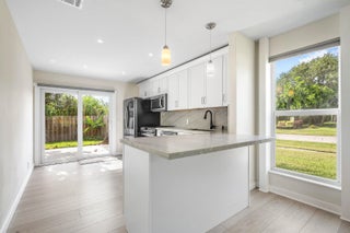 Welcome to this stunning 3/2 townhome, completely rebuilt, offering a spacious and modern design. This home boasts vinyl flooring throughout, full impact windows and doors, new Rheem AC, a gourmet kitchen with full quartzite counters and backsplash, modern finishes, newer stainless steel appliances, wet bar, and laundry room. The use of high quality materials is evident at every corner. The redesigned bathrooms add a touch of luxury, while the private corner lot features a fenced backyard, automatic sprinkler system, and private patio. There's plenty of space in the attic with an additional 130 sq. ft. of storage. Located near WPB Airport, downtown, I95, and the Turnpike. Don't miss this opportunity to own a home that blends modern living, convenience, and immediate investment potential.
