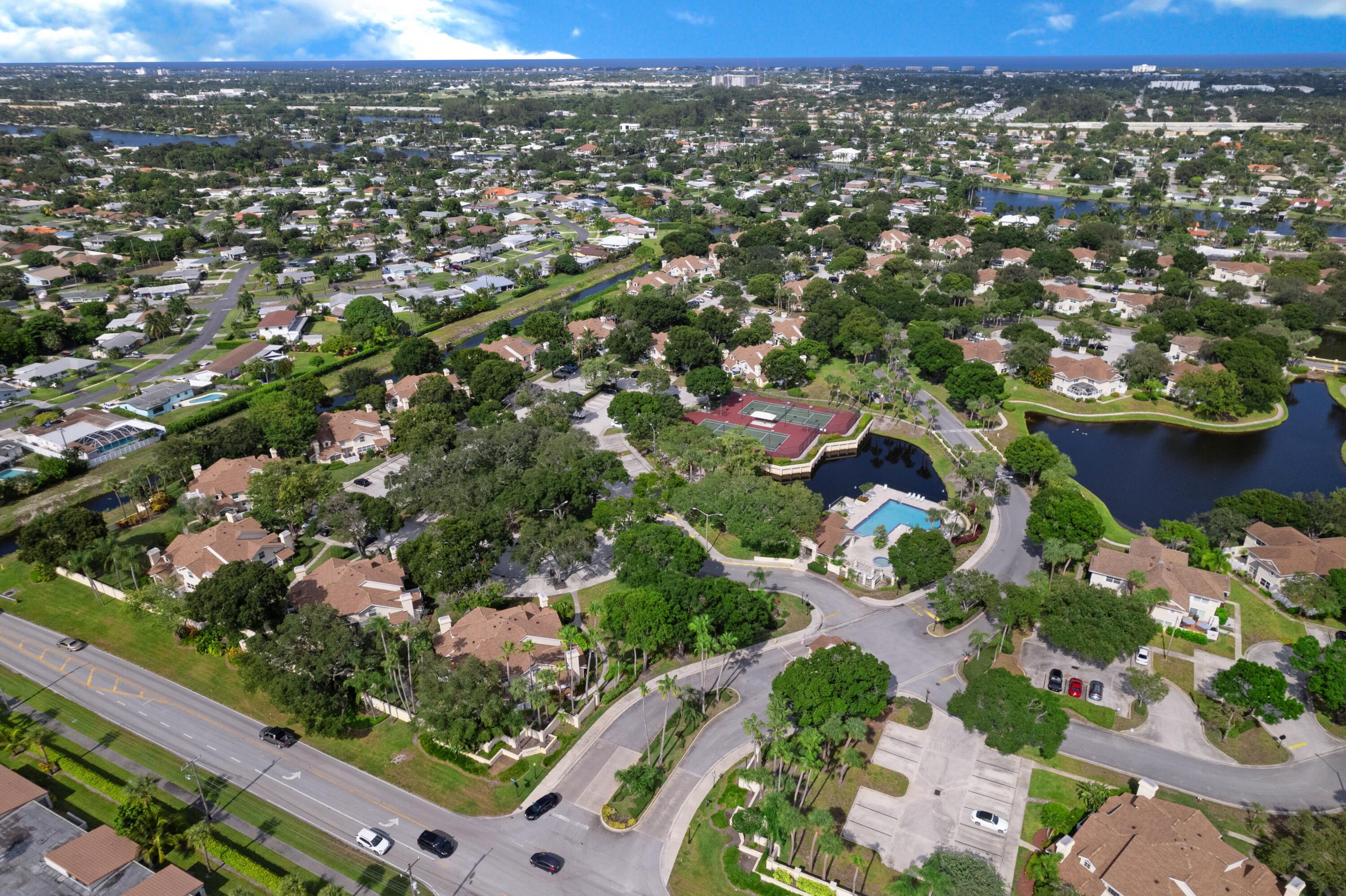 Welcome to Wellesley in the sought-after community of Lake Clarke Shores. This 3-bed, 2-bath townhome lives like a single-family home, featuring tall ceilings, a private entry, a fenced-in courtyard, and charming exterior. Highlights include 2025 roof, impact windows with accordion shutter protection, newer kitchen appliances, a newer AC, a separate laundry room, and an abundance of natural light throughout. The layout offers a convenient first-floor ensuite, with the primary suite and an additional guest bedroom located upstairs. As the lowest-priced 3-bedroom home in Wellesley, this is a great opportunity to personalize and make it your own.Wellesley is a manned gated community offering a private pool, children's playground, two tennis courts, and a scenic walking trail around the lakResidents also enjoy the benefits of Lake Clarke Shores, including a dedicated local police force, community parks, and access to a boat launch for fishing and watersports. Ideally located just minutes from downtown West Palm Beach and major highwaysthis location is hard to beat.