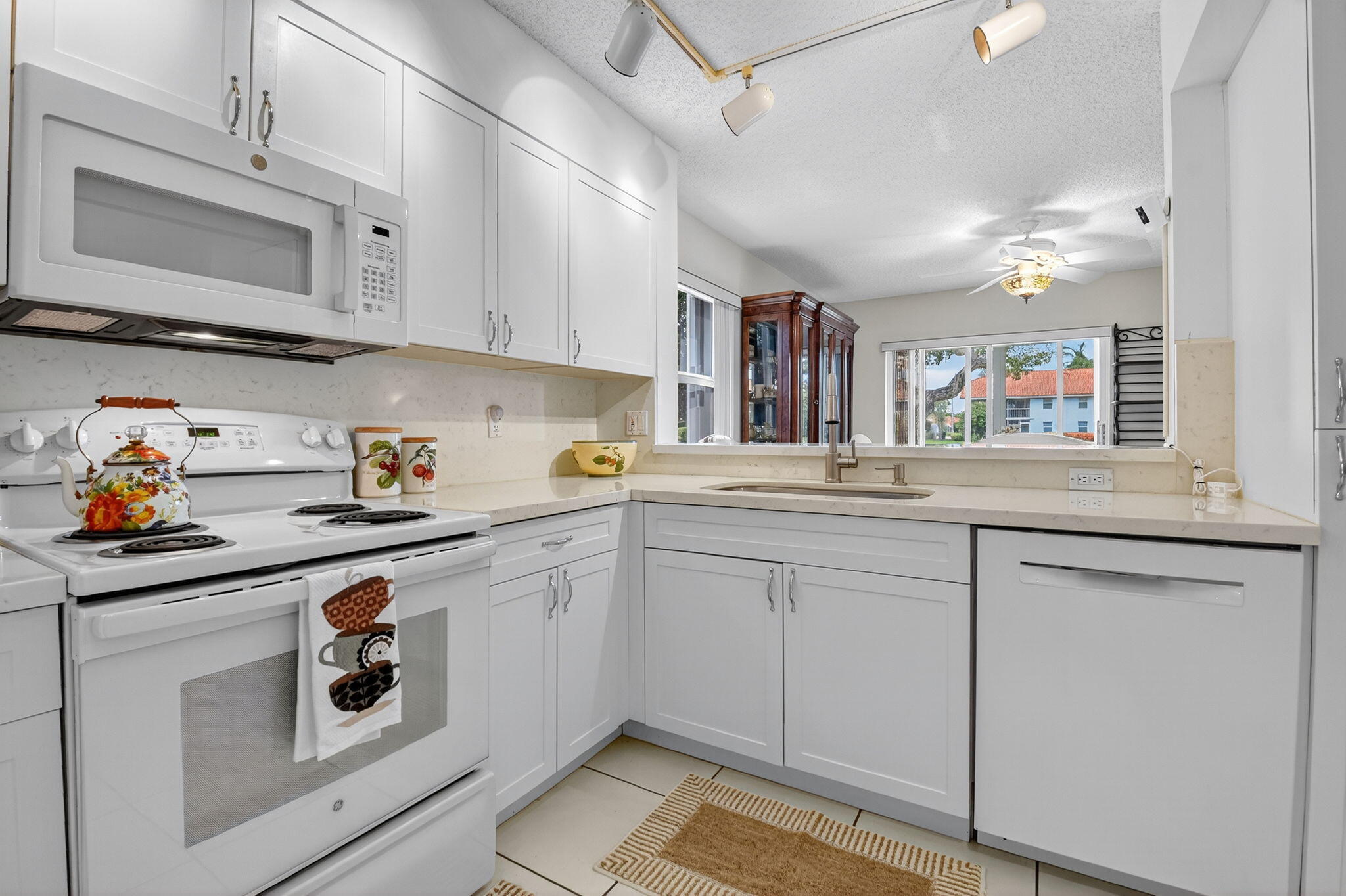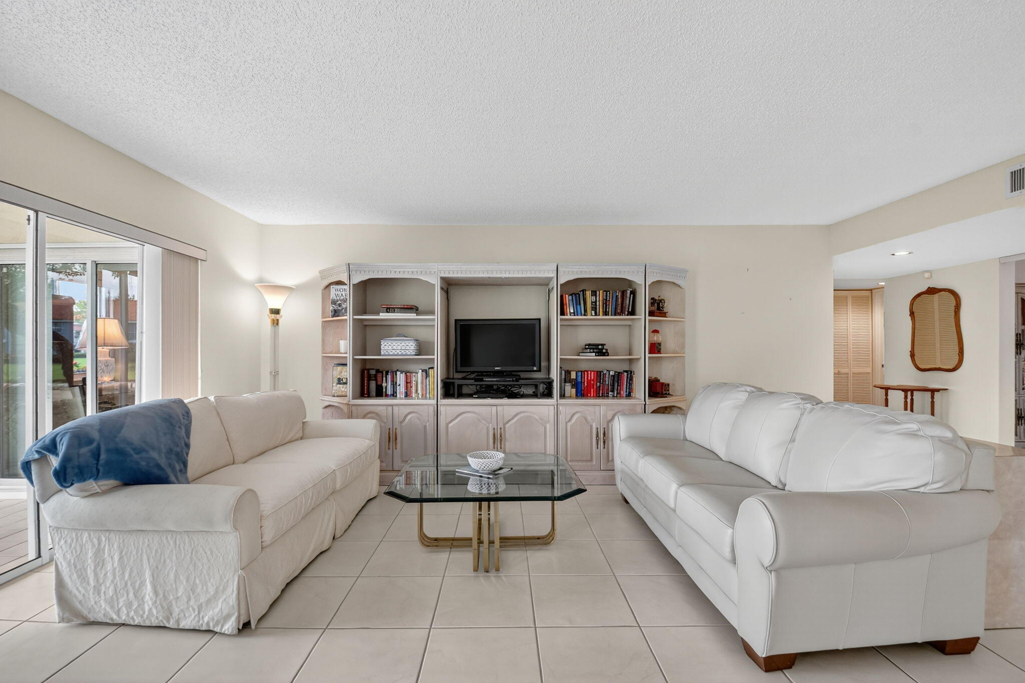Welcome to this beautifully maintained and brightly updated 2-bedroom, 2-bathroom condo with a bonus den/office/bedroom, walking distance to the cafe for breakfast or lunch in the Palm Isles community. This home features: NEW impact windows throughout and NEW A/C system! From the moment you enter, you'll appreciate the open layout that creates seamless flow. The well-appointed eat-in kitchen with quartz countertops, ample cabinetry, and modern finishes. Tile throughout! Bathrooms have been tastefully updated and a dedicated laundry room with full-size washer, dryer, and extra storage adds to the home's practicality. Step outside to the large, screened-in patio enclosed with sliding glass doors and enjoy lake views in your own private oasis.Covered parking just steps from your door and Private outdoor storage closet. Situated just a short walk from the soon-to-be-renovated clubhouse, you'll enjoy access to an array of amenities: Indoor & outdoor pools, Performing arts theater, Pickleball & tennis courts, Fitness centers, Billiards, card rooms & more. On-site café serving breakfast and lunch. Located near the heart of Boynton Beach, Palm Isles offers a vibrant 55+ lifestyle with everything you need. Don't miss your chance to own this move-in ready, lakefront retreat - come by today!