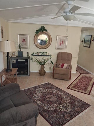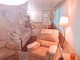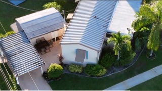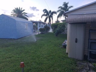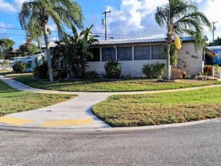 Corner lot sought after, well maintained manufactured home in a very friendly, active age 55+ community that's resident owned. NO lot fees! 1 time land share fee $750 refundable at resale. Turnkey all furniture and appliances included, full size washer/dryer in home, newer central A/C & water heater, Aluminum roof coated every few years, nice bright sunroom entry with wall A/C unit, kitchen island for entertaining, complex heated pool just refinished & clubhouse with many free concerts, BBQ's, games day, holiday parties, shuffleboard, bocce, petanque courts, golf driving cage, motorcycles & golf carts allowed, close to I95 and Turnpike, WPB & Ft Laud airports, 5 miles to beach, oversized shed 160 s.f. half bathroom & A/C unit, can be guest house or shelter, Sun shade patio, Hurry!