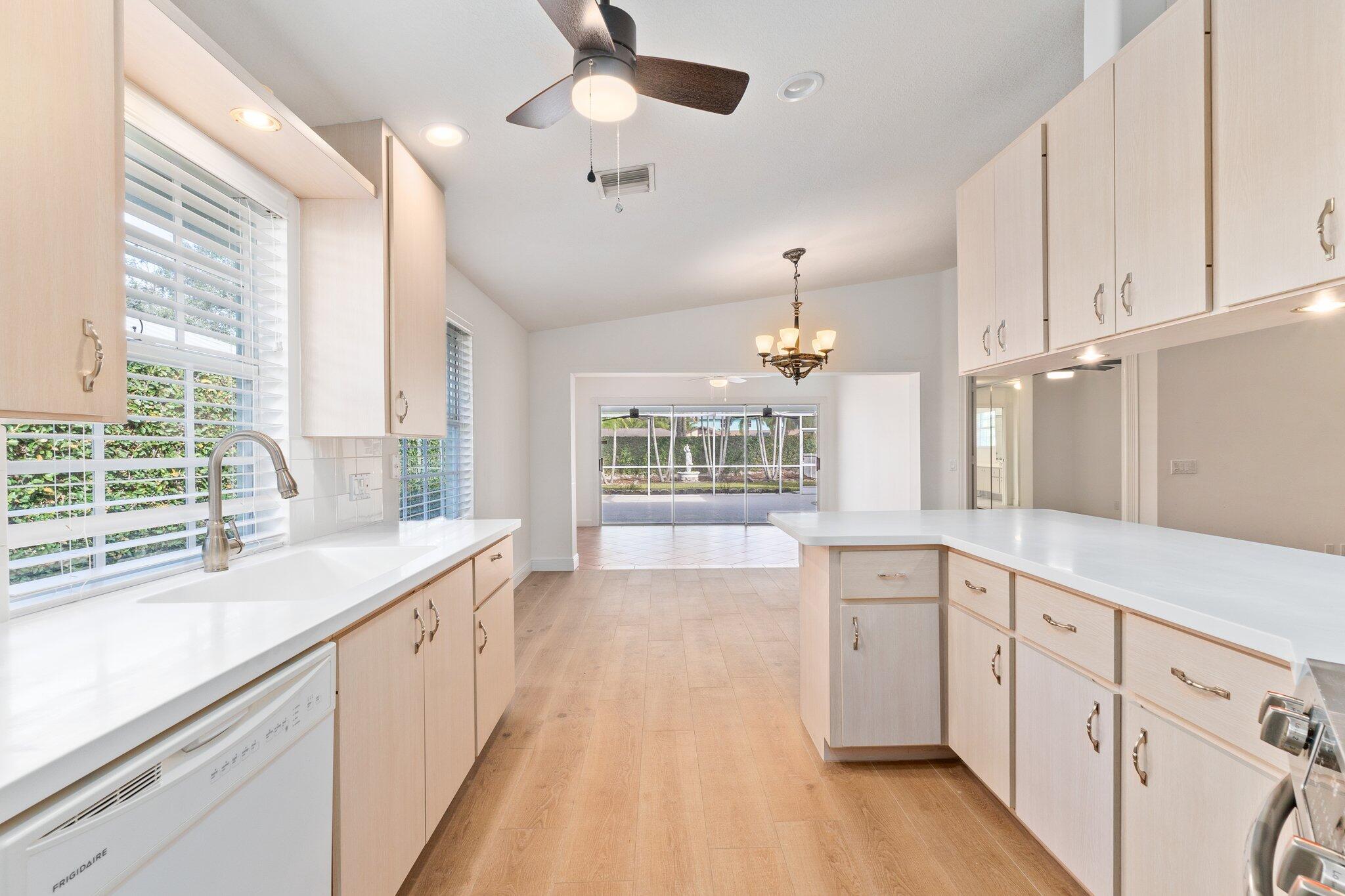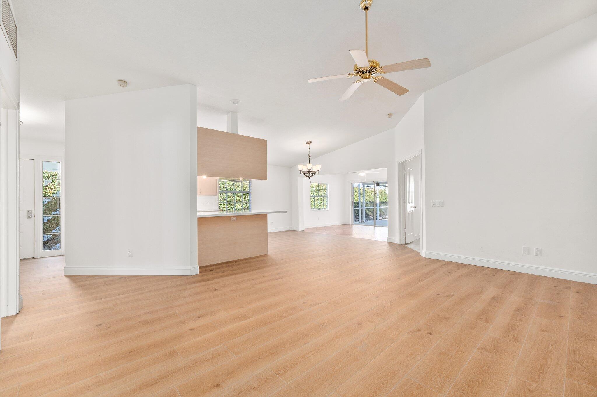 If you are looking for a low maintenance property in a prime Martin County location, this solid concrete villa is a great option! The DiVosta Capri is a timeless 1 story villa that has a reputation for its quality construction. The property offers 2 spacious suite style bedrooms, a large open kitchen & family room, extended sitting room & large screened lanai. The back yard is fully fenced & private. The roof was replaced in 2016, AC 2018, new flooring installed in 2023. The HOA fee includes lawn maintenance & landscaping, internet, cable, building insurance & a 24 hr. manned gate & onsite property management. There are new pickleball & tennis courts, heated pool, toddler pool, playground & bocce ball courts. Fantastic location with quick access to the turnpike & I-95.