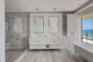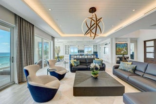 Ocean Ridge townhome, perched directly on the sand, showcases a sunny deck and an expansive wraparound balcony perfect for catching the sunrise. Designed with a sophisticated beach-chic flair, every room frames sweeping views of golden coastline and shimmering aquamarine waters. The main level boasts a light-filled open-concept living space. Downstairs rooms make ideal guest retreats, while the top-level primary suite, with its panoramic oceanfront perch, sits in the sunny southeast corner.5001 Old Ocean Boulevard, Ocean Ridge, Florida. A hidden jewel along the Gold Coast. Known for its serene charm, Ocean Ridge is treasured for its tranquil vibe and untouched natural beauty, nestled between the Atlantic and the Intracoastal Waterway. PROPERTY: Tucked behind tropical landscaping, a gate, and a 40-foot-deep seawall, this direct oceanfront townhome invites an alfresco lifestyle. Residents enjoy sunny days on the sundeck or lounging on the wraparound balconies that gaze out over endless sandy shoreline and the sparkling sea. RESIDENCE: This three-level, four-bedroom residence captures the essence of beachfront luxury with 7,148± square feet of sleek, modern elegance. Built new in 2018, it's engineered with high-impact windows and doors and styled for maximum ocean exposure. Every room, even the laundry, basks in views and breezes. On the main floor, grand double doors lead into an open living/dining/kitchen space, seamlessly extended by sliding glass doors that open to the sunrise-facing terrace. The living room features a lighted shiplap-paneled ceiling and built-in display cabinetry, while the double-island kitchen stuns with high-end appliancesSub-Zero refrigeration, Wolf oven/range, four dishwasher drawers, and a butler's pantry with wine cooler and wet bar. The staircase and elevator, enclosed in glass, glow with natural light. Upstairs, the primary suite opens to a private balcony and includes a spa bath with freestanding soaking tub, glass shower, dual vanities, smart toilet, and ocean-view windows. Another guest suite shares this incredible view. The lower level hosts a casual family room with a kitchenette, two guest suites, and spectacular seaside views. Additional features include an office, powder room, laundry room, and three-car garage. Porcelain tile floors flow throughout, and modern comforts include Sonos sound, motorized blinds, sprinkler system, and zoned A/C with floor-by-floor thermostats. DISCLAIMER: Information published or otherwise provided by the listing company and its representatives including but not limited to prices, measurements, square footages, lot sizes, calculations, statistics, and videos are deemed reliable but are not guaranteed and are subject to errors, omissions or changes without notice. All such information should be independently verified by any prospective purchaser or seller. Parties should perform their own due diligence to verify such information prior to a sale or listing. Listing company expressly disclaims any warranty or representation regarding such information. Prices published are either list price, sold price, and/or last asking price. The listing company participates in the Multiple Listing Service and IDX. The properties published as listed and sold are not necessarily exclusive to listing company and may be listed or have sold with other members of the Multiple Listing Service. Transactions where listing company represented both buyers and sellers are calculated as two sales. "No payments made until title passes" Some affiliations may not be applicable to certain geographic areas. If your property is currently listed with another broker, please disregard any solicitation for services. Information published or otherwise provided by seller, listing company or its representatives is deemed reliable but are not guaranteed and subject to errors, omissions, or changes without notice. Copyright 2025 by the listing company. All Rights Reserved.