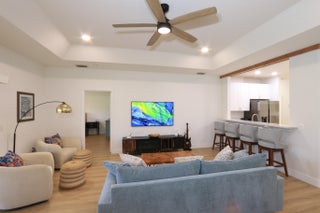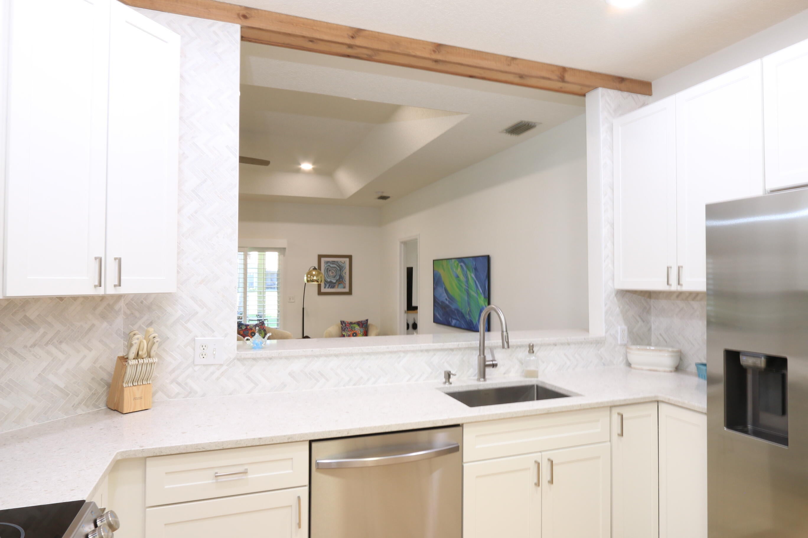 Gorgeous Upgraded Villa Overlooking the Gator Trace Golf Course. Stress free living, HOA takes care of the full exterior of the building including roof, lawn care, exterior insurance, cable and internet. Luxury vinyl plank Flooring throughout, Plantation shutters, Ceiling fans and recessed lighting. Beautiful Kitchen with white shaker style cabinets, soft close doors and drawers. Quartz countertops, marble backsplash, Stainless Steel Appliances. Master Bath has walk in shower with floor to ceiling tile plus free-standing soaker tub. Dual sinks. Dual flush toilet with bidet attachment. Newer Roof and AC. Accordian Shutters. Furniture negotiable.