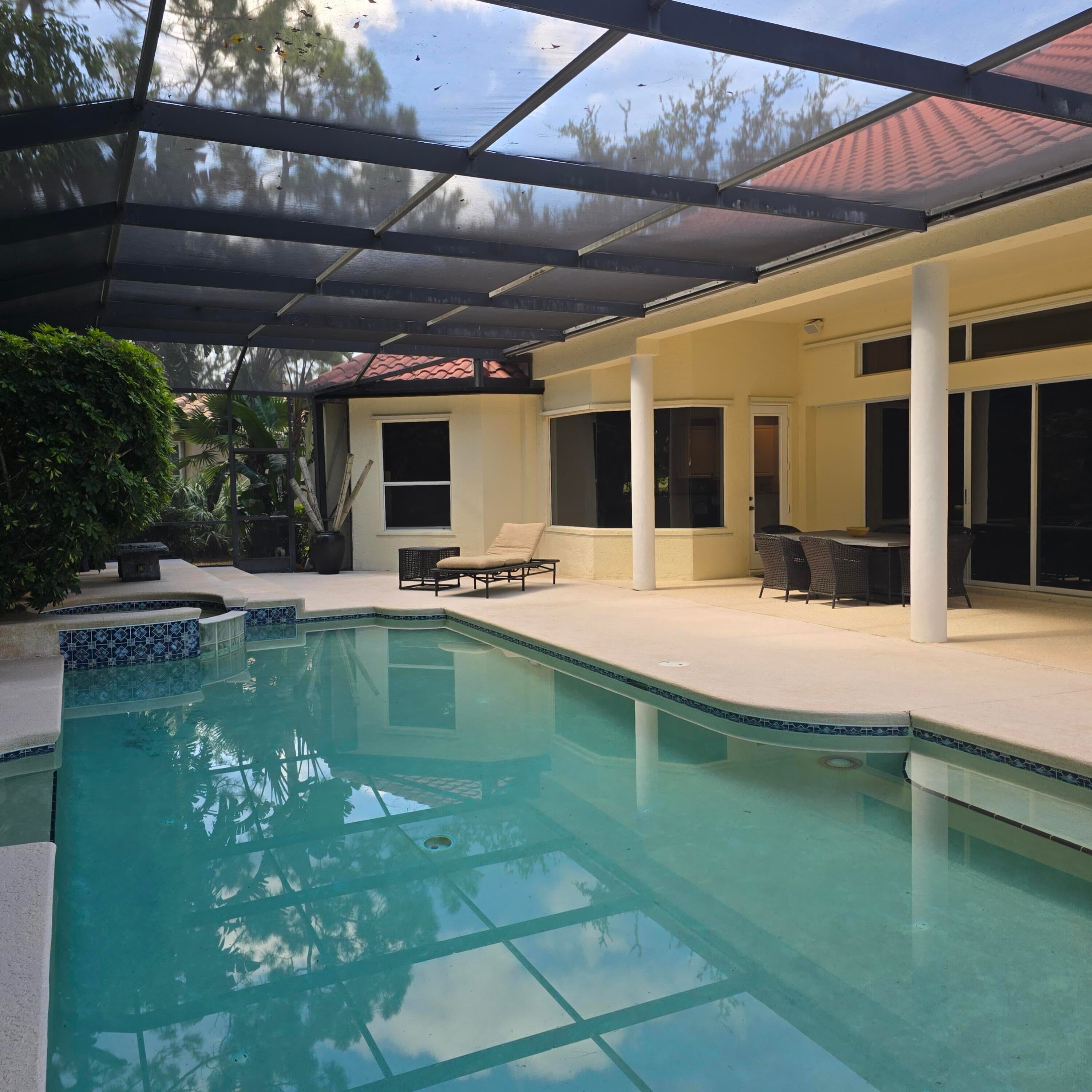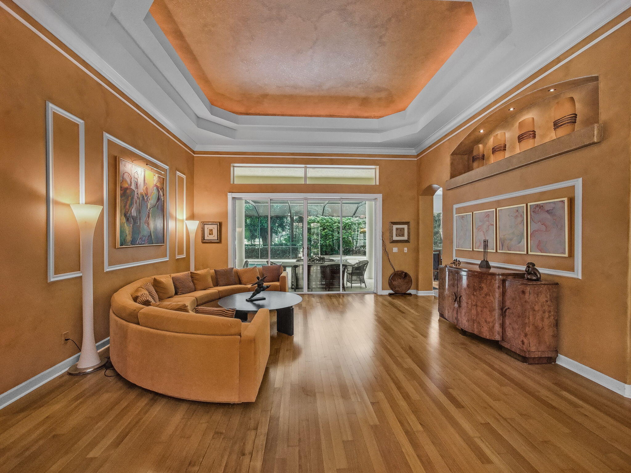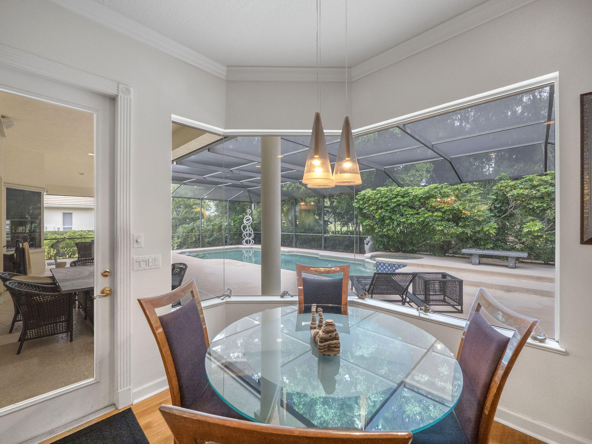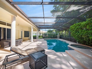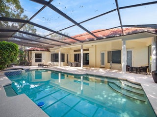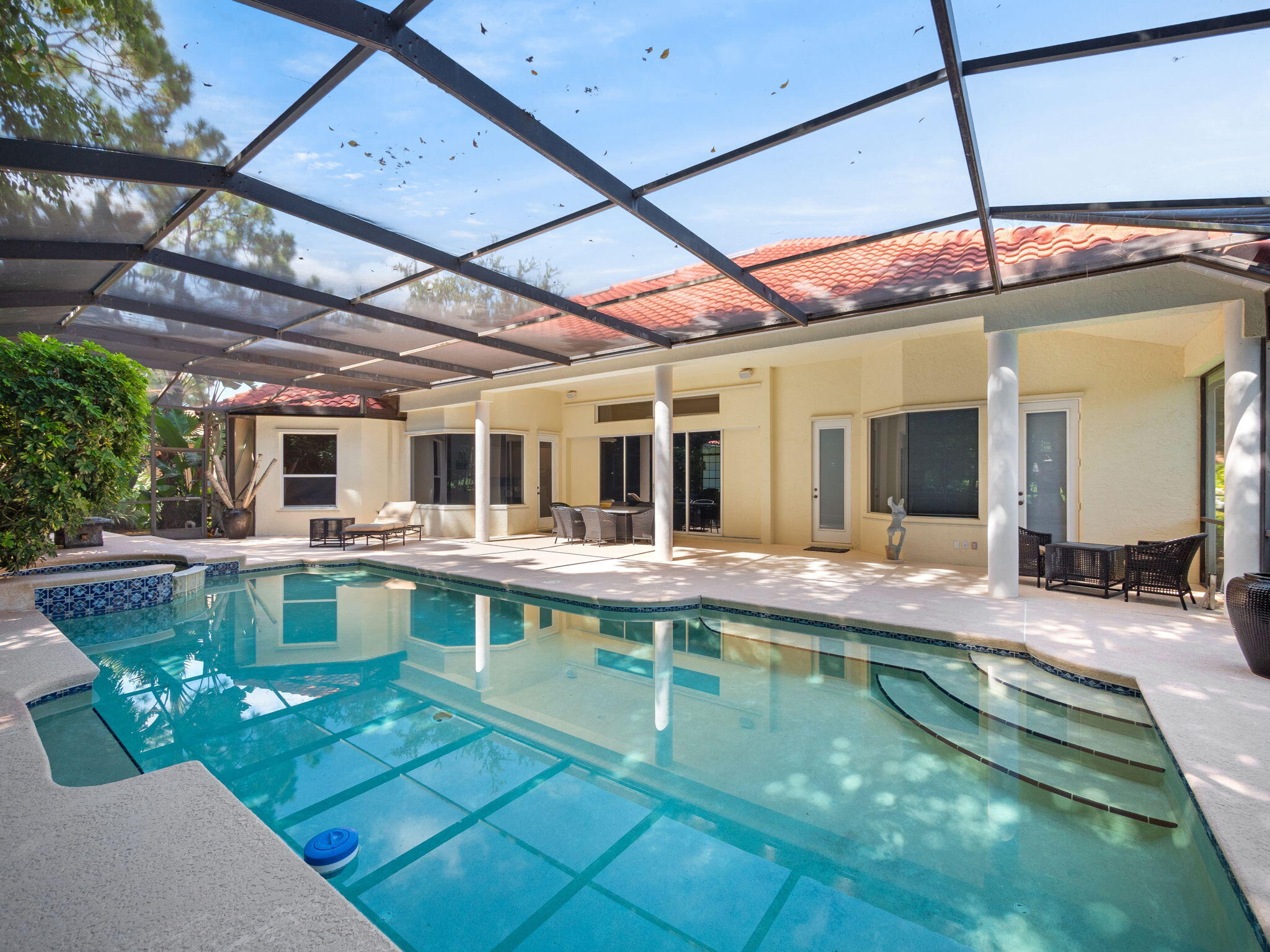 Welcome to 8212 Kiawah Trace, an exquisite custom-built residence nestled in the prestigious PGA Village! Perfectly positioned on the 2nd hole of the Ryder Course, this 3BR/+Den/Office/3BTH/2CG pool home offers luxury living with every detail thoughtfully designed for comfort, elegance, and entertainment. Experience timeless craftsmanship with rich Bartlett teak wood floors, designer lighting, and art niches throughout. The home's elegant layout features a formal living room, a cozy family room with fireplace, & a spacious formal dining room, ideal for hosting intimate dinners or larger gatherings. Open kitchen w/plenty of cabinetry, breakfast bar, glass cooktop, wall oven, wine refrigerator & pantry! The open concept and flow into the living spaces ensure you'll always feel connected.Retreat to the oversized primary owner's suite, complete with his & her walk-in closets, a spa-like grand bathroom with a walk-in double shower, garden tub, dual vanities, private water closet with bidet, and custom finishes. Guests will love the oversized bedrooms, and jack-n-jill bath! Separate desk area for workspace! Additional features include venetian plaster walls and custom faux finishes, ceiling fans throughout, a 15-speaker surround sound system, central vacuum system, reverse osmosis + water softener, Generac generator & a 500-gallon propane tank, alarm system & more!! Beautifully professionally landscaped with exceptional curb appeal. Enjoy sunny days from the expansive covered and screened lanai with sparkling pool and spa, your private oasis overlooking lush golf course views, ideal for relaxing or entertaining guests in style. Yes, a Cabana Bath too! Located in one of Florida's most sought-after golf communities, PGA Village offers premier amenities, world-class golf, a manned guard house and easy access to shopping, dining, and I-95. Don't miss this opportunity to own a truly one-of-a-kind home that blends luxury, functionality, and resort-style living in PGA Village!