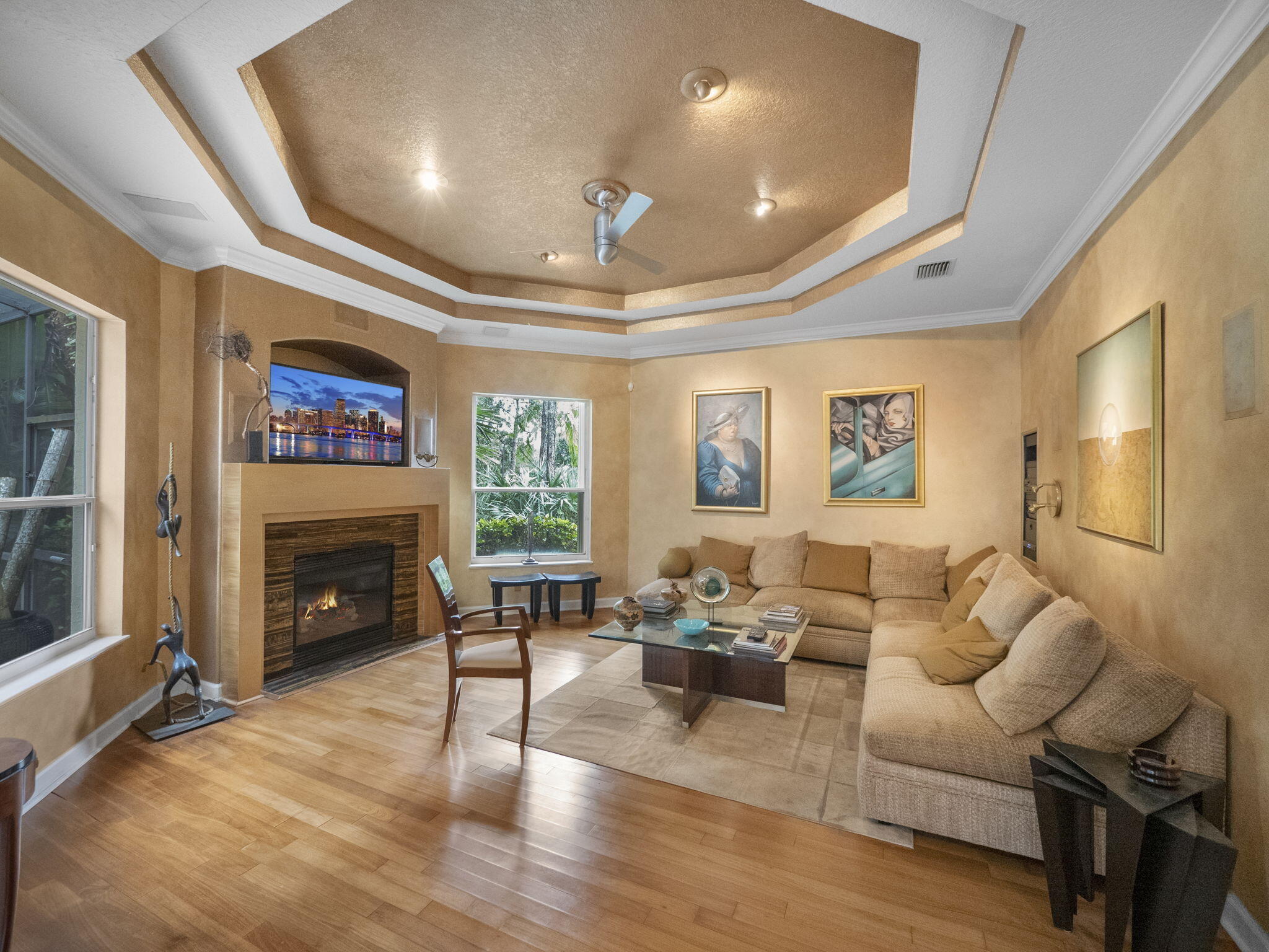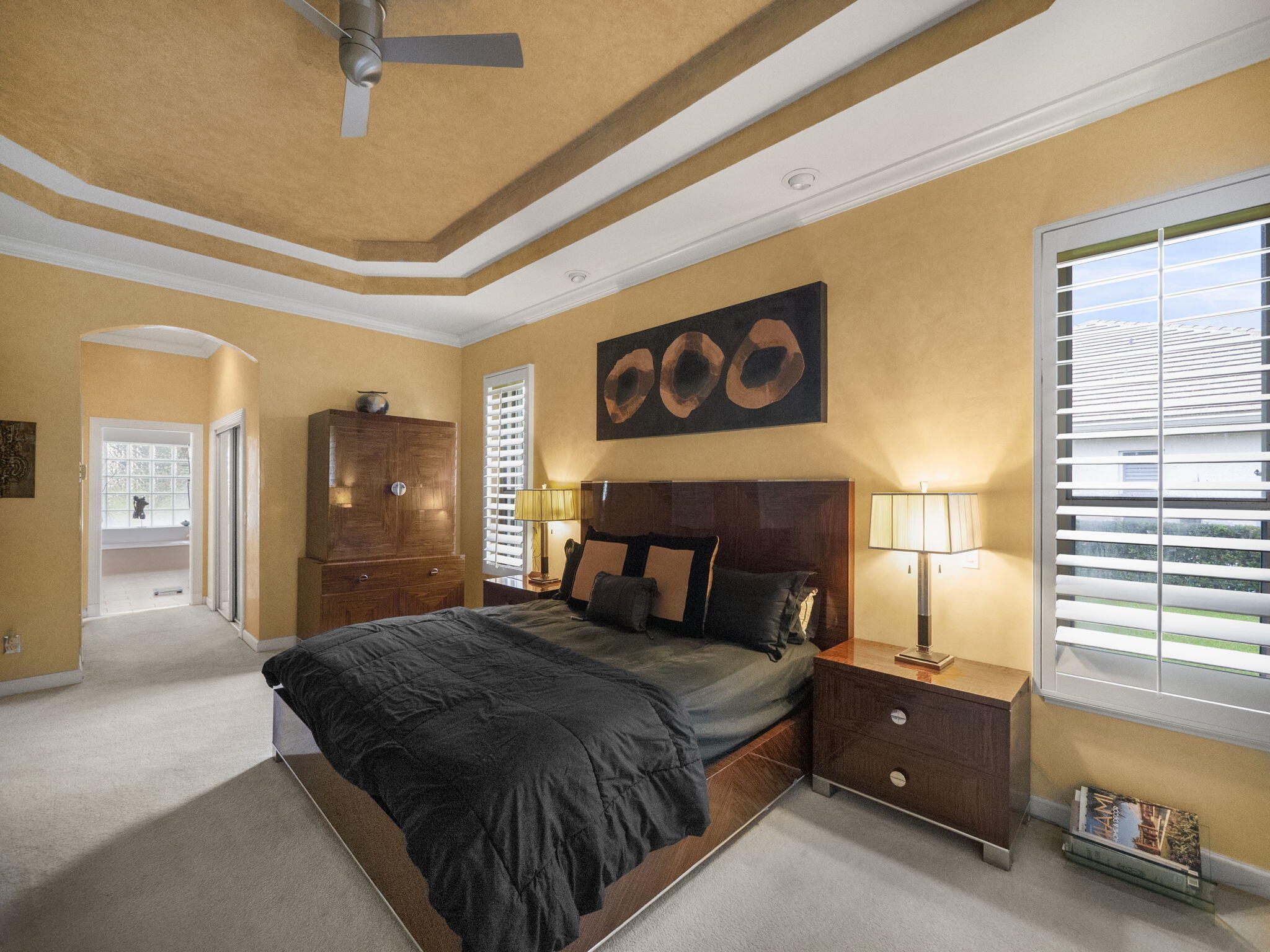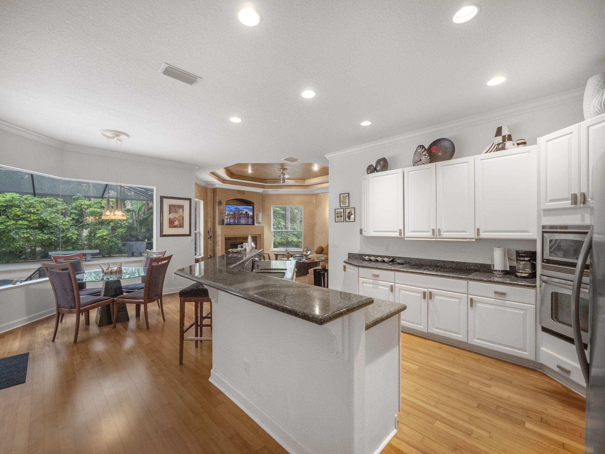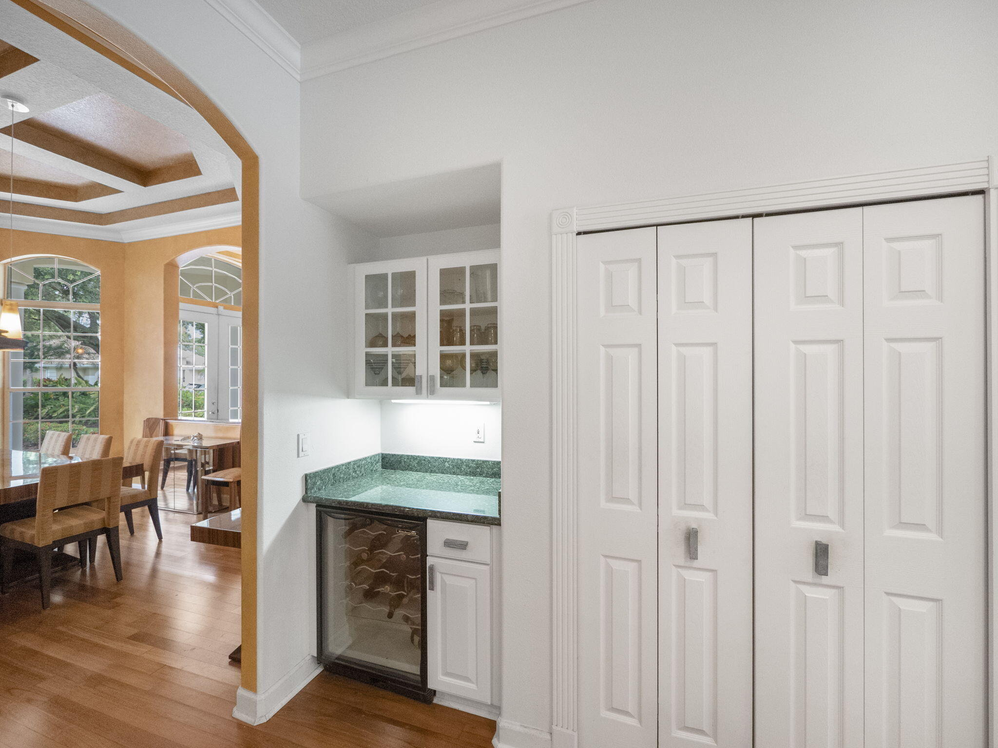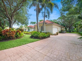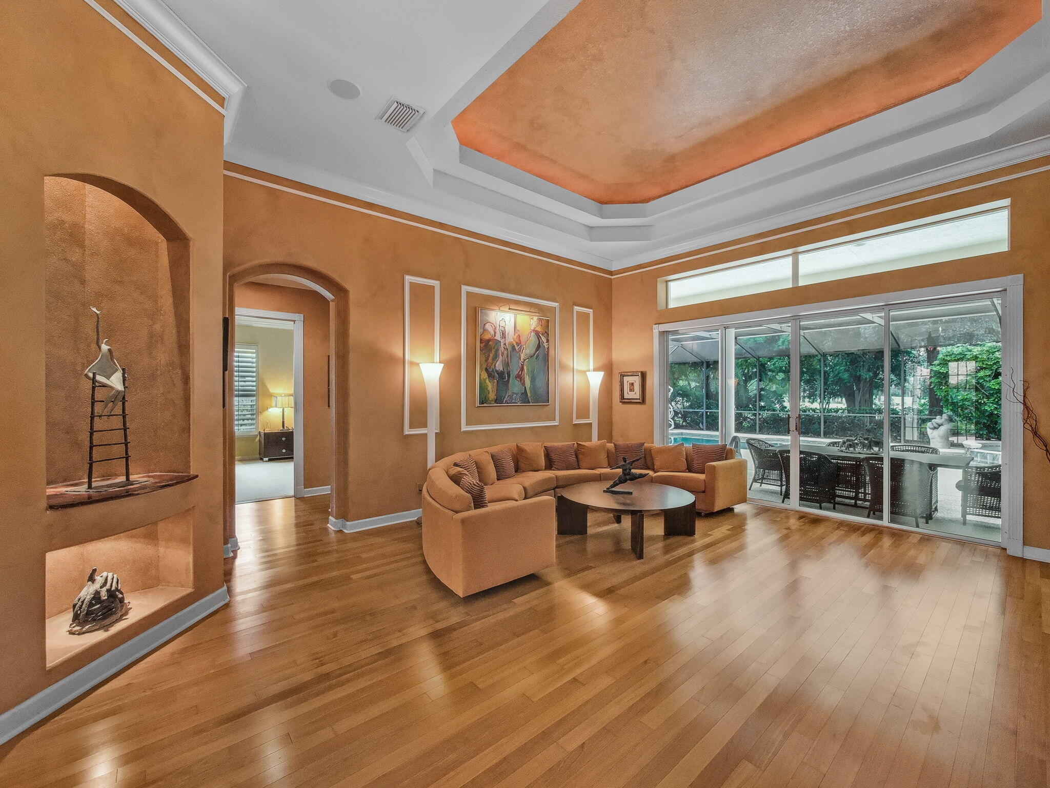Welcome to 8212 Kiawah Trace, an exquisite custom-built residence nestled in the prestigious PGA Village! Perfectly positioned on the 2nd hole of the Ryder Course, this 3BR/+Den/Office/3BTH/2CG pool home offers luxury living with every detail thoughtfully designed for comfort, elegance, and entertainment. Experience timeless craftsmanship with rich Bartlett teak wood floors, designer lighting, and art niches throughout. The home's elegant layout features a formal living room, a cozy family room with fireplace, & a spacious formal dining room, ideal for hosting intimate dinners or larger gatherings. Open kitchen w/plenty of cabinetry, breakfast bar, glass cooktop, wall oven, wine refrigerator & pantry! The open concept and flow into the living spaces ensure you'll always feel connected.Retreat to the oversized primary owner's suite, complete with his & her walk-in closets, a spa-like grand bathroom with a walk-in double shower, garden tub, dual vanities, private water closet with bidet, and custom finishes. Guests will love the oversized bedrooms, and jack-n-jill bath! Separate desk area for workspace! Additional features include venetian plaster walls and custom faux finishes, ceiling fans throughout, a 15-speaker surround sound system, central vacuum system, reverse osmosis + water softener, Generac generator & a 500-gallon propane tank, alarm system & more!! Beautifully professionally landscaped with exceptional curb appeal. Enjoy sunny days from the expansive covered and screened lanai with sparkling pool and spa, your private oasis overlooking lush golf course views, ideal for relaxing or entertaining guests in style. Yes, a Cabana Bath too! Located in one of Florida's most sought-after golf communities, PGA Village offers premier amenities, world-class golf, a manned guard house and easy access to shopping, dining, and I-95. Don't miss this opportunity to own a truly one-of-a-kind home that blends luxury, functionality, and resort-style living in PGA Village!