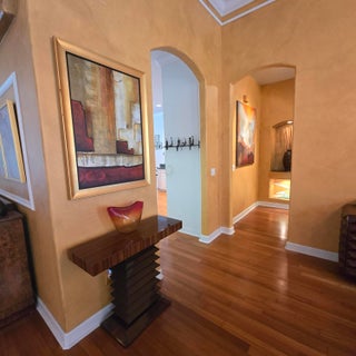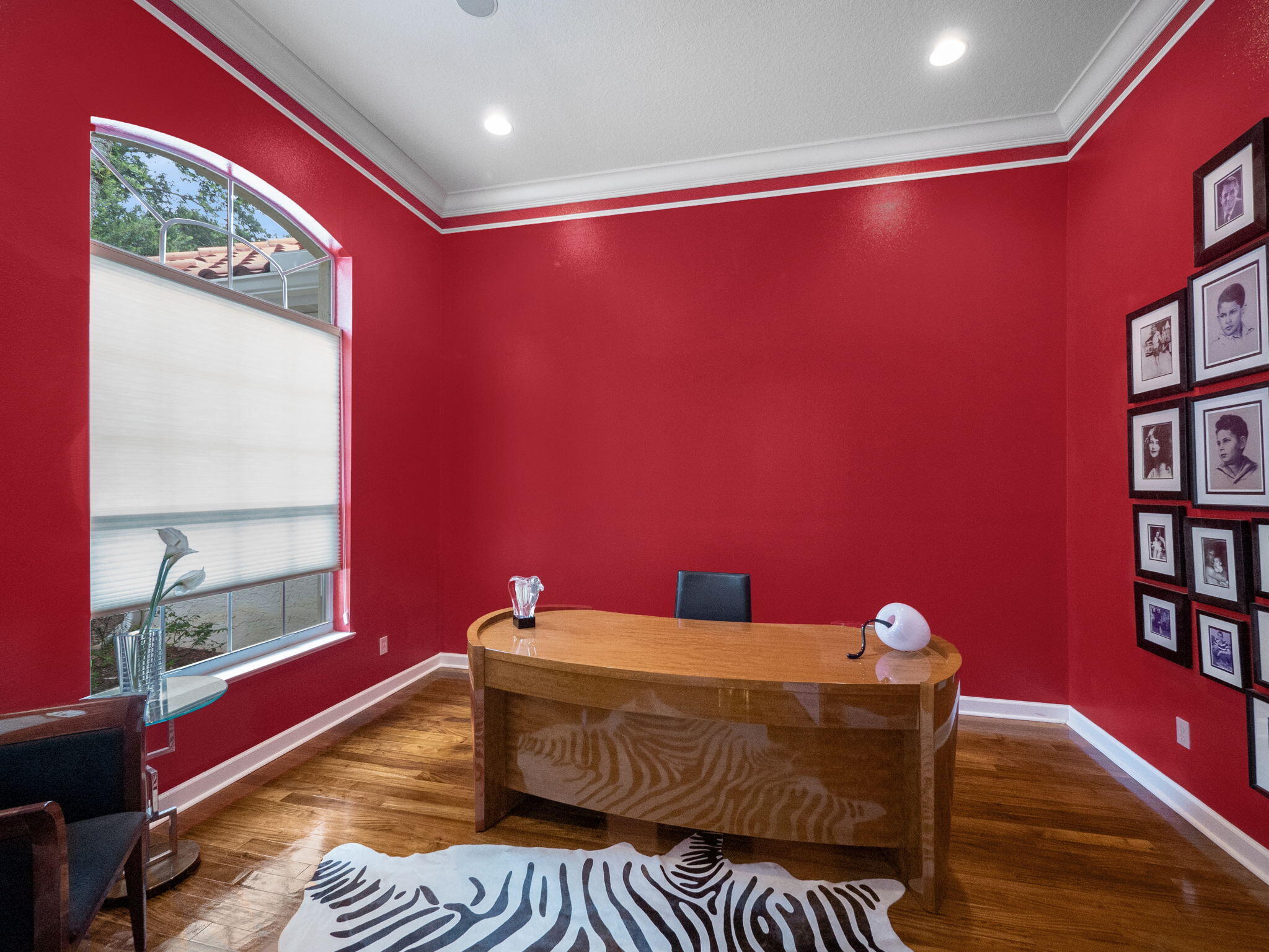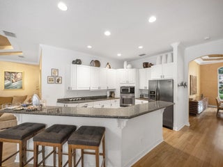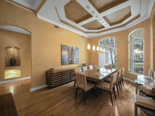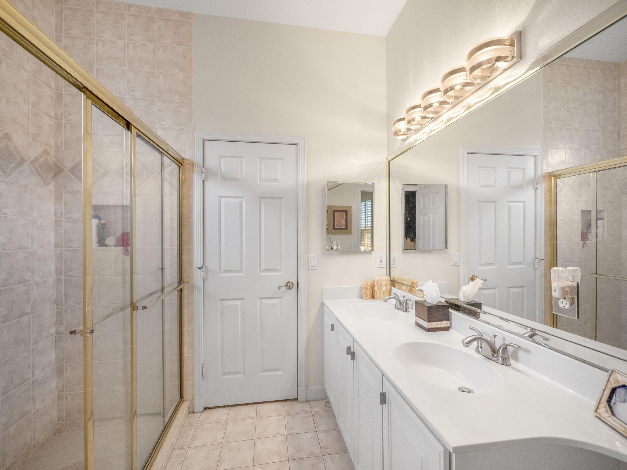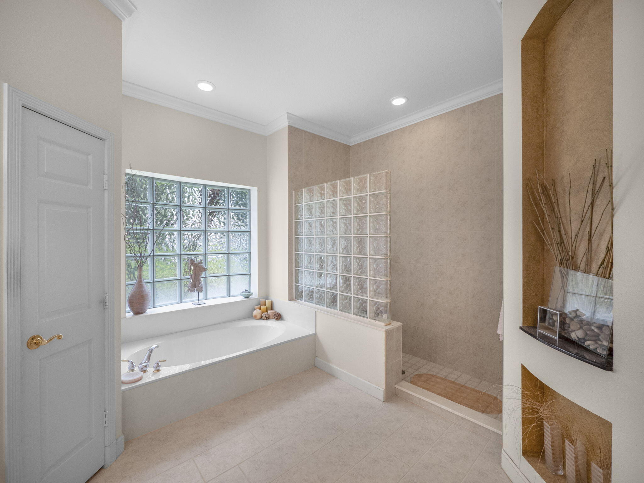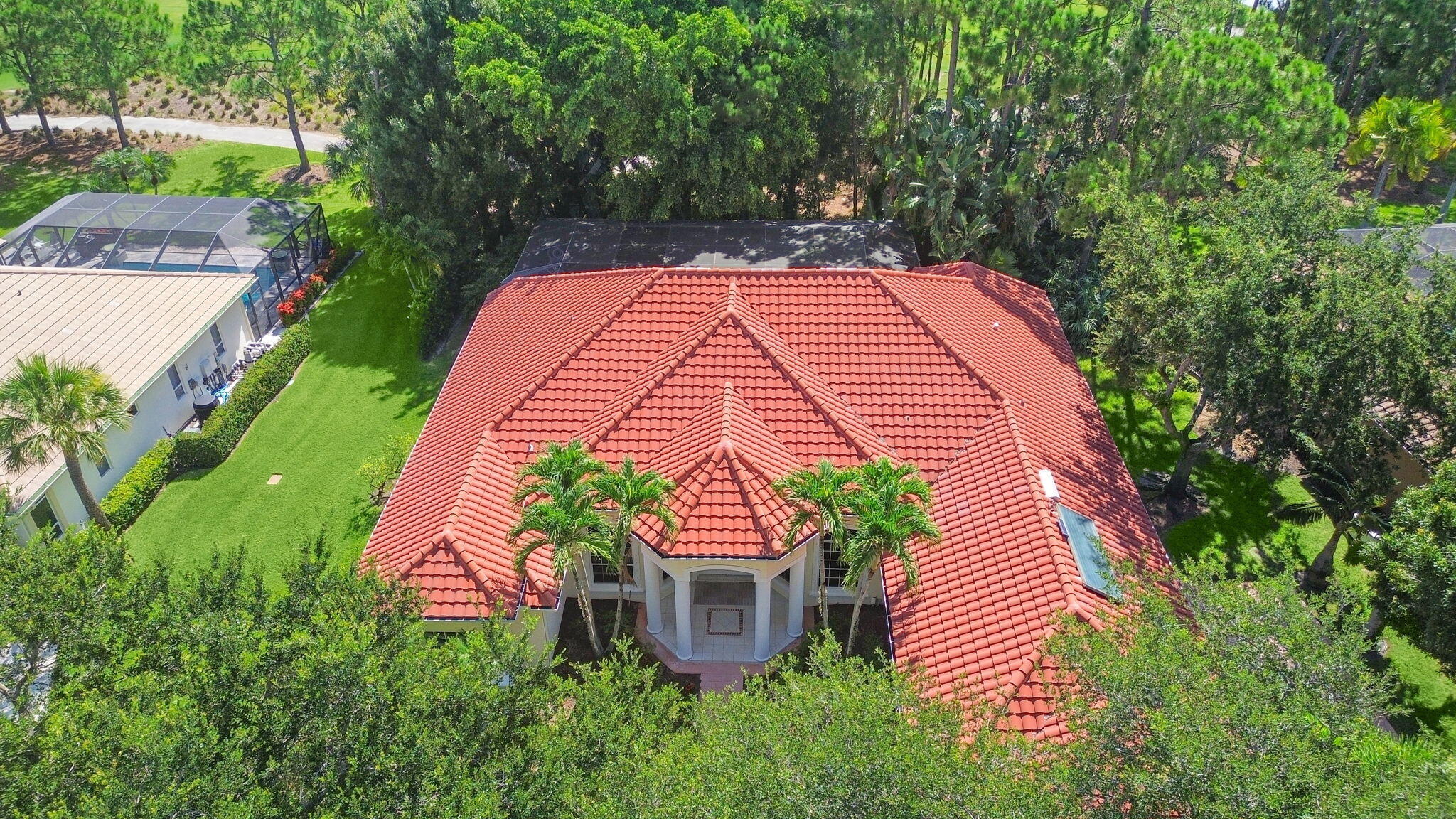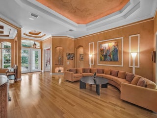 Welcome to 8212 Kiawah Trace, an exquisite custom-built residence nestled in the prestigious PGA Village! Perfectly positioned on the 2nd hole of the Ryder Course, this 3BR/+Den/Office/3BTH/2CG pool home offers luxury living with every detail thoughtfully designed for comfort, elegance, and entertainment. Experience timeless craftsmanship with rich Bartlett teak wood floors, designer lighting, and art niches throughout. The home's elegant layout features a formal living room, a cozy family room with fireplace, & a spacious formal dining room, ideal for hosting intimate dinners or larger gatherings. Open kitchen w/plenty of cabinetry, breakfast bar, glass cooktop, wall oven, wine refrigerator & pantry! The open concept and flow into the living spaces ensure you'll always feel connected.Retreat to the oversized primary owner's suite, complete with his & her walk-in closets, a spa-like grand bathroom with a walk-in double shower, garden tub, dual vanities, private water closet with bidet, and custom finishes. Guests will love the oversized bedrooms, and jack-n-jill bath! Separate desk area for workspace! Additional features include venetian plaster walls and custom faux finishes, ceiling fans throughout, a 15-speaker surround sound system, central vacuum system, reverse osmosis + water softener, Generac generator & a 500-gallon propane tank, alarm system & more!! Beautifully professionally landscaped with exceptional curb appeal. Enjoy sunny days from the expansive covered and screened lanai with sparkling pool and spa, your private oasis overlooking lush golf course views, ideal for relaxing or entertaining guests in style. Yes, a Cabana Bath too! Located in one of Florida's most sought-after golf communities, PGA Village offers premier amenities, world-class golf, a manned guard house and easy access to shopping, dining, and I-95. Don't miss this opportunity to own a truly one-of-a-kind home that blends luxury, functionality, and resort-style living in PGA Village!