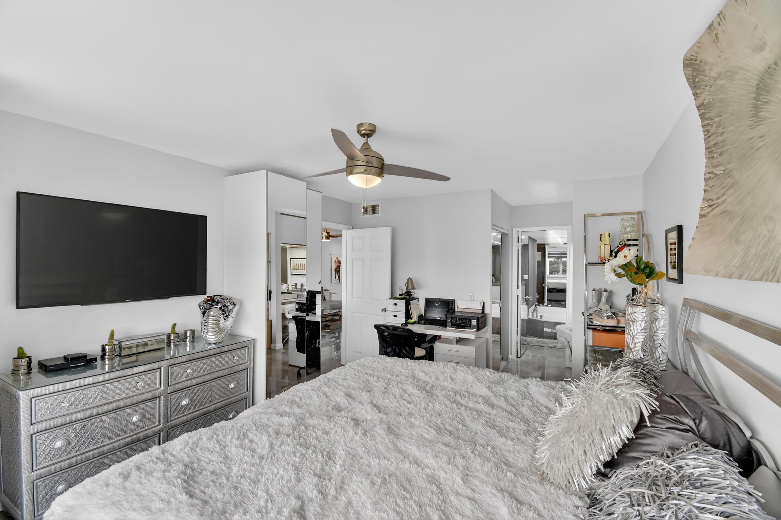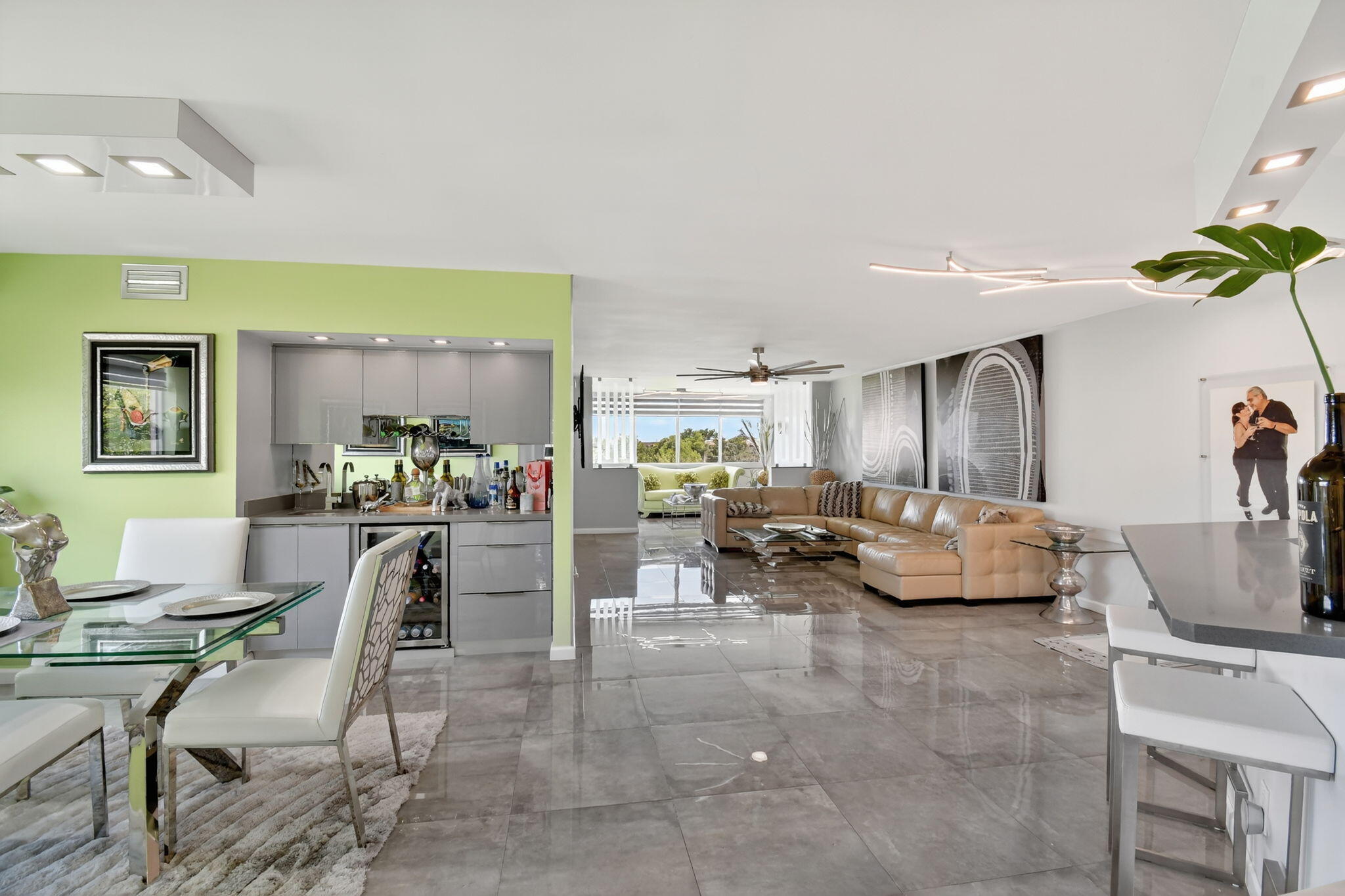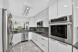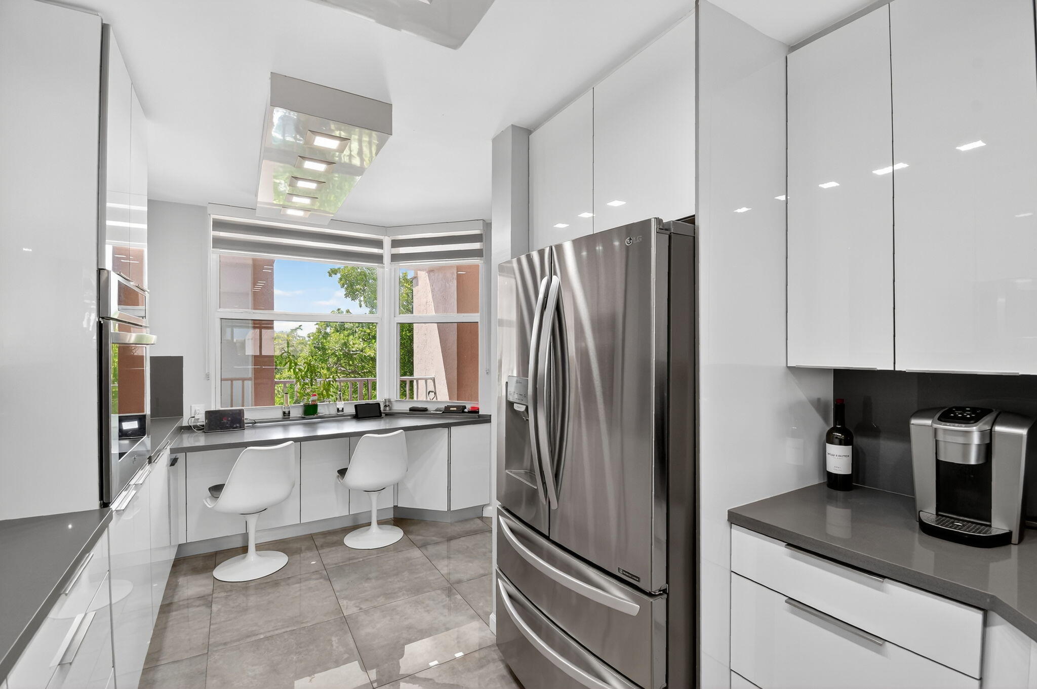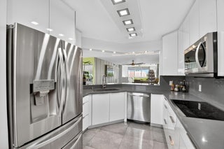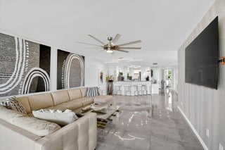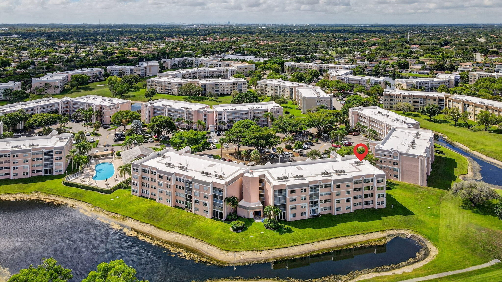 Largest corner penthouse in the Island of Sunrise Lakes--elegantly upgraded and redesigned for elevated 55+ living. The third bedroom has been converted into a formal dining area with built-in wet bar, easily restored if desired. Features include hurricane-impact windows with remote shades, porcelain tile floors, pull-out cabinetry, premium stainless appliances, and a separate laundry room with full-size Maytag washer and dryer. Enjoy lake views from every room, newer A/C, LED lighting, and updated electrical. Resort-style amenities include clubhouse, gym, pool, golf, theater, and more--no extra fees. See Doc Tab