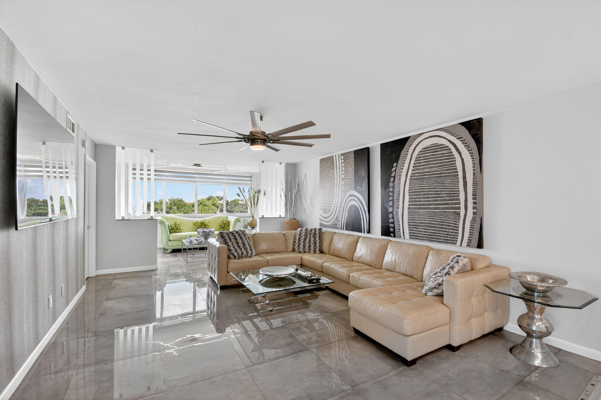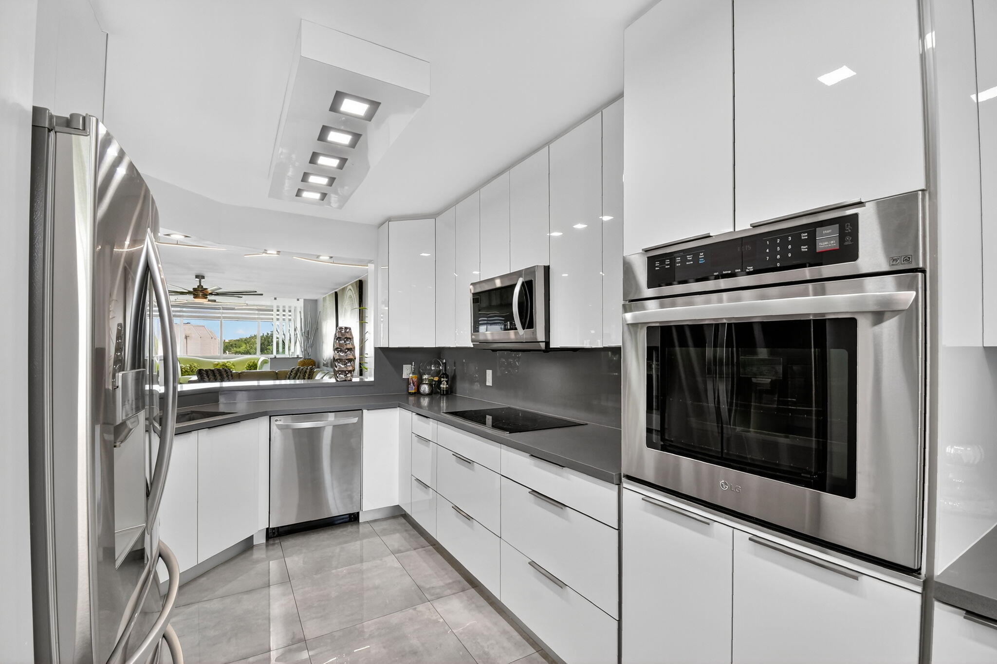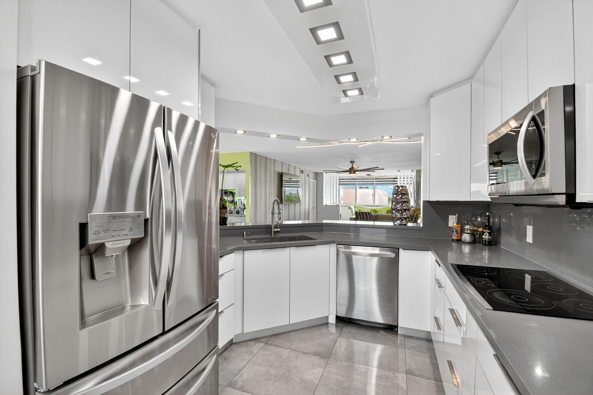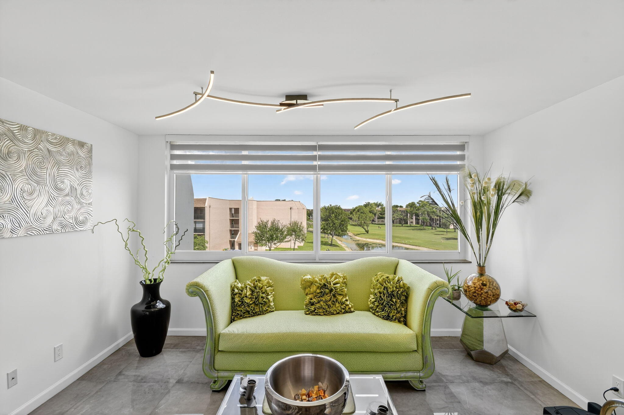 Largest corner penthouse in the Island of Sunrise Lakes--elegantly upgraded and redesigned for elevated 55+ living. The third bedroom has been converted into a formal dining area with built-in wet bar, easily restored if desired. Features include hurricane-impact windows with remote shades, porcelain tile floors, pull-out cabinetry, premium stainless appliances, and a separate laundry room with full-size Maytag washer and dryer. Enjoy lake views from every room, newer A/C, LED lighting, and updated electrical. Resort-style amenities include clubhouse, gym, pool, golf, theater, and more--no extra fees. See Doc Tab
