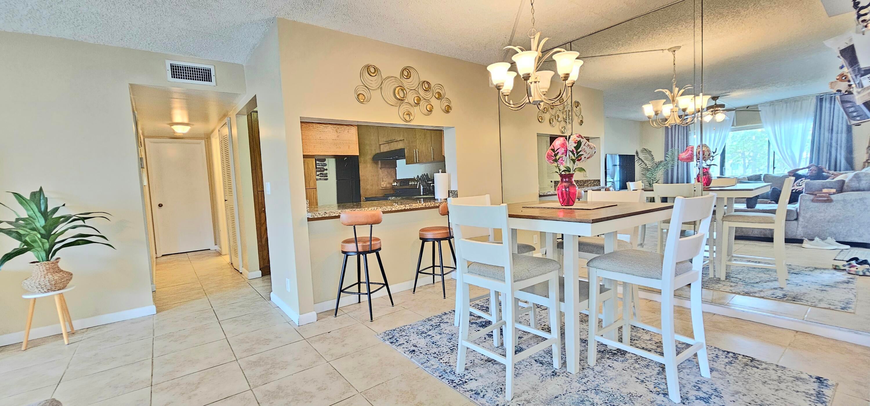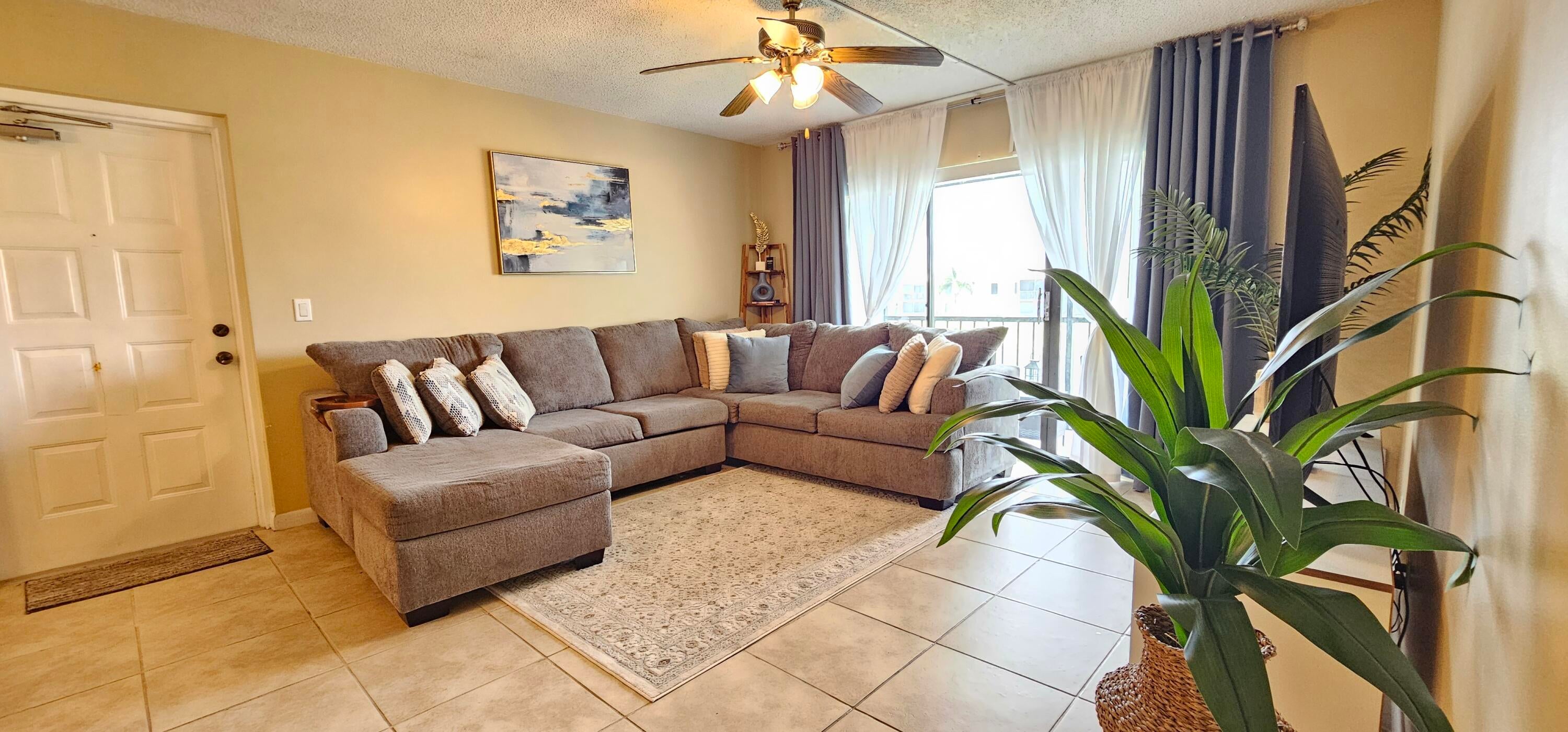 This move-in-ready home offers resort-style living. Your Condominium comes as a fully furnished 2-bedroom, 2-bathroom in beautiful West Palm Beach. This unit offers serene lake views from an oversized screened balcony, providing a relaxing setting overlooking both the water and fountain. Newer appliances include an air fry-convection oven, a Kitchen Pantry, Both Bathrooms have been remodeled, and there is ample storage throughout, including a walk-in closet in the primary bedroom and extra hallway storage. A full-size washer and dryer conveniently located inside the unit.Residents will appreciate additional building amenities such as a designated vehicle wash area, a large pool, and a Jacuzzi. The property is centrally located in West Palm Beach, close to I-95, the Turnpike, beaches