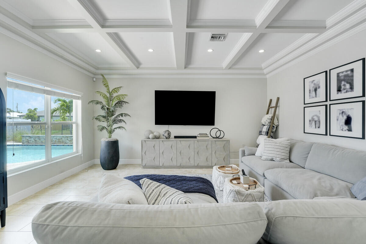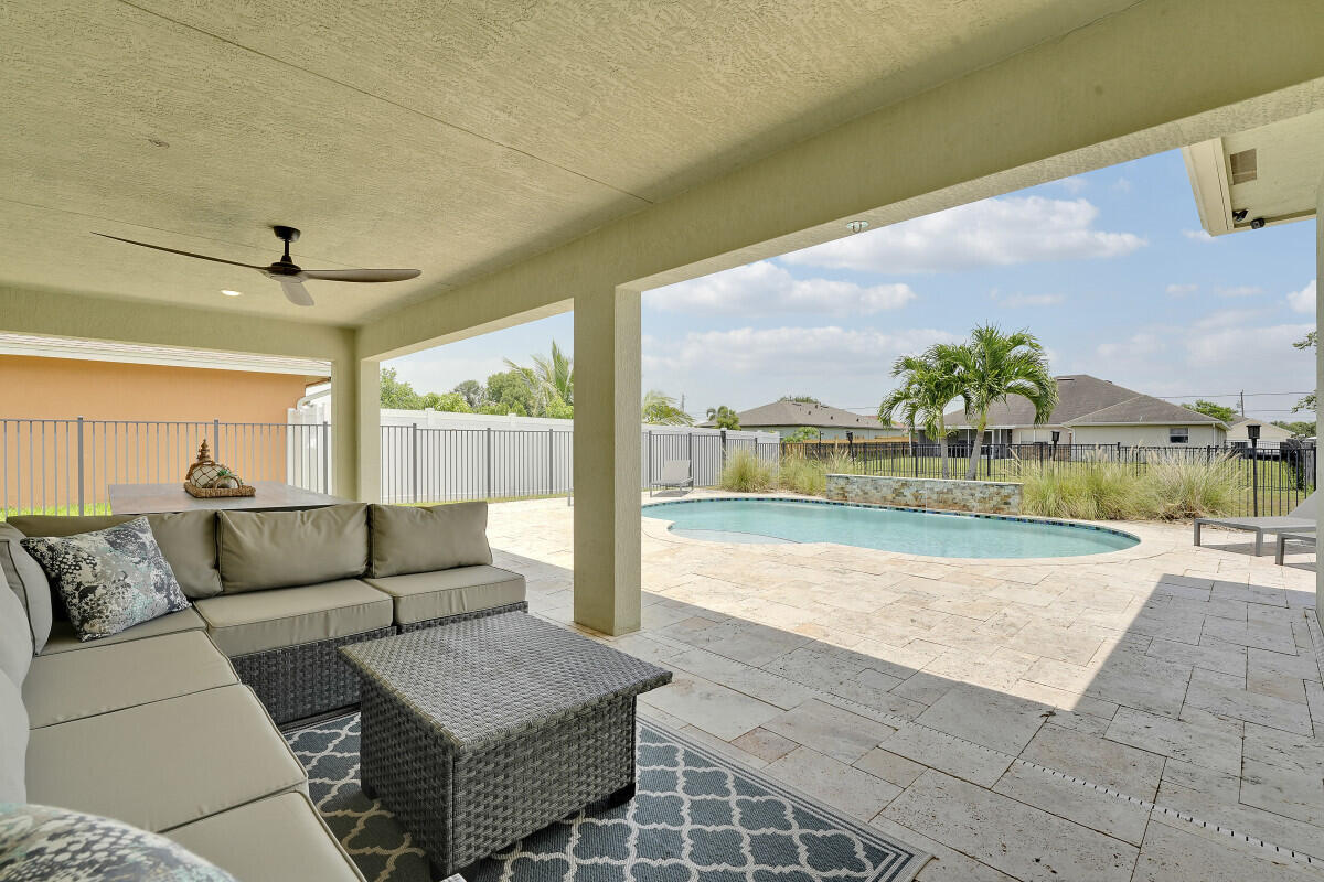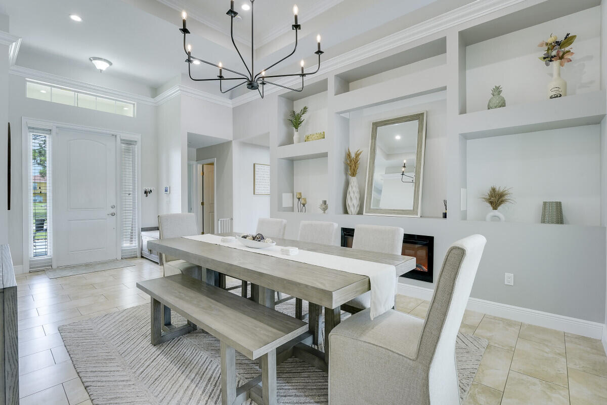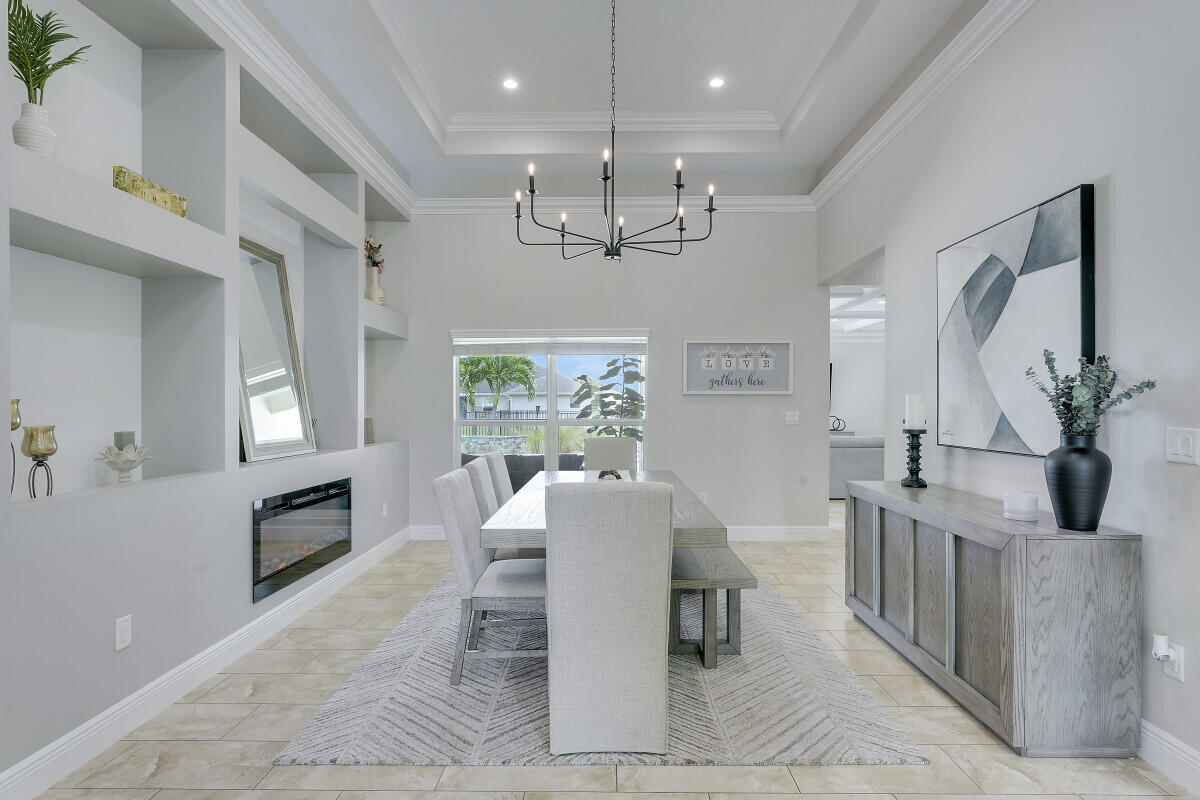 THIS LOVELY CBS 2017 BUILT POOL HOME OFFERS YOU THE SPACE, LOCATION AND UPGRADES YOU HAVE BEEN LOOKING FOR! SPLIT BEDROOM FLOOR PLAN PROVIDES PRIVACY AND COMFORT FOR YOUR FAMILIES LIFESTYLE. UPGRADED 10' LUXURIOUS TRAY CEILINGS ADD ELEGANCE TO THIS SHOW STOPPER! DESIGNER BUILT-IN WALL UNIT IN DINING ROOM FEATURES AN INFRARED FIREPLACE-HEATER COMBO AND OFFERS A SPACIOUS DINING AREA FOR YOUR ENTERTAINING NEEDS. LIGHT AND BRIGHT KITCHEN FEATURES 42'' CABINETS, QUARTZ COUNTERTOPS COMBINED WITH AN ELEGANT GLASS TILE BACKSPLASH AND SS APPLIANCES. SPACIOUS PRIMARY BEDROOM AND BATHROOM INCLUDES A FRENCH DOOR TO THE OVERSIZED OUTDOOR LANAI AREA. THE PRIMARY BATH FEATURES DOUBLE VANITY WITH QUARTZ COUNTERS, SEPARATE WALK-IN SHOWER AND AN OVERSIZED JETTED SOAKING TUB FOR THOSE WHO LOVE TO BATHE. TWO ADDITIONAL FULL BATHS ADD TO THIS LOVELY HOME. STEP OUTSIDE WHERE YOU WILL FIND AN EXPANSIVE TRAVERTINE POOL DECK WITH A LOVELY FREE-FORM POOL THAT FEATURES A WATERFALL AND GLASS TILE THAT REFLECTS THE BEAUTY OF THE SUN! THIS HOUSE ALSO HAS IMPACT RATED WINDOWS AND DOORS, LED LIGHTING, ADT SECURITY, PRE-PLUMBED AND FULLY EQUIPED WITH REVERSE OSMOSIS AND WHOLE HOUSE WATER FILTRATION SYSTEM. COMPLETE WITH A TWO CAR ATTACHED GARAGE, SHED FOR EXTRA STORAGE AND FULLY FENCED YARD. LOCATED IN THE FRIENDLY WOODLAND TRAILS SUBDIVISION AND WITHIN REACH OF BECKER ROAD AND I95. ALSO, WITHIN MINUTES FROM THE HEART OF TRADITION WHERE YOU WILL FIND MANY SHOPS AND RESTAURANTS FOR YOUR ENJOYMENT.