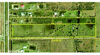 Two adjacent parcels, the larger one with 392+ft paved frontage on Carlton Rd. and 2,556+ft of depth. The 5.28ac parcel lies north of the primary one. The property has a gated entrance on Carlton Rd, is fenced & cross-fenced and has a small barn on it.Cattle on site; do not enter without Listing Broker.