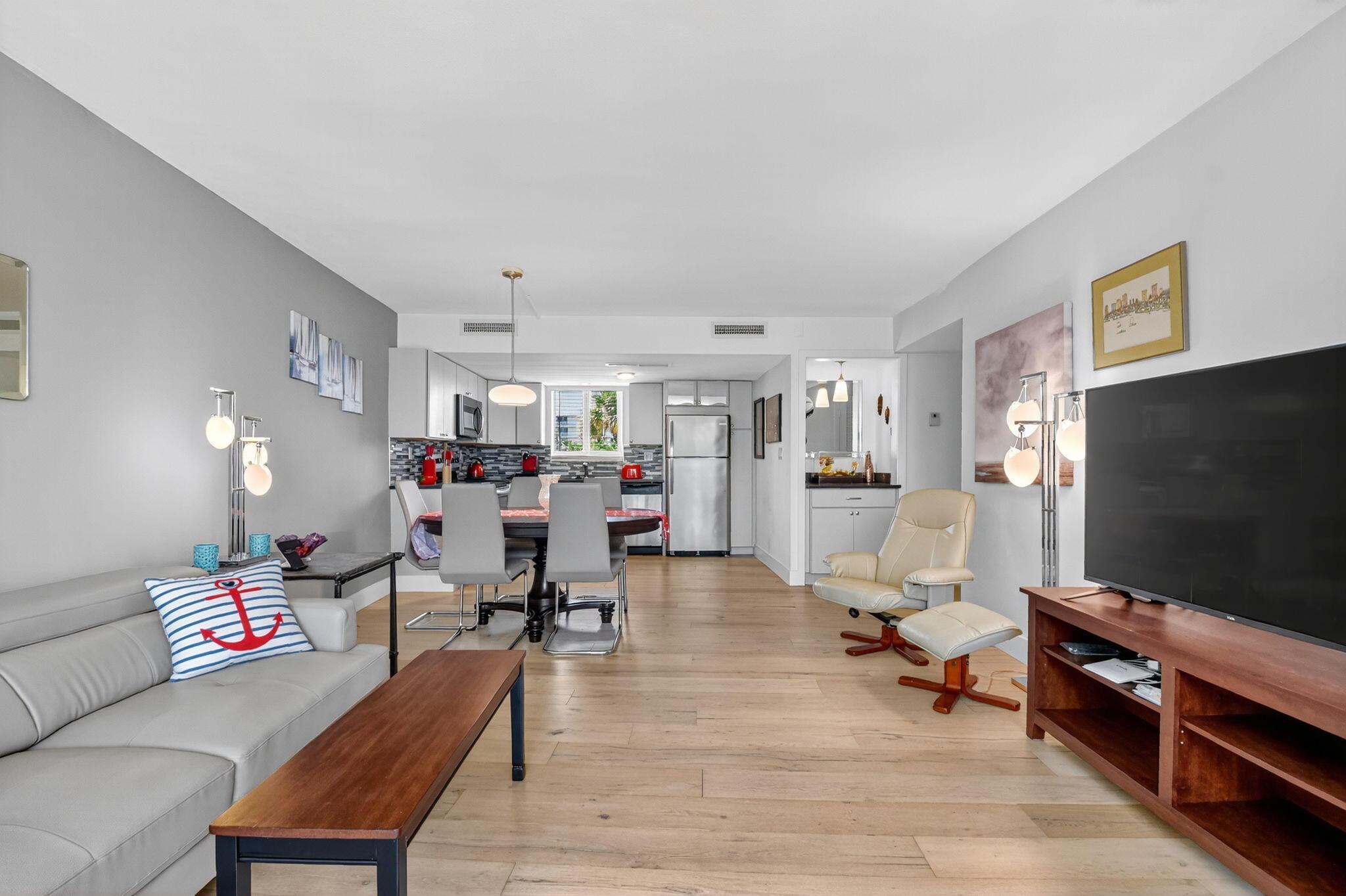 Exceptional opportunity to lease this beautifully renovated 2-bedroom, 2-bath apartment boasting stunning Intracoastal Waterway views. From the moment you step inside, you'll be charmed by the warm hardwood floors and the open-concept kitchen, featuring quartz countertops and stainless steel appliances. The guest bedroom offers generous closet space, while both bathrooms are elegantly updated with new vanities, tub and shower. The primary bedroom includes a large walk-in closet, and the expansive private balcony provides the perfect setting to enjoy breathtaking sunsets over the water.Located within The President of Palm Beach, a historic and architecturally distinctive landmark, this residence captures the relaxed elegance of beachside living in one of Palm Beach's most desirable locations. Just steps from the Atlantic Ocean, residents and tenants enjoy private deeded beach access across A1A adjacent to the Par 3 Golf Course, a serene resort-style pool area surrounded by lush landscaping, and access to a boat dock -- an rare combination of luxury, history and waterfront lifestyle.