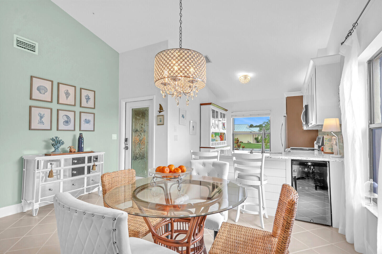 Must-see Pristine Corner-Unit Villa in charming Sugar Sands. This Immaculate 2-bedroom 2-bathroom villa offers tranquil living just a few miles from the beach. With an over-sized corner unit and additional private and quaint yard, this villa is uniquely special. It has been tastefully updated with a stunning kitchen, luxury vinyl flooring in both bedrooms, washer & dryer (all 2022) and new AC unit (2023). An active 55+ community in Hobe Sound offers numerous activities, community pool, clubhouse and boat/RV storage.
