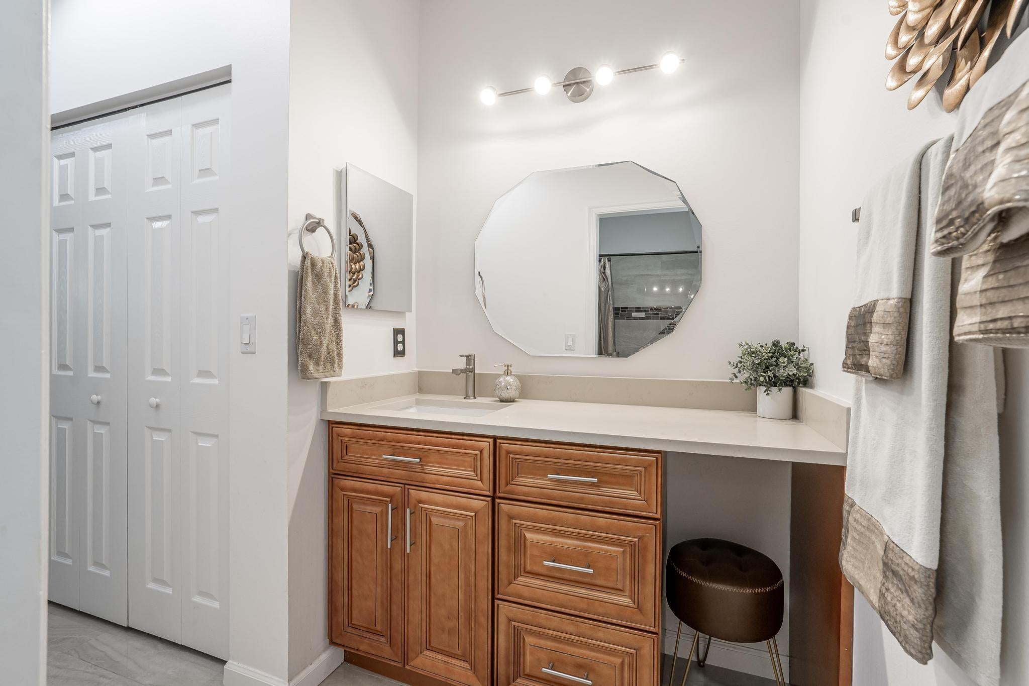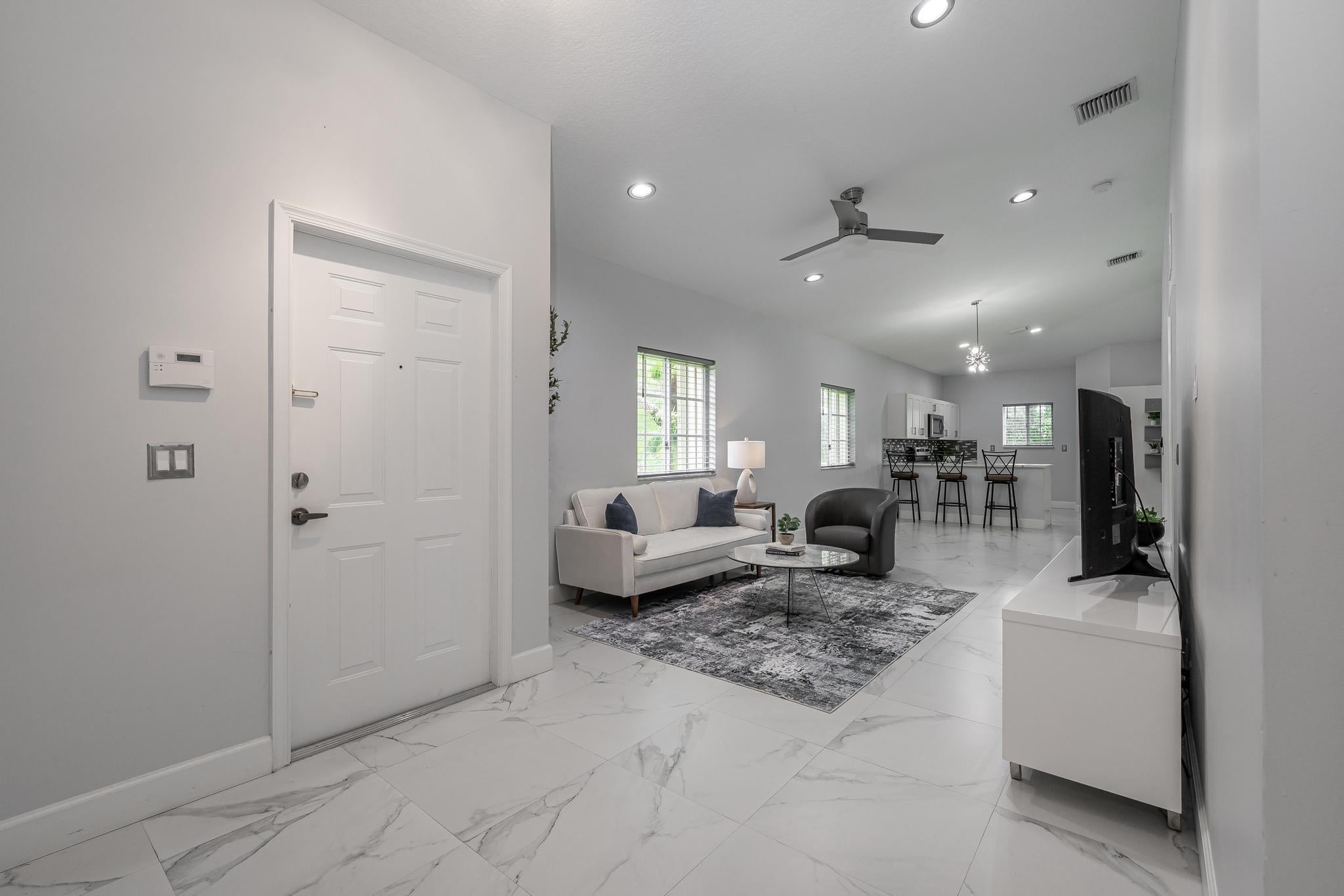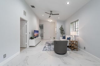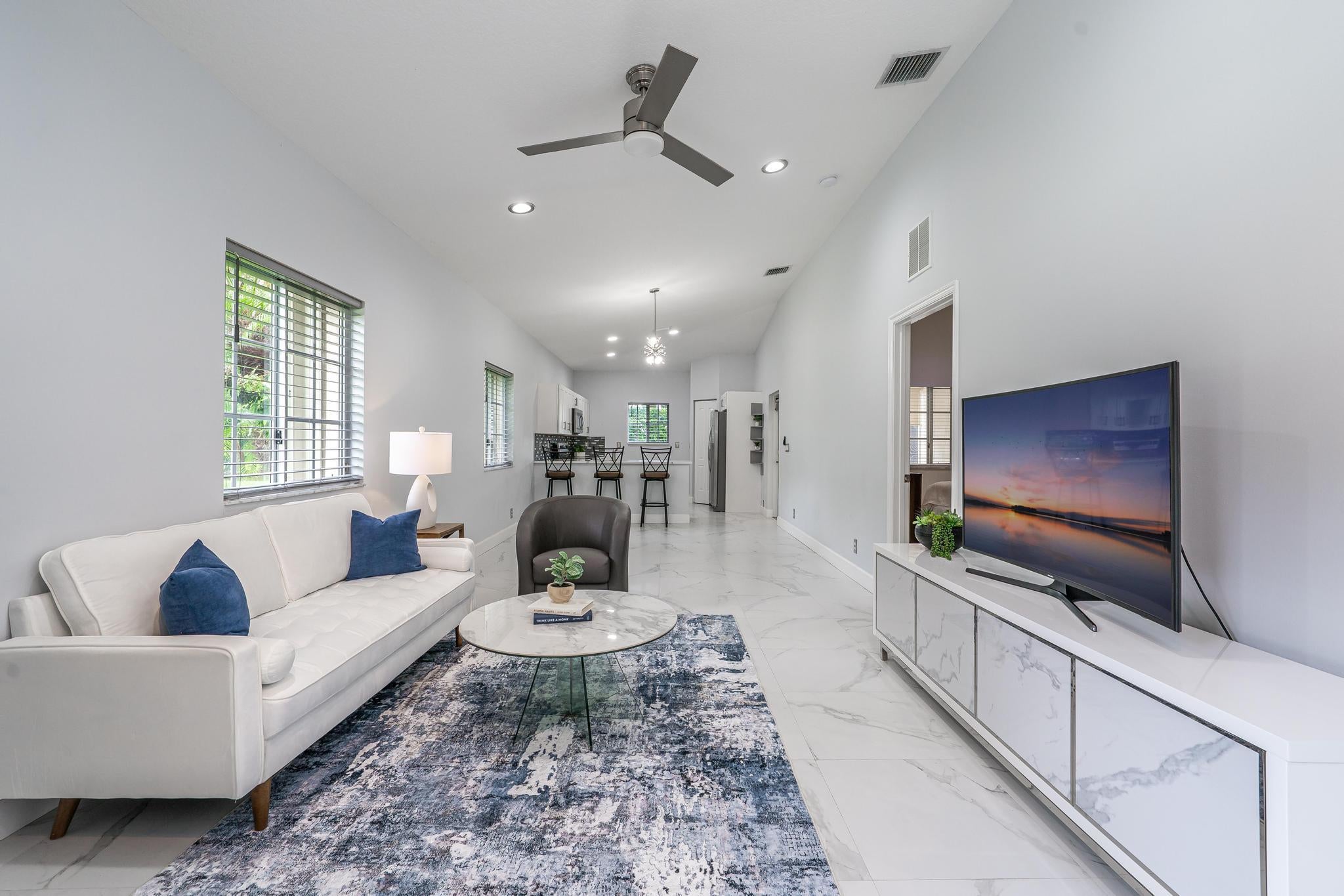 Rarely available, absolutely stunning corner unit in the pristine and luxurious 55+ community of Baywinds! Enjoy privacy and tranquility in your new home as your backyard oasis looks out over lush landscaping with no neighbors behind or to the side of you. Fully remodeled with upgrades including but not limited to, newer AC with UV light system, tile floors throughout, granite kitchen countertops and so much more. Community offers luxurious resort style living boasting multiple pools, spa, clubhouse, tennis, pickleball, game room, the list goes on. Centrally located near shops and dining and Palm Beach International Airport.