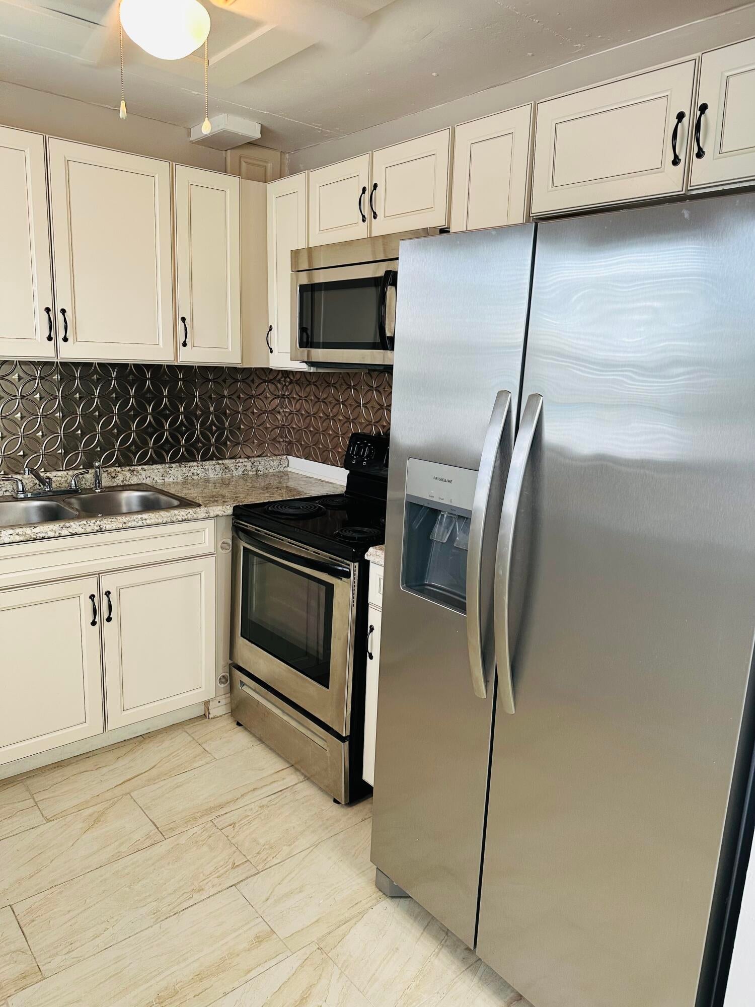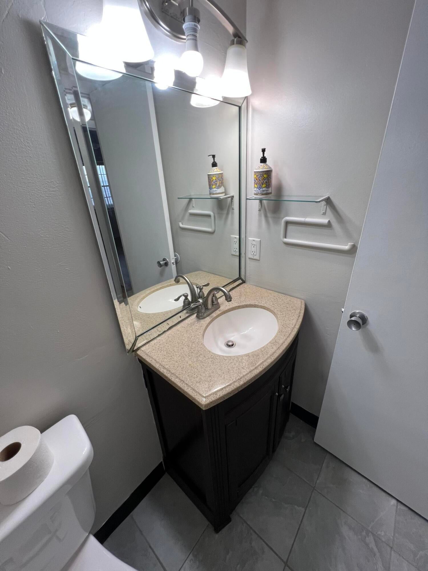 55+ Gated Community. Features a turn key updated condo situated on the first floor corner unit with stainless steel appliances, extremely bright and airy unit, freshly painted, lots of storage, walk in closet, screened in porch with central air. Immaculate. Century Village has many amenities to offer. Club house with 1200 seat theater for shows and movies, indoor and outdoor heated pools. Tennis, pickleball, shuffleboard and bocce courts. Health and fitness center, courtesy bus, beauty shop , boating and more. Close proximity to City Place, downtown and PBI airport and beaches. Manned gates and 24 hour security patrol.
