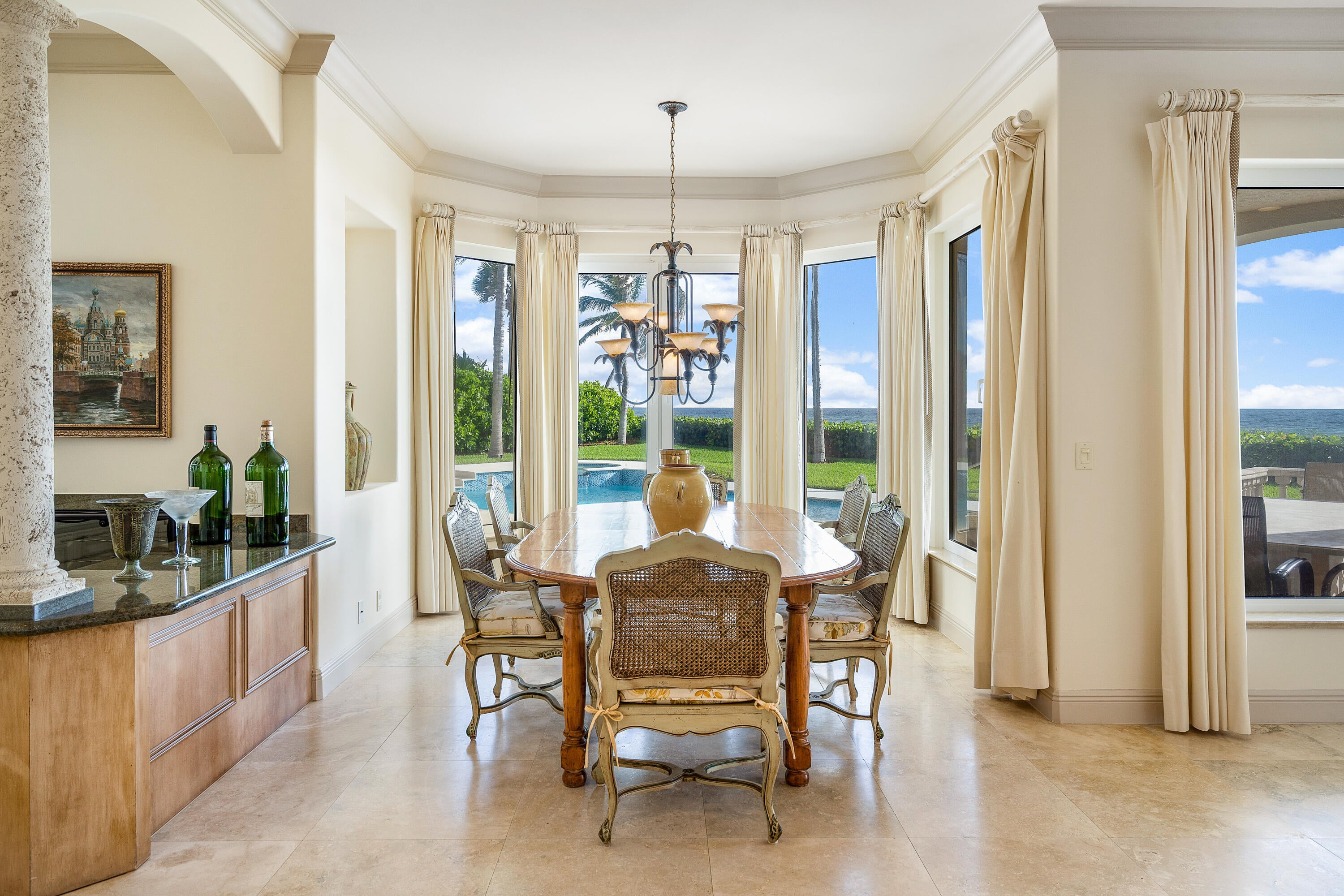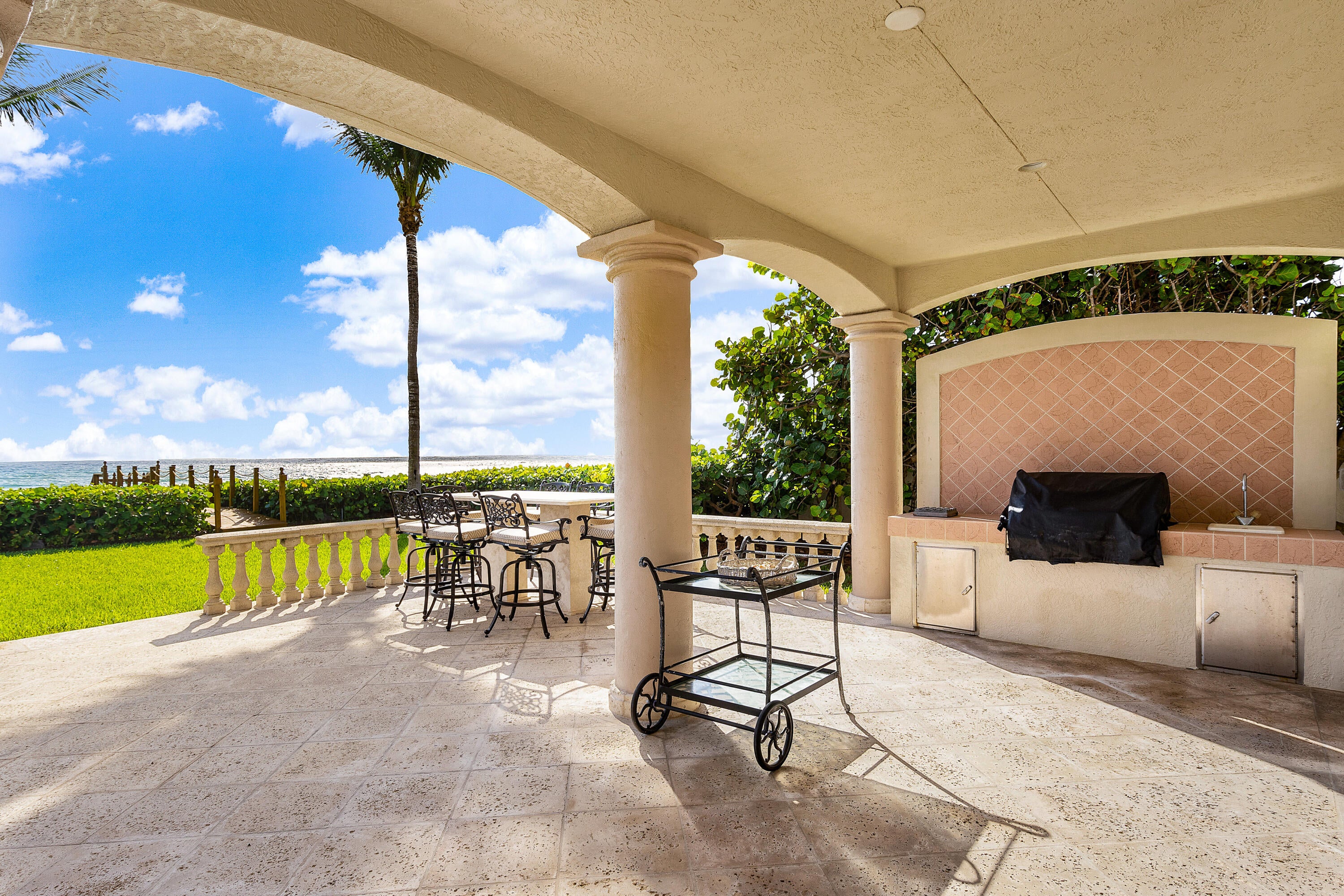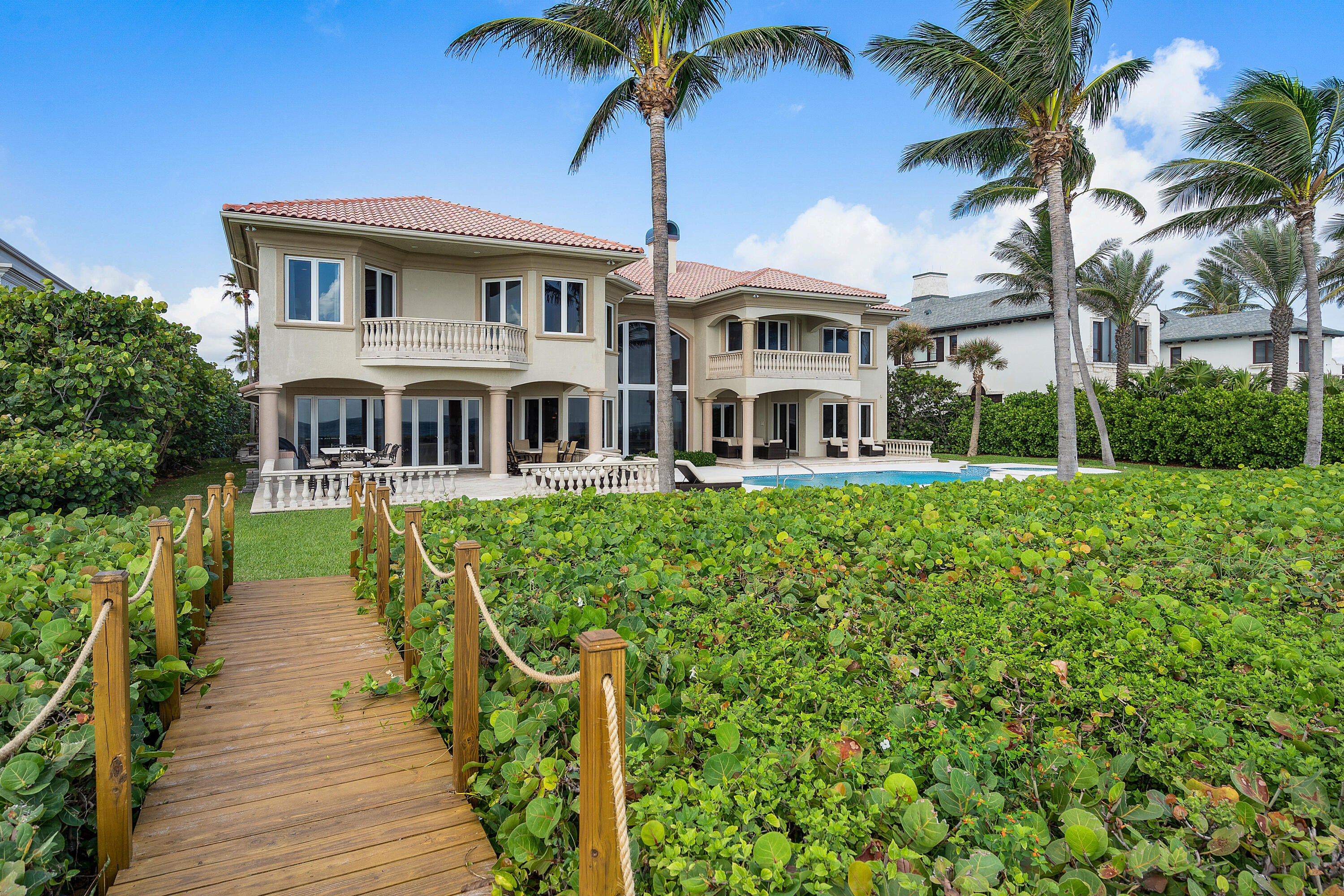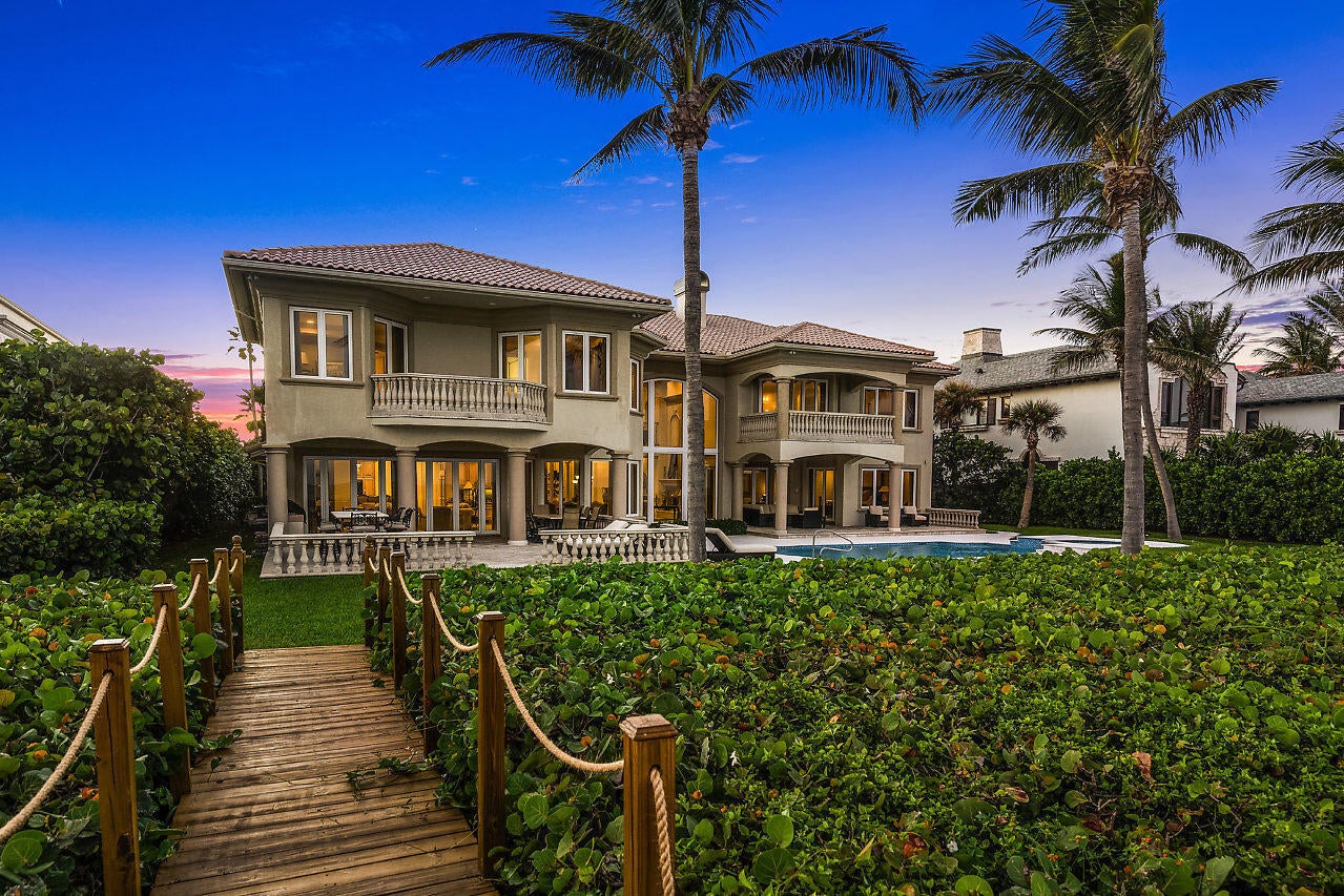 Direct Oceanfront Elegance in Ocean Ridge, FL...Nestled within the coveted enclave of Ocean Ridge, this spectacular oceanfront estate offers an unparalleled blend of privacy, sophistication, and coastal splendor. Commanding nearly 120 feet of direct Atlantic Ocean frontage, the residence is a sanctuary of refined living where the rhythms of the sea meet timeless architecture.Beyond the gated entry, lush tropical landscaping ushers you into a world of elegance--featuring soaring ceilings, expansive glass ocean views, and curated finishes throughout. The open-concept design flows effortlessly from the grand entertaining spaces to multiple outdoor terraces, all framing breathtaking sunrise views and sea breezes.Perfectly positioned between Delray Beach & Palm Beach.