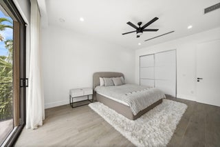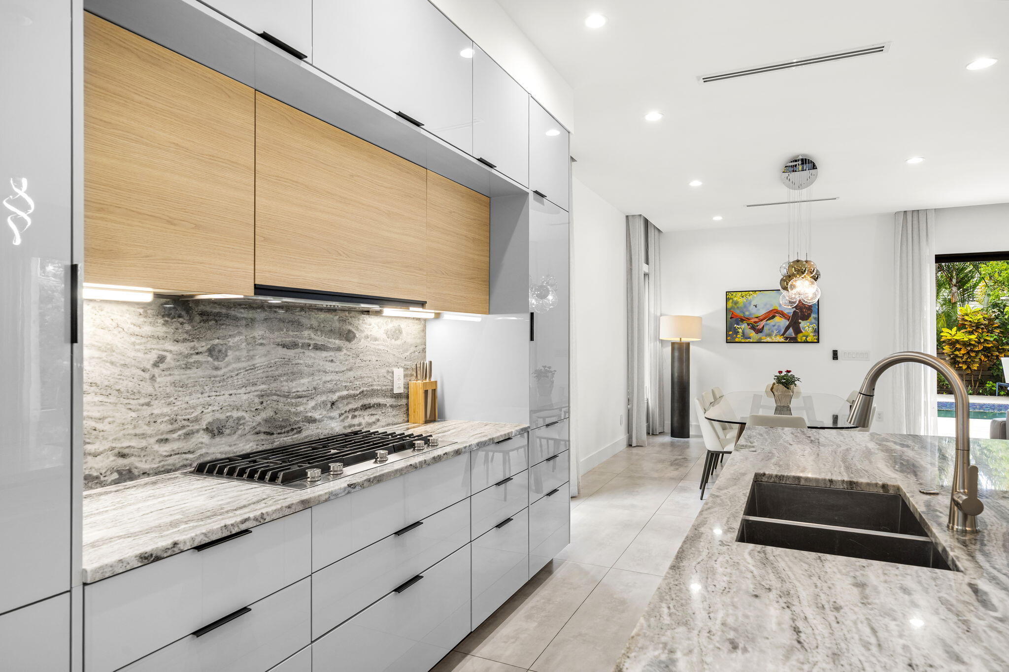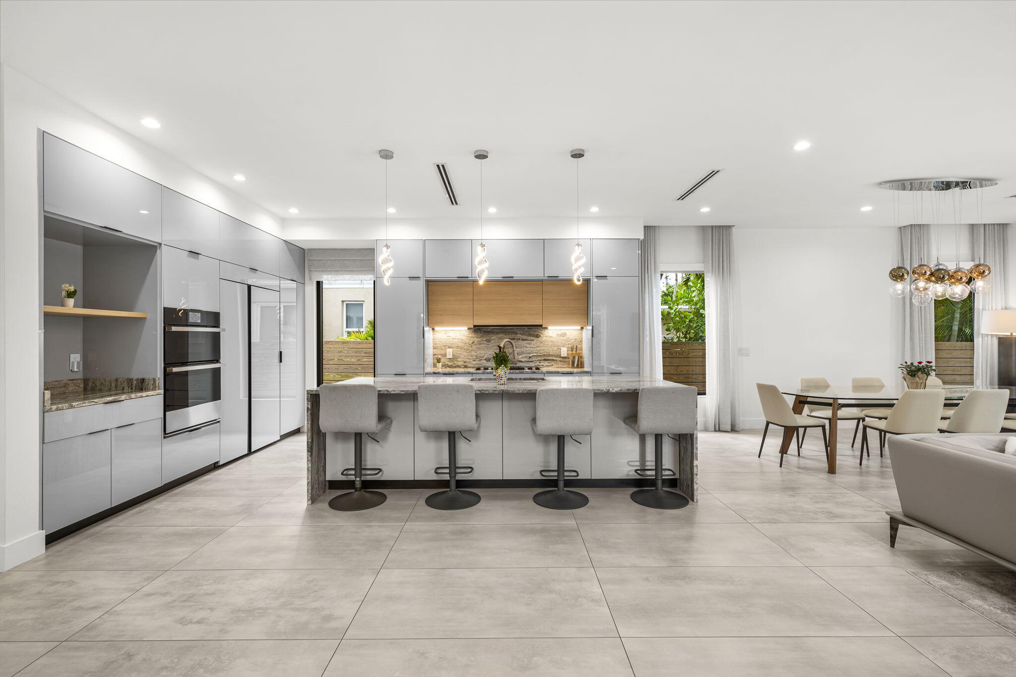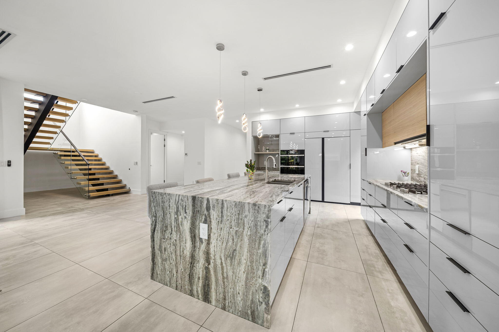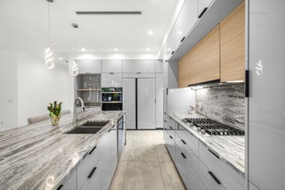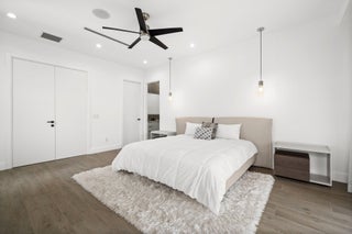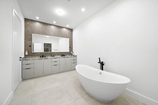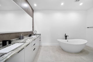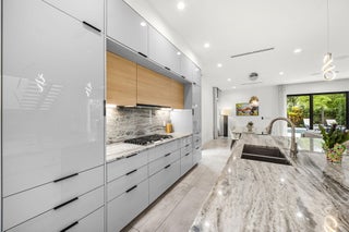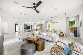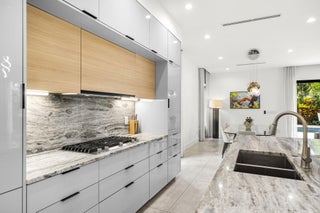 Located in the heart of Victoria Park, this like-new 2023-built luxury pool home offers 4 bedrooms, 5 bathrooms, and 2,871 sq ft of refined living space. The modern two-story design features warm wood accents, neutral and wood-look tile flooring, and all-impact glass windows and doors. A sleek custom kitchen shines with quartz countertops showcasing dramatic movement, gloss cabinetry, gas cooktop, and a full suite of top-tier built-in appliances. Smart home upgrades include security cameras, an alarm system, automatic blinds, and a whole-house water filtration system. The spacious primary suite boasts a private balcony, dual vanities, a soaking tub, and a large walk-in shower with body sprayers and a linear drain. Enjoy a versatile loft TV area and a covered patio with tongue-and-grooveaccents and a full outdoor kitchen. Lush landscaping surrounds the private pool, creating a serene retreat. A two-car garage and exterior paver stones complete the package.