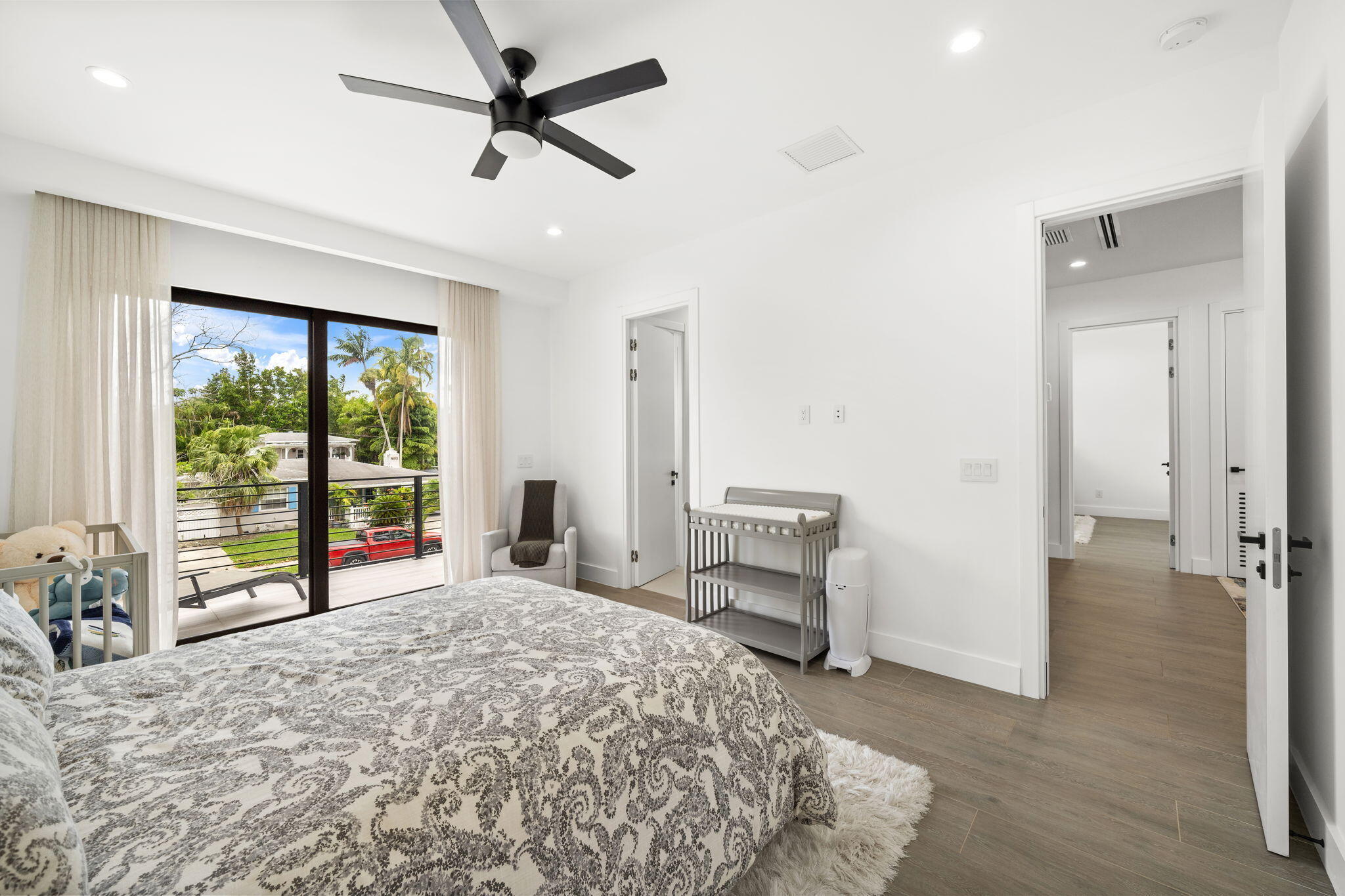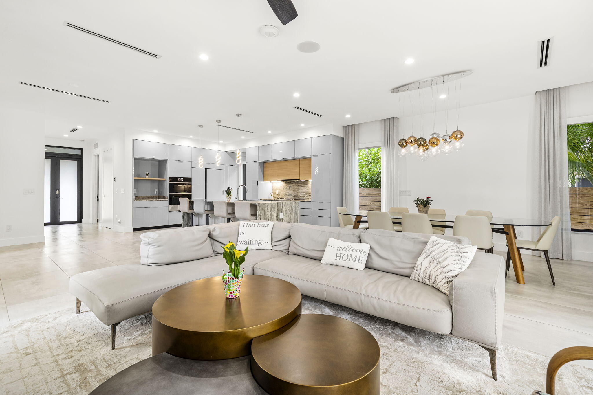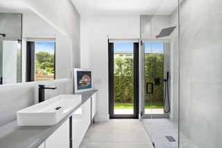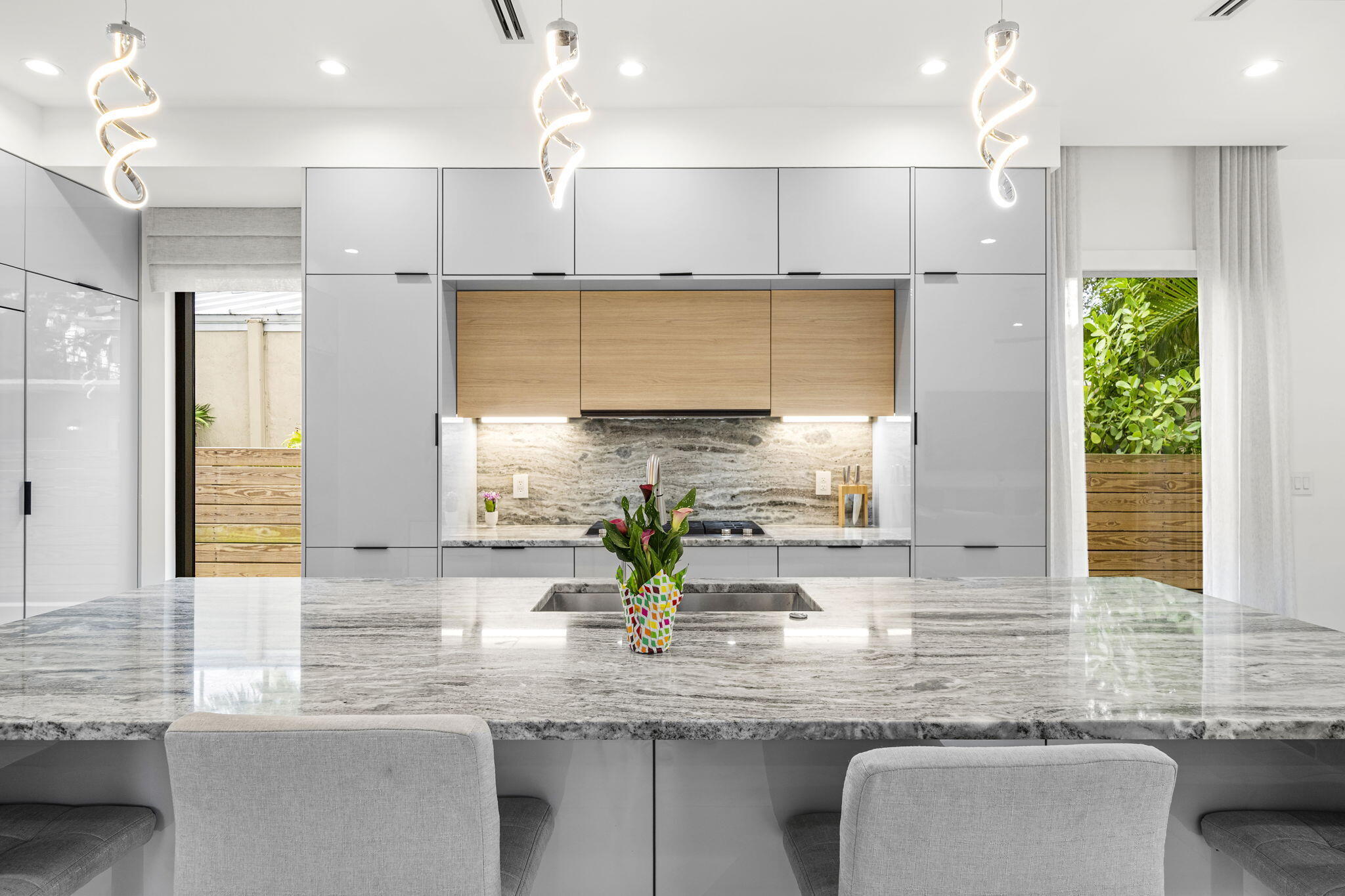 Located in the heart of Victoria Park, this like-new 2023-built luxury pool home offers 4 bedrooms, 5 bathrooms, and 2,871 sq ft of refined living space. The modern two-story design features warm wood accents, neutral and wood-look tile flooring, and all-impact glass windows and doors. A sleek custom kitchen shines with quartz countertops showcasing dramatic movement, gloss cabinetry, gas cooktop, and a full suite of top-tier built-in appliances. Smart home upgrades include security cameras, an alarm system, automatic blinds, and a whole-house water filtration system. The spacious primary suite boasts a private balcony, dual vanities, a soaking tub, and a large walk-in shower with body sprayers and a linear drain. Enjoy a versatile loft TV area and a covered patio with tongue-and-grooveaccents and a full outdoor kitchen. Lush landscaping surrounds the private pool, creating a serene retreat. A two-car garage and exterior paver stones complete the package.