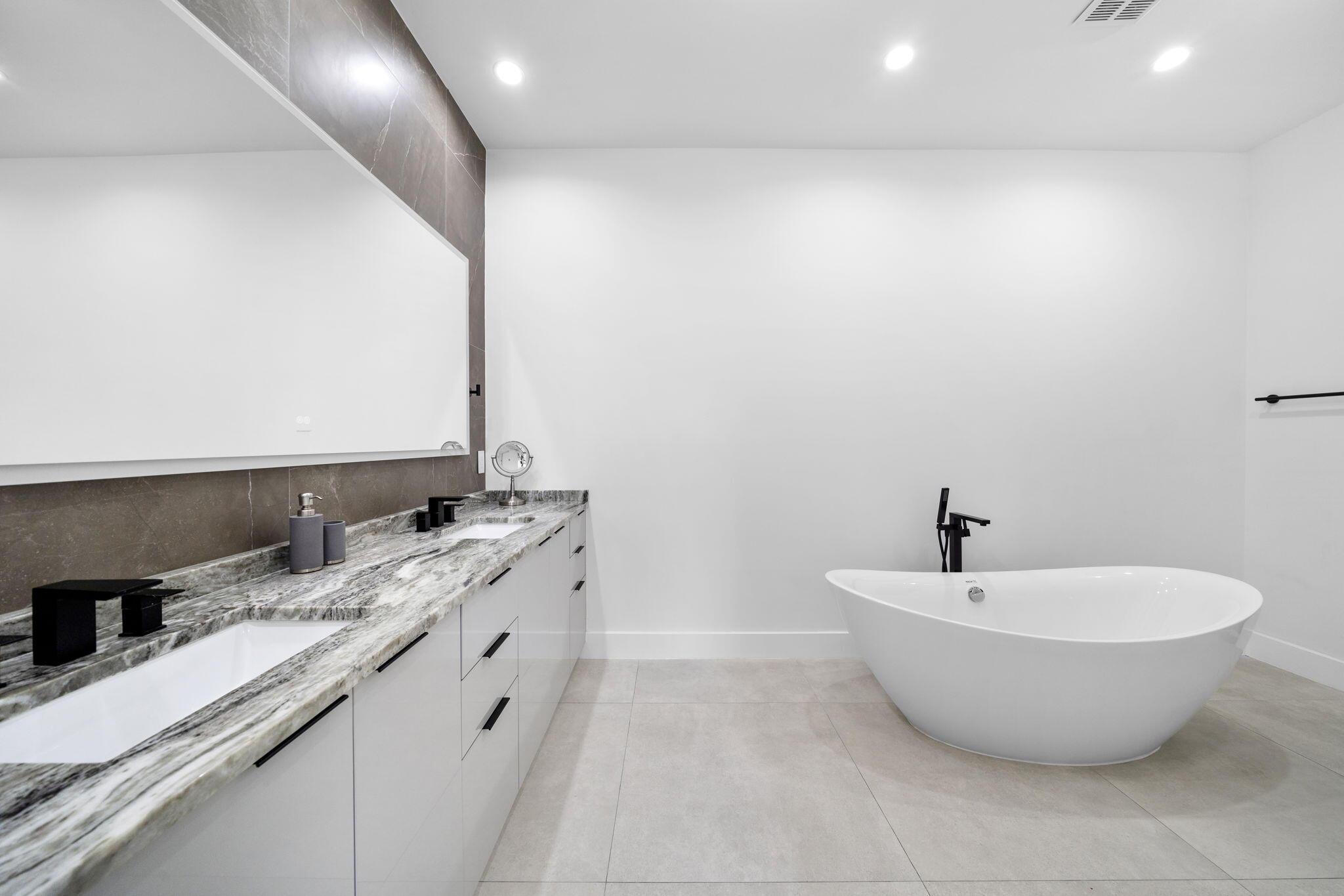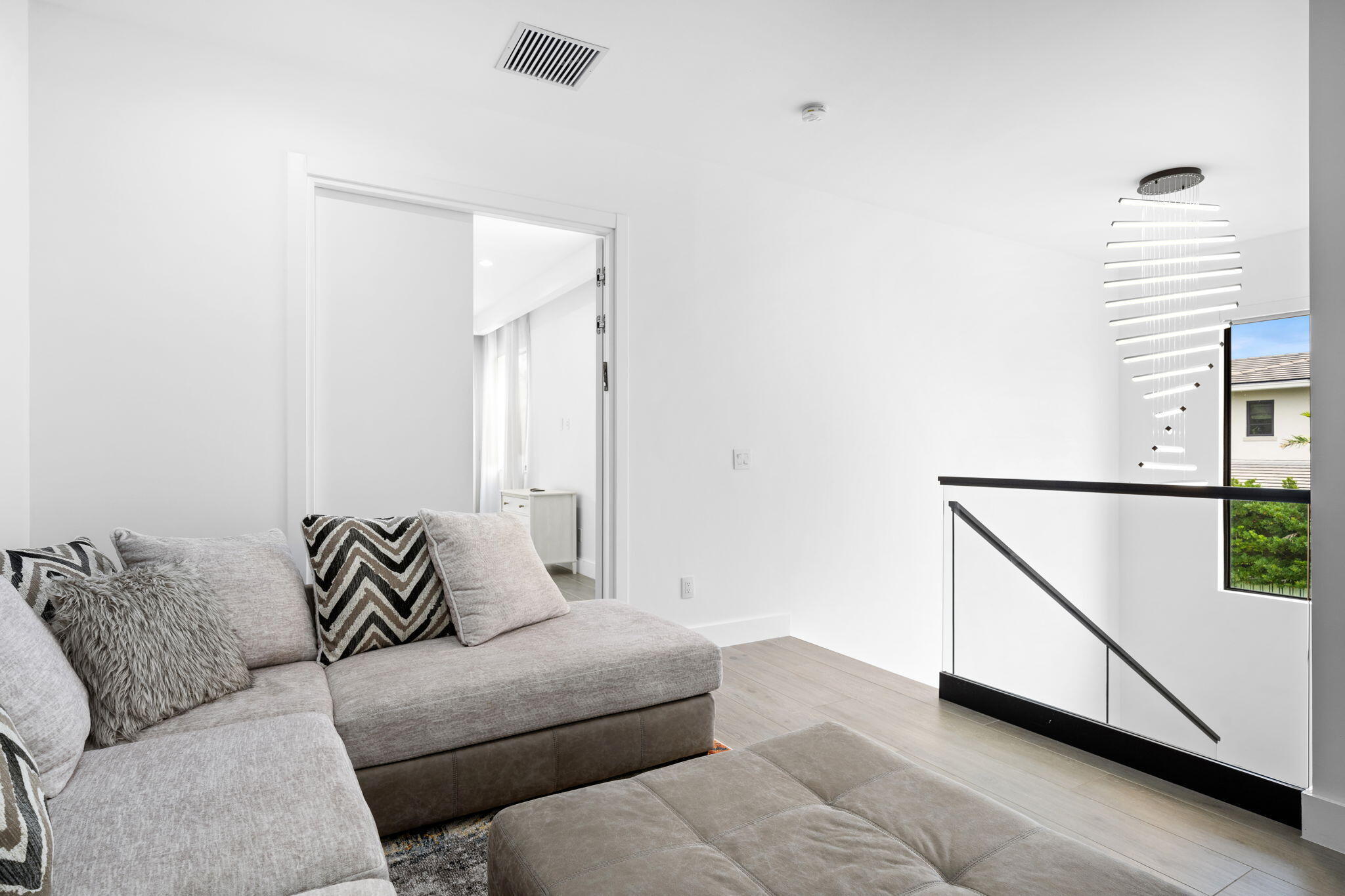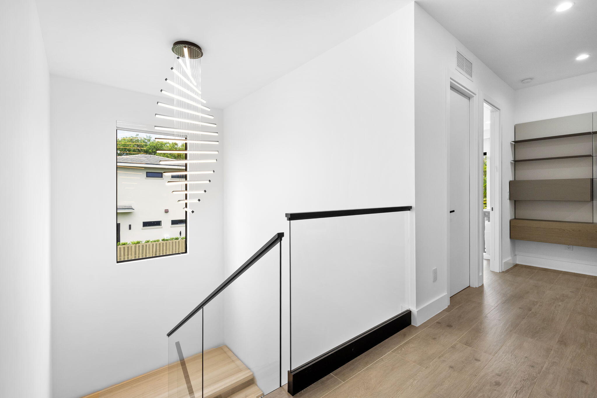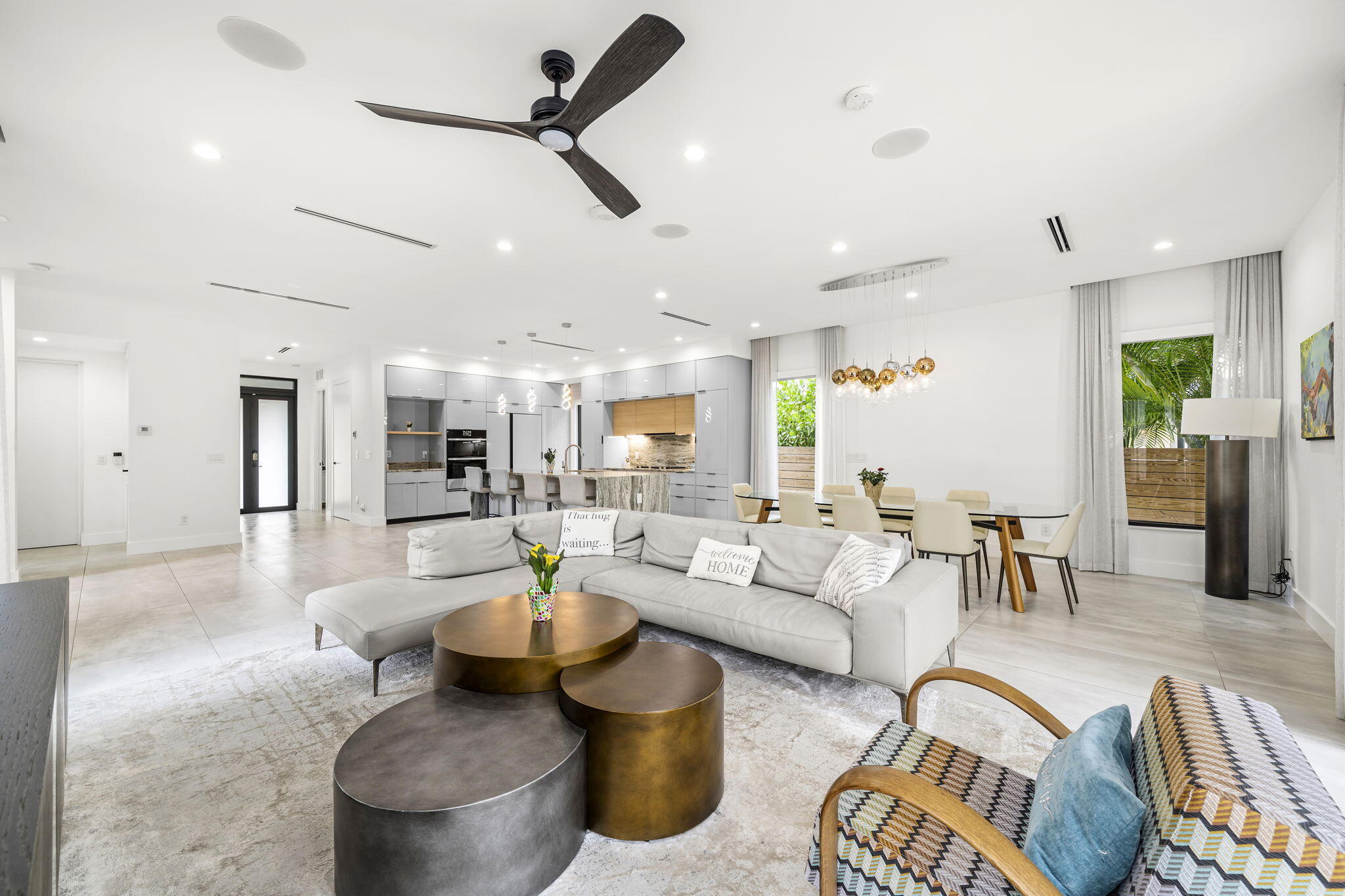 Located in the heart of Victoria Park, this like-new 2023-built luxury pool home offers 4 bedrooms, 5 bathrooms, and 2,871 sq ft of refined living space. The modern two-story design features warm wood accents, neutral and wood-look tile flooring, and all-impact glass windows and doors. A sleek custom kitchen shines with quartz countertops showcasing dramatic movement, gloss cabinetry, gas cooktop, and a full suite of top-tier built-in appliances. Smart home upgrades include security cameras, an alarm system, automatic blinds, and a whole-house water filtration system. The spacious primary suite boasts a private balcony, dual vanities, a soaking tub, and a large walk-in shower with body sprayers and a linear drain. Enjoy a versatile loft TV area and a covered patio with tongue-and-grooveaccents and a full outdoor kitchen. Lush landscaping surrounds the private pool, creating a serene retreat. A two-car garage and exterior paver stones complete the package.
