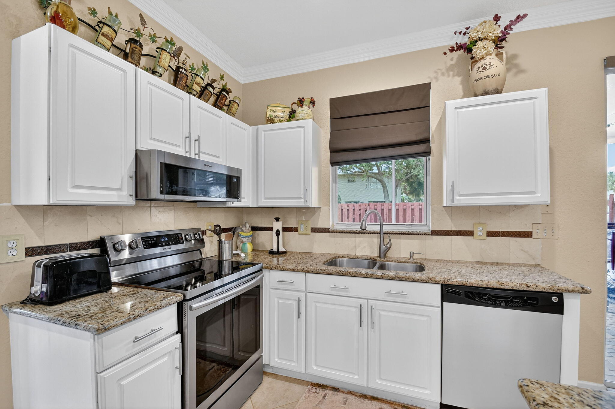 Welcome Home to this stunning 3 bed, 2.5 bath 2 CG home offering a perfect blend of style, comfort & peace of mind with its extensive list of recent upgrades. Nestled in a desirable neighborhood within walking distance to the highly rated Park Vista High School, this home is move-in ready & truly has it all. This home offers a bright & open layout that immediately feels like home. The beautifully renovated kitchen offers stainless steel appliances, granite countertops, & a full tile back splash. Tile thru-out 1st floor. Upstairs, you'll find all 3 generously sized bedrooms featuring warm & durable laminate flooring. The primary suite includes a spa-like en suite bathroom with modern finishes & ample closet space. Outdoor living is just as inviting as the interior.A fabulous roofed and screened patio offers a private oasis perfect for relaxing, entertaining, or enjoying the Florida lifestyle year-round. The fully fenced yard is ideal for pets, play, or gardening and the accordion shutters throughout the home offer full hurricane protection and added security. The two-car garage, provides plenty of space for parking, storage, or a workshop setup. Located just a short walk from Park Vista, and within close proximity to shopping, dining, and major highways, this home combines modern convenience with an unbeatable location. Don't miss this exceptional opportunity to own a beautifully maintained and upgraded home in one of the area's most desirable communities. Schedule your private tour today this one won't last! Major mechanical systems have been recently serviced or replaced, including: A/C blower motor and condenser coils (2024) Evaporator coils (2025) Washer (2024) Hot water heater (2024) Roof (2022) Freshly painted exterior (2023)