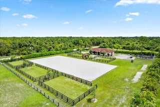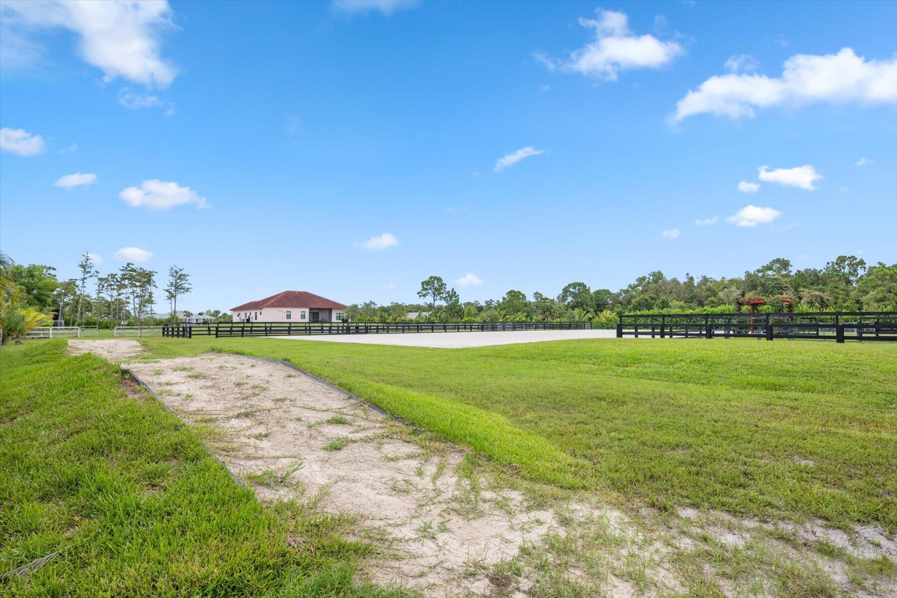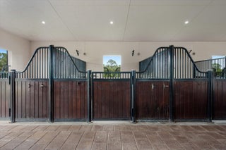 Private world class equestrian facility for annual or seasonal rental! This stunning 8 stall hurricane safe CBS barn built in 2020 with high end finishes includes two wash or grooming stalls, tack room, feed room with roll down door, half bath, and riders lounge complete with refrigerator and a washer and dryer. The property features seven paddocks, MK horse walker, hills for training, an irrigated 100 X 200 riding arena, and an RV hookup. Horse area is fully fenced with its own separate entrance and circular driveway which makes it easy to navigate for large rigs or feed trucks. Located in the gated community of Deer Run, hacking distance to White Fences, surrounded by miles of riding trails, and within minutes of all Wellington horse show venues.