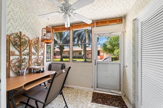 Updated, well maintained 2 bedroom, 2 bathrooms, furnished Townhouse Villa, with Hurricane Impact windows and accordion type shutters. The condo has classic crown moldings, tile and laminated wood floors, no carpets, glass-top stove, new refrigerator and new dish washer, located across the street from the clubhouse in a 55+community. New inside electric panel, new roofs, with assigned parking directly in front of the unit. The Master bedroom features ensuite bathroom with walk in shower, tub and shower in guest bathroom, large closets and storage throughout the condo. Low monthly maintenance, which includes internet, cable, water, garbage, onsite laundry facilities with assigned laundry time. The condo has an adjacent tiled patio with umbrella, BBQ, table and chairs.The Community offers many amenities, on site Property Manager and staff, a heated salt water pool with a fenced relaxing area, pétanque, bocce and several shuffle board courts and a large maintenance building. The Clubhouse houses the Property Manager and staff with an exercise room, games room, billiard room, cardroom, work shop, kitchen, restrooms, showers with a steam room and a large auditorium. The property is within a short drive of the Palm Beach airport, the Tri-Rail train station, parks, Polo Grounds, shopping, entertainment many sandy beaches.