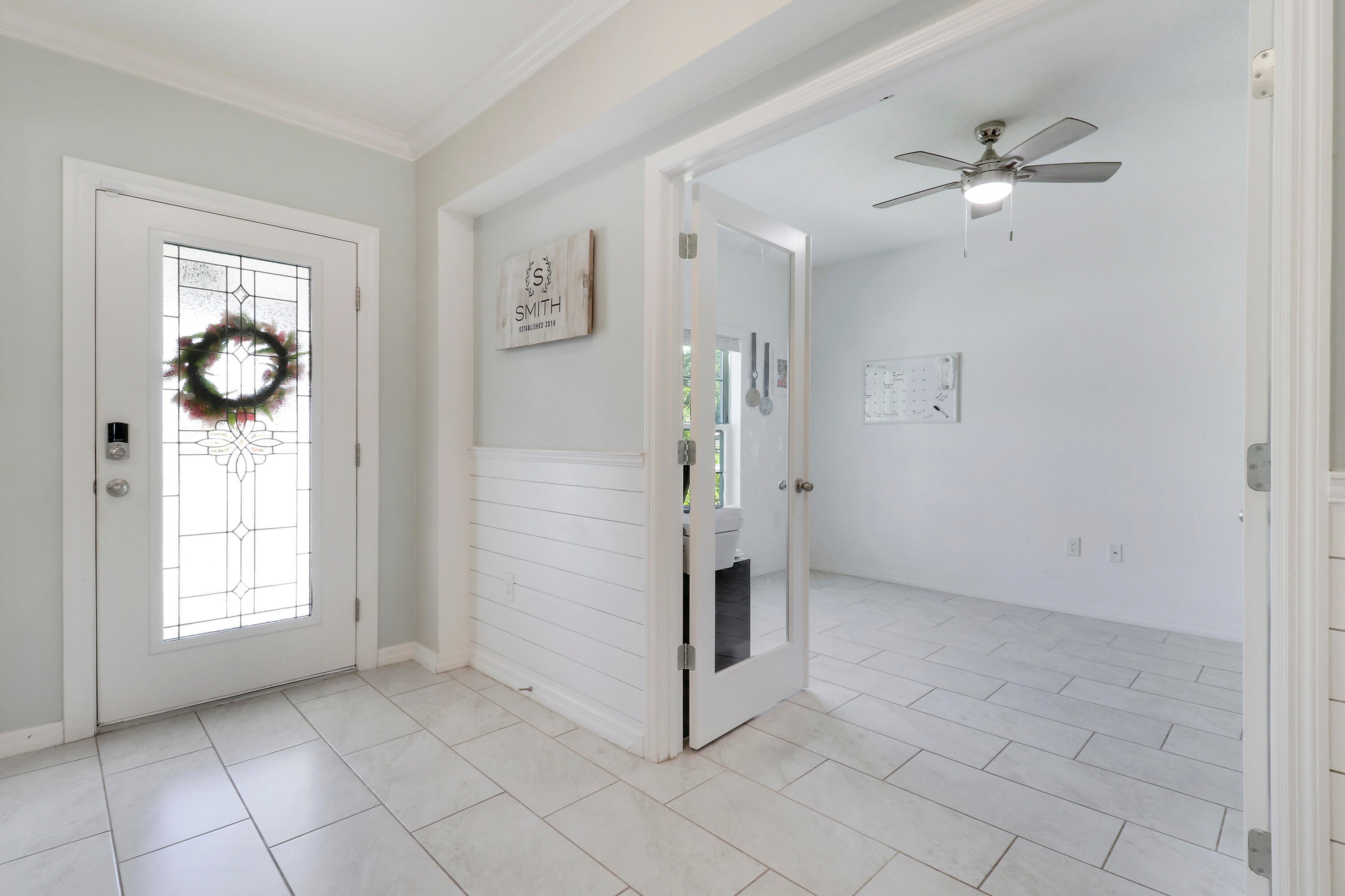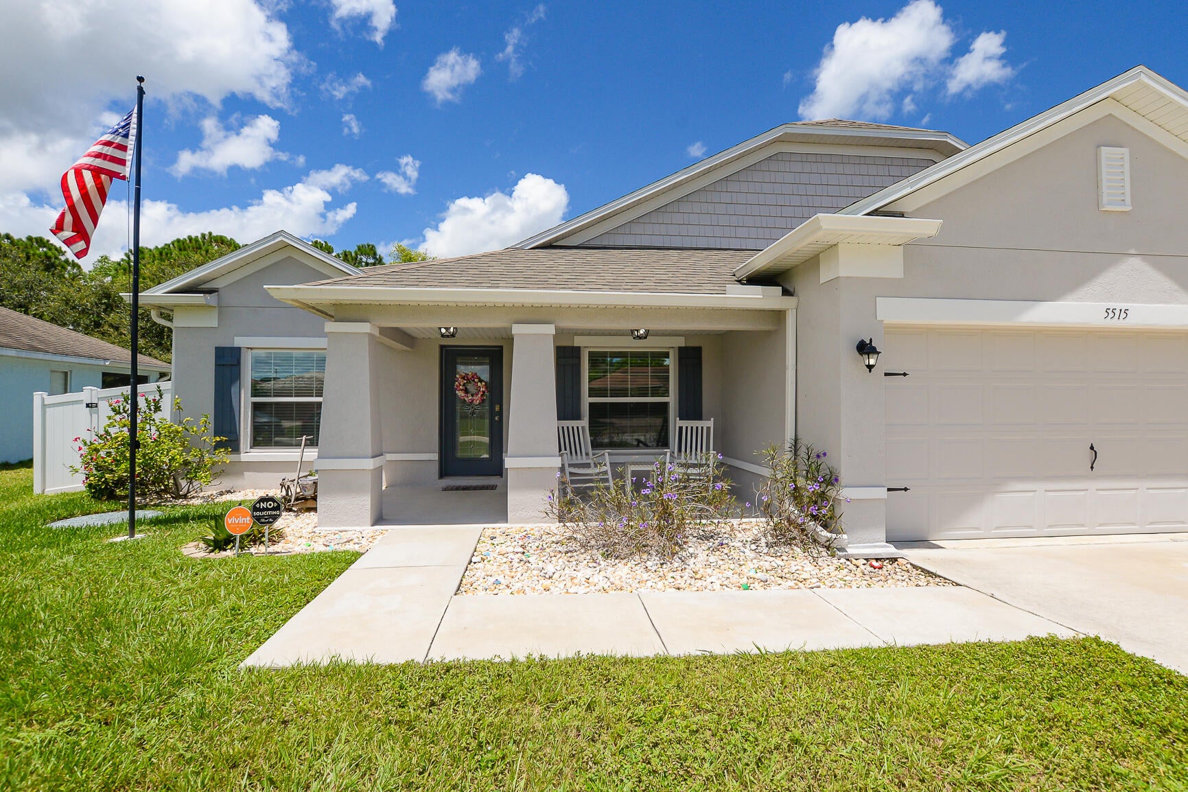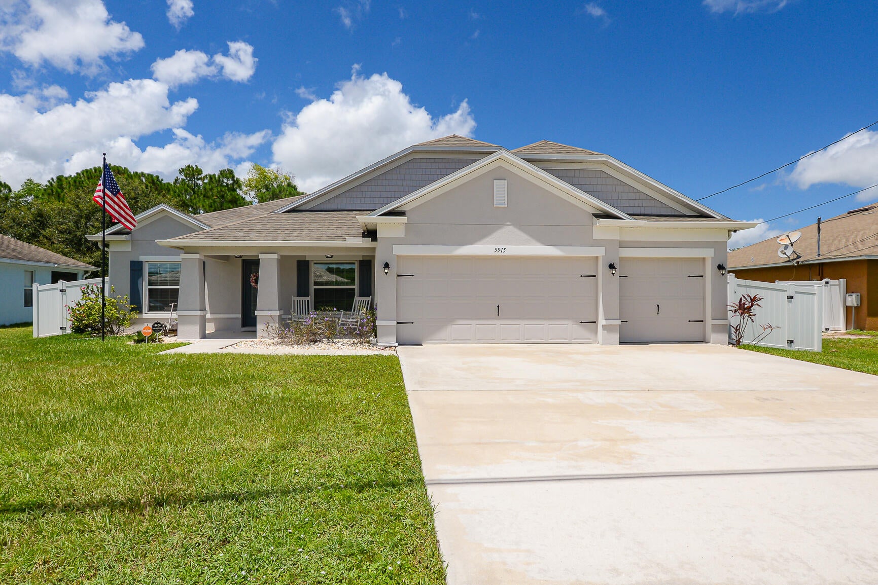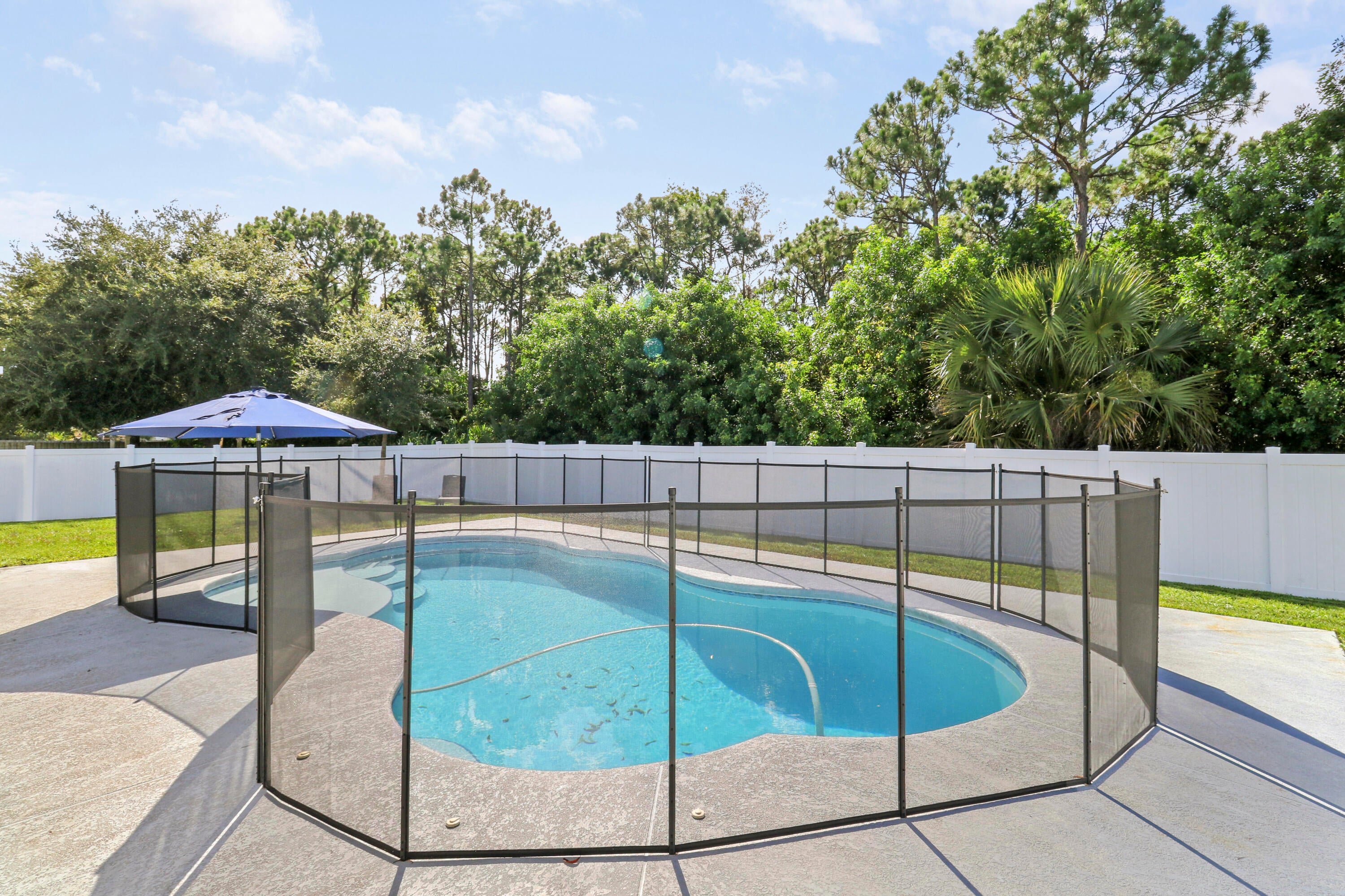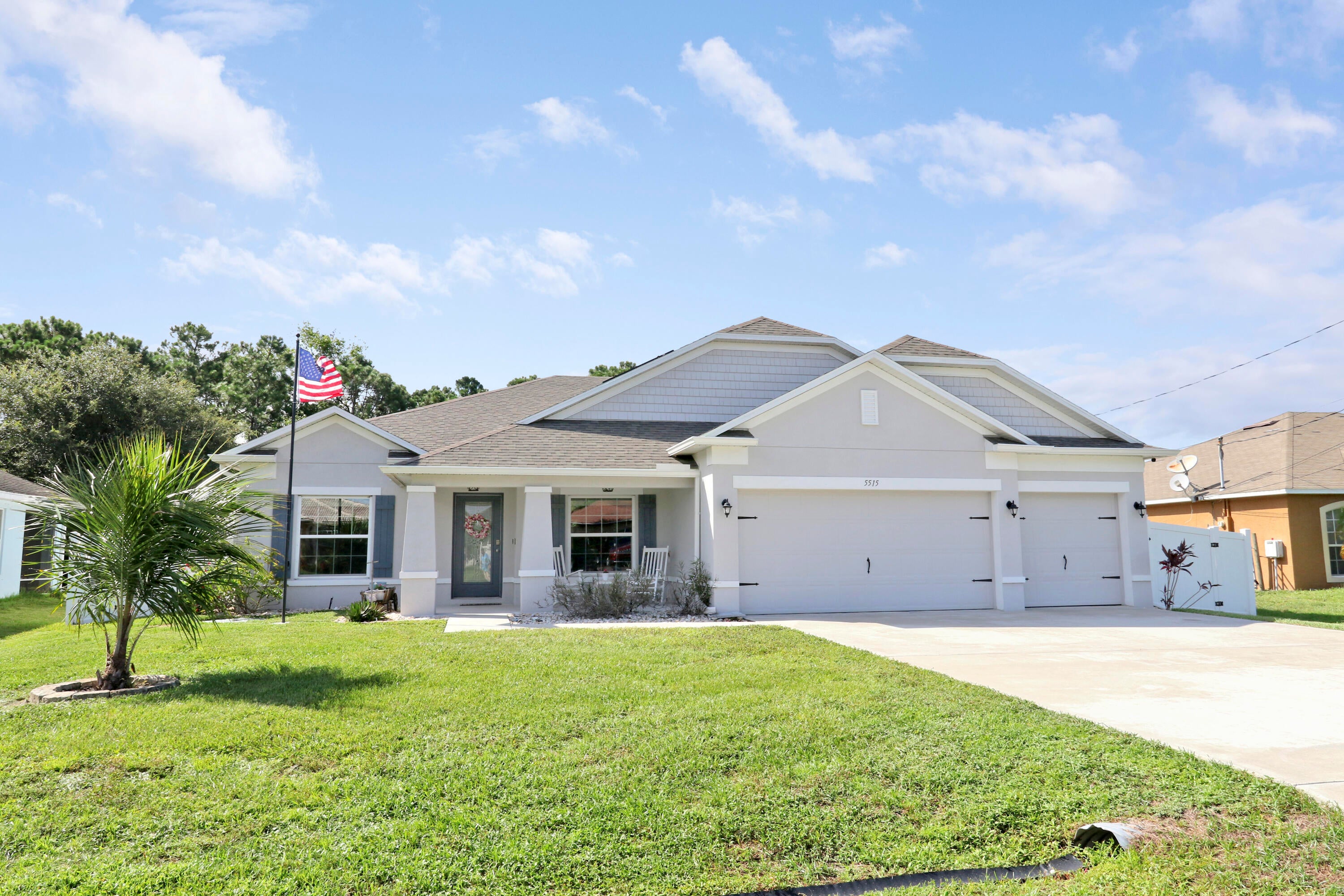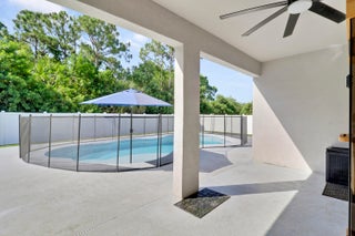 Welcome to this stunning 2020-built home offering the perfect blend of style, space, and functionality. Featuring 4 spacious bedrooms plus a versatile den, this home is designed to fit every lifestyle. Home is equipped with state of the art solar panels for low energy bills.Enjoy Florida living at its best with a beautiful sun deck and sparkling pool, all within a fully fenced backyard--ideal for entertaining or relaxing in privacy. Inside, you'll love the custom touches like shiplap detailing in the foyer and dining room, adding warmth and coastal charm. The open-concept layout flows seamlessly with high ceilings, abundant natural light, and modern finishes throughout. Stunning gourmet kitchen with quartz and expansive living space makes it perfect for gatherings.Additional highlights include 3-car garage with durable epoxy-coated floors. Private Guest Suite for visitors or multigenerational living. Located in a desirable, well-maintained neighborhood with no HOA. Move-in ready and built to impress don't miss this incredible opportunity!