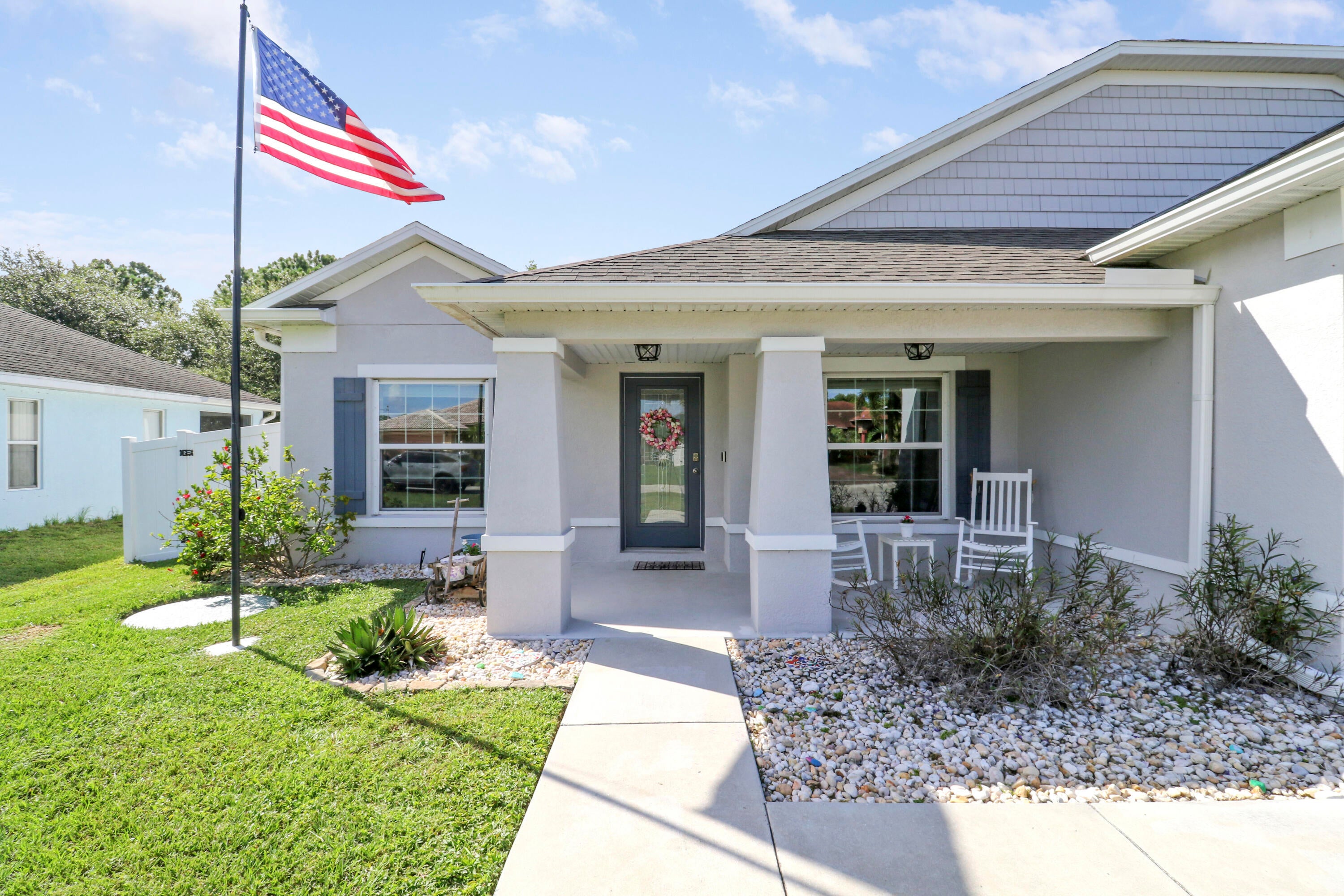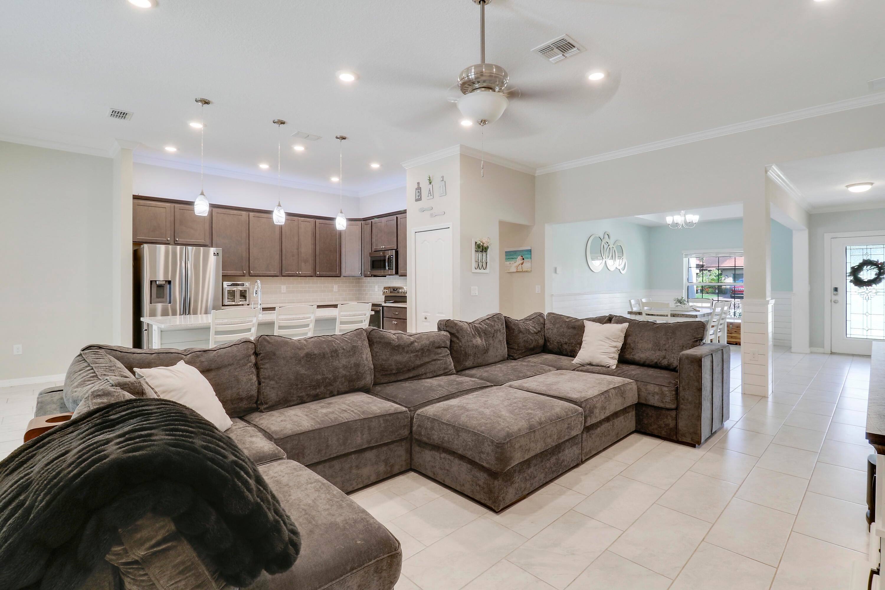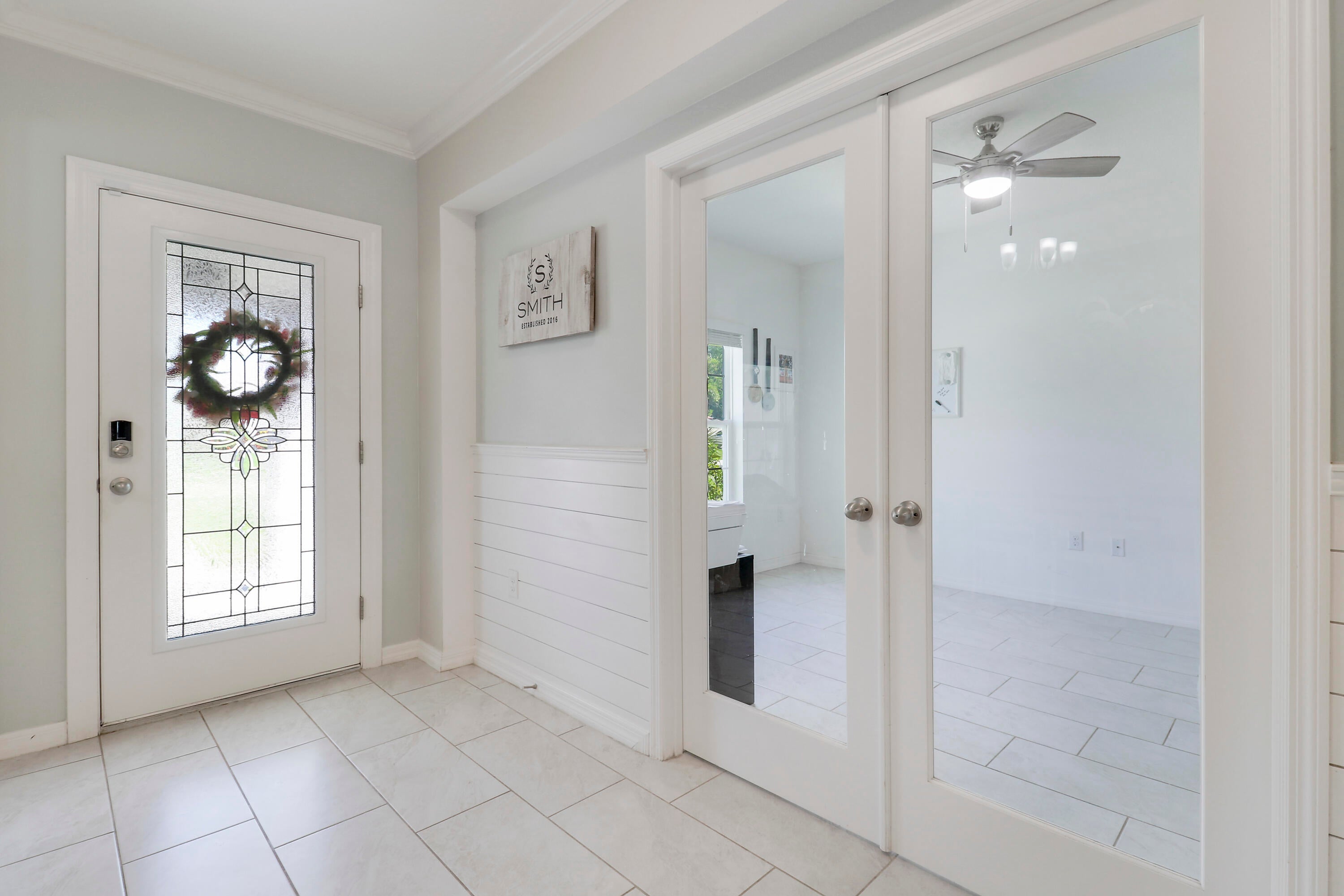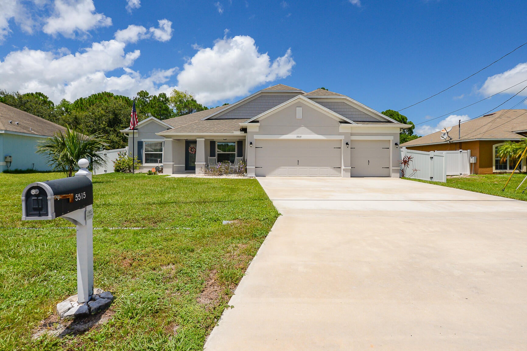 Welcome to this stunning 2020-built home offering the perfect blend of style, space, and functionality. Featuring 4 spacious bedrooms plus a versatile den, this home is designed to fit every lifestyle. Home is equipped with state of the art solar panels for low energy bills.Enjoy Florida living at its best with a beautiful sun deck and sparkling pool, all within a fully fenced backyard--ideal for entertaining or relaxing in privacy. Inside, you'll love the custom touches like shiplap detailing in the foyer and dining room, adding warmth and coastal charm. The open-concept layout flows seamlessly with high ceilings, abundant natural light, and modern finishes throughout. Stunning gourmet kitchen with quartz and expansive living space makes it perfect for gatherings.Additional highlights include 3-car garage with durable epoxy-coated floors. Private Guest Suite for visitors or multigenerational living. Located in a desirable, well-maintained neighborhood with no HOA. Move-in ready and built to impress don't miss this incredible opportunity!