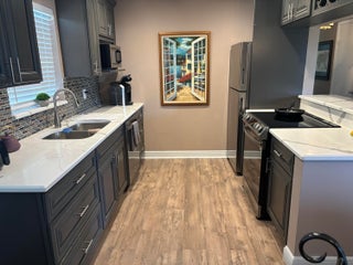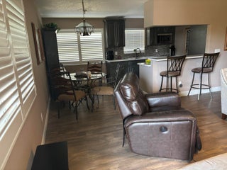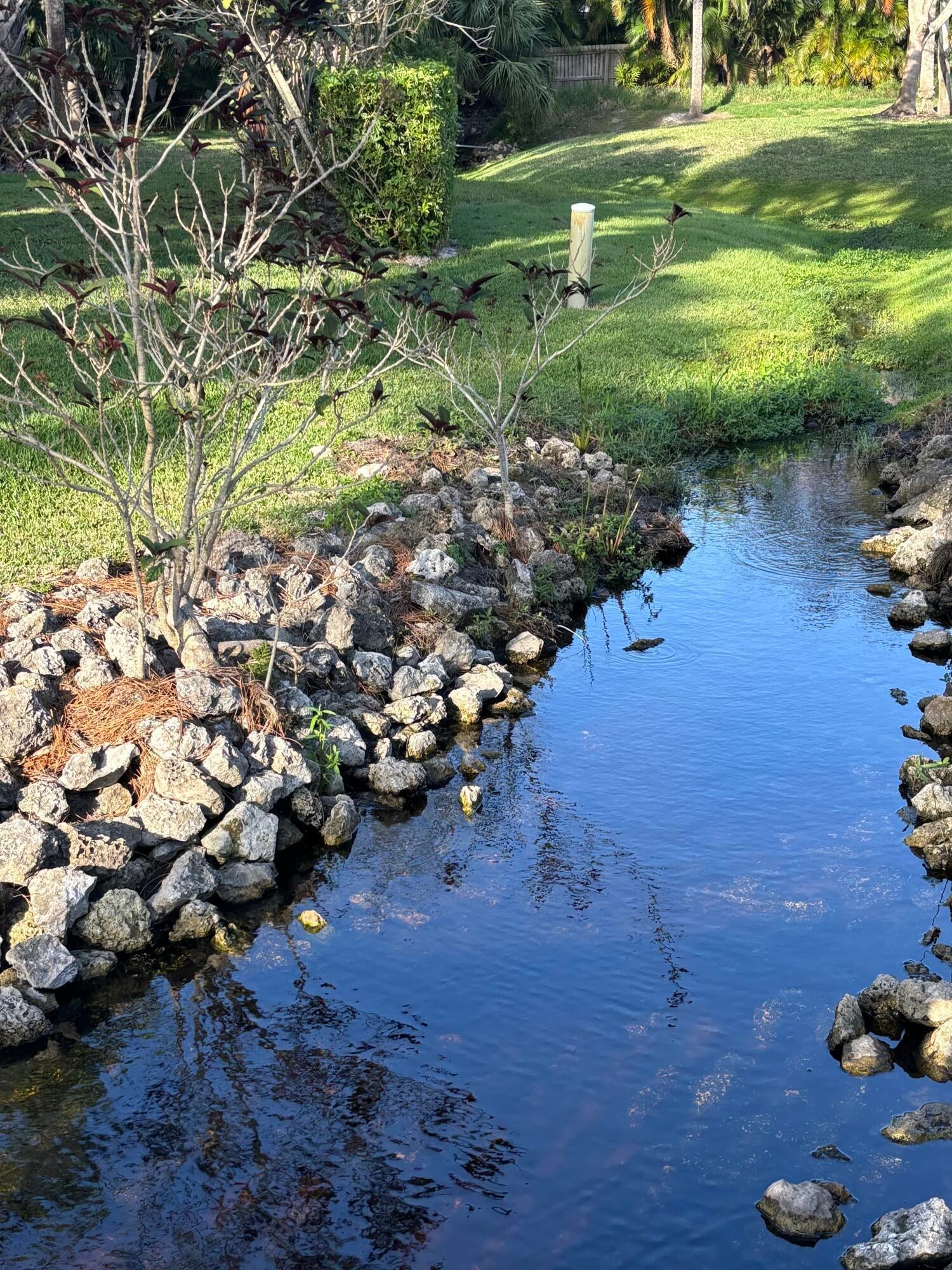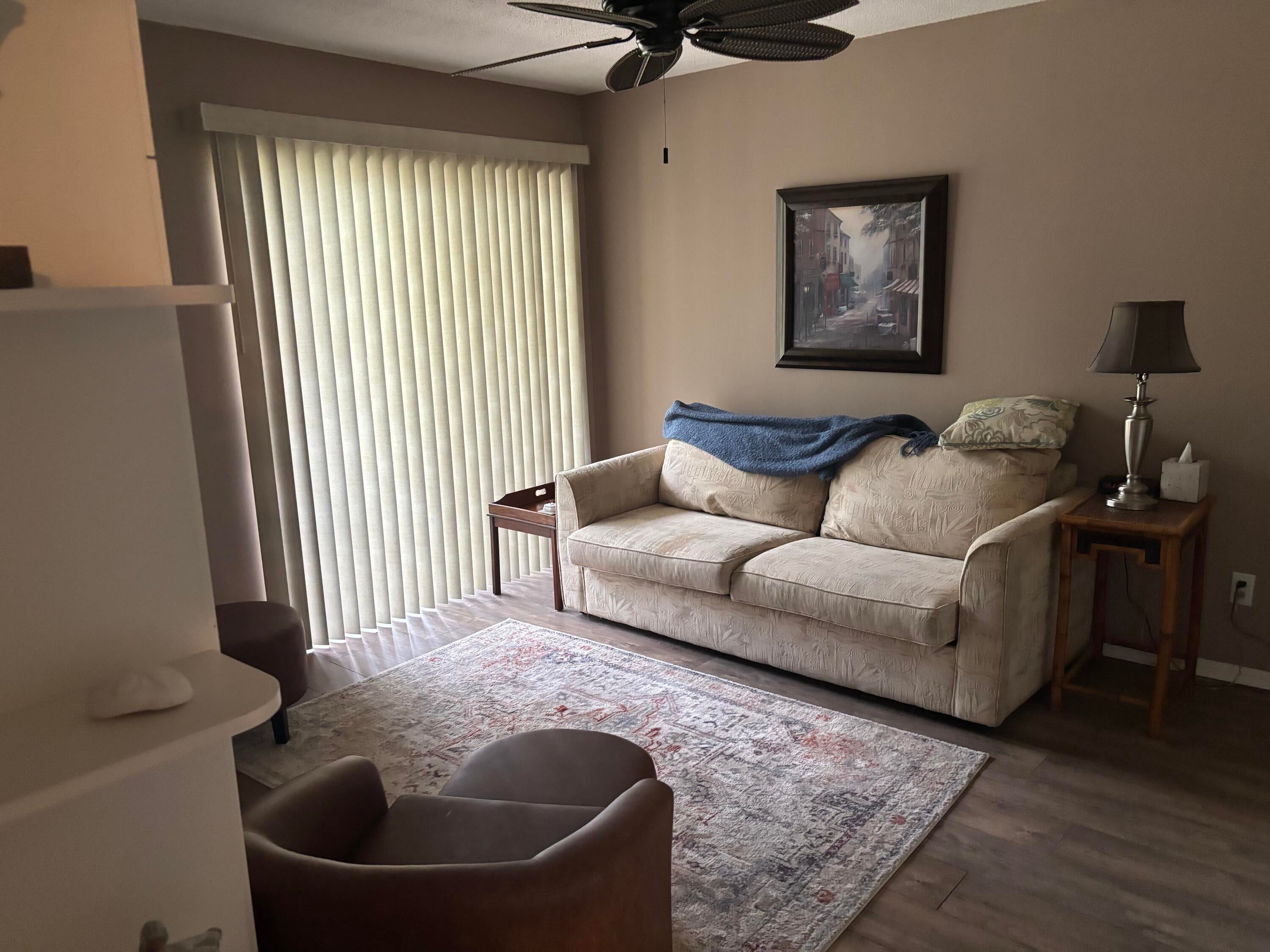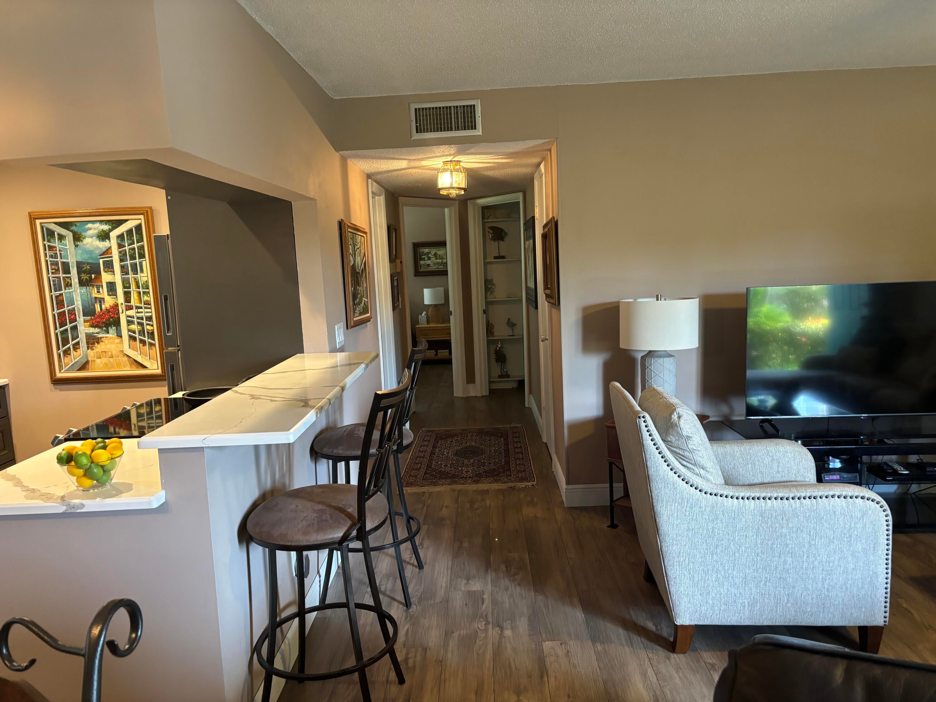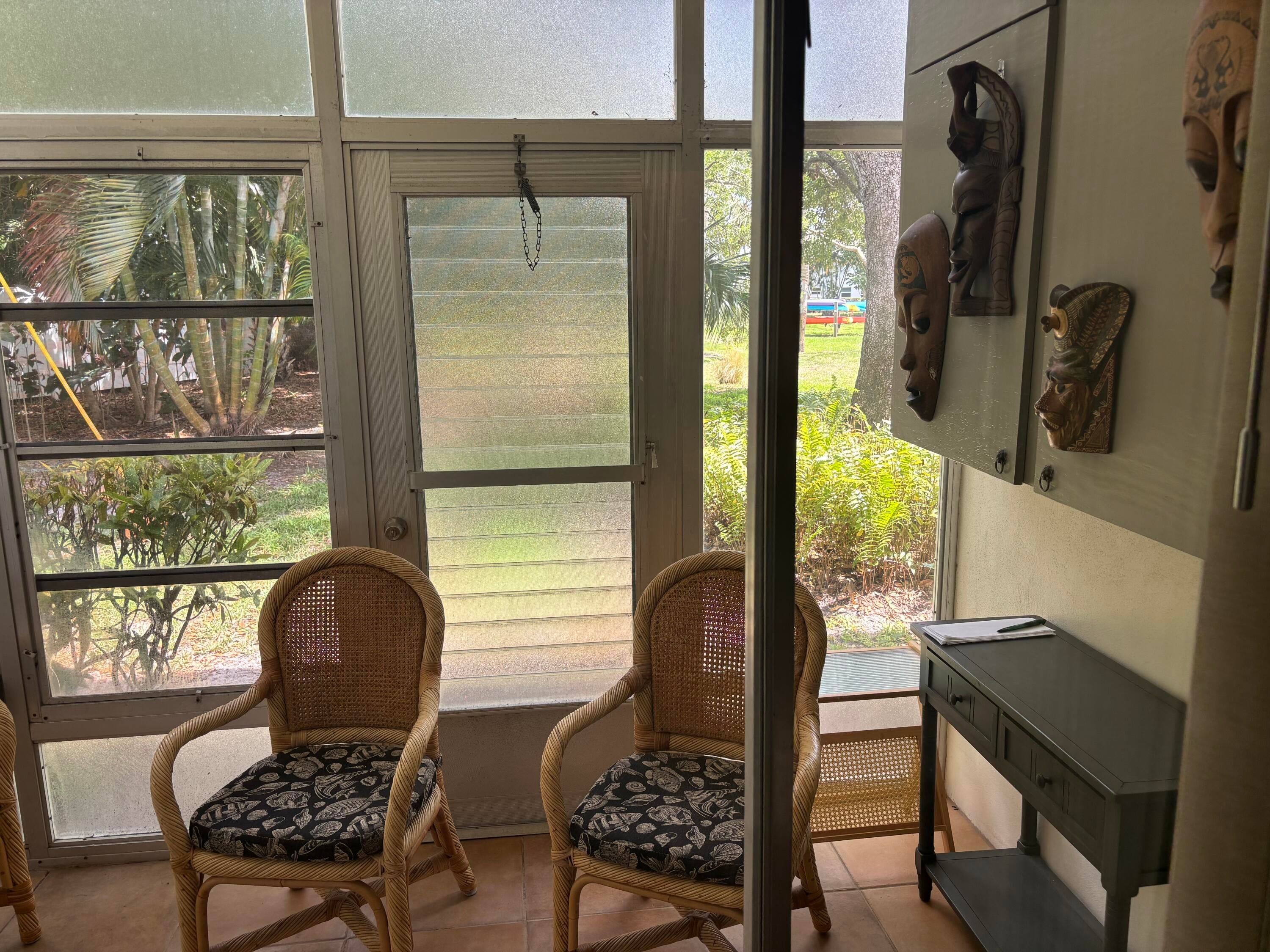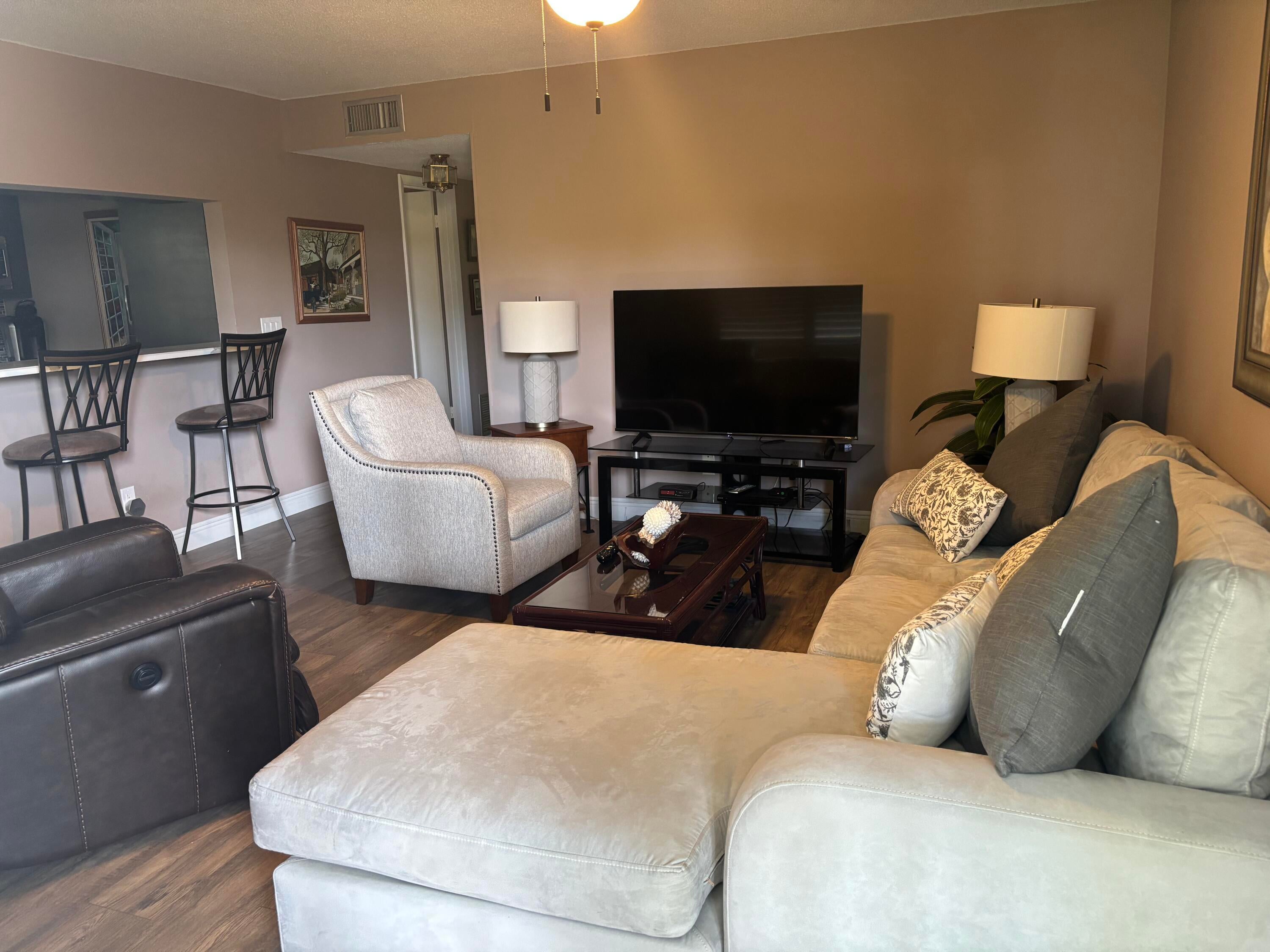 A rare find. Ground floor corner unit surrounded by palms & pines on three sides.Recent renovation includes: New plumbing New electrial New kitchen complete with granite countertops New laminate flooring, except bathrooms & patio New rooftop A/C installed in 2022 Overhead fans in living and bedrooms Plantation Shutters in living & dinig area All new stainless appliancesComplete turnkey unit includes all furniture, two (2) televisions, and utensils.Includes locker in first floor laundry room, one (1) assigned parking spot.Use of all association amenities.
