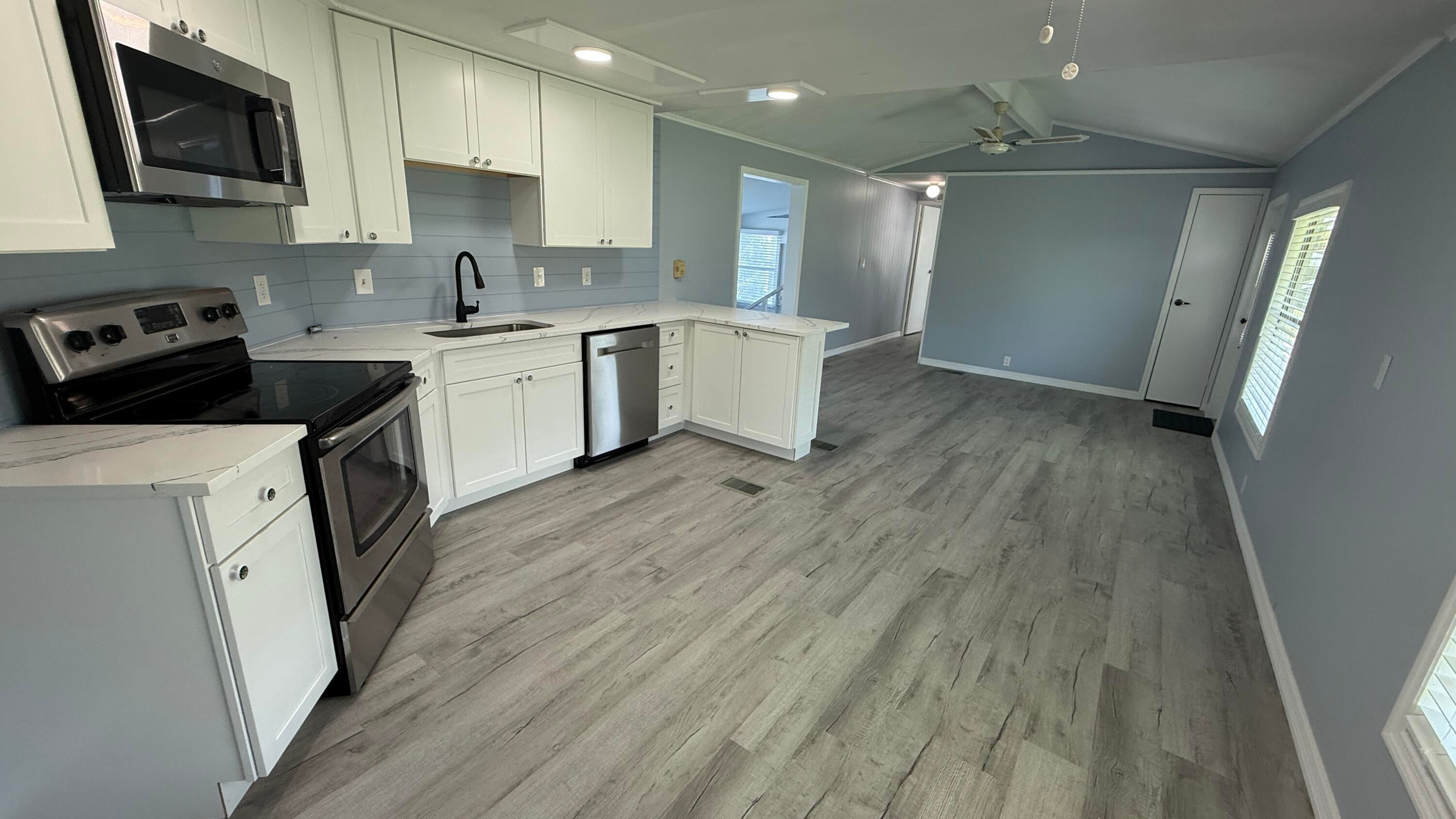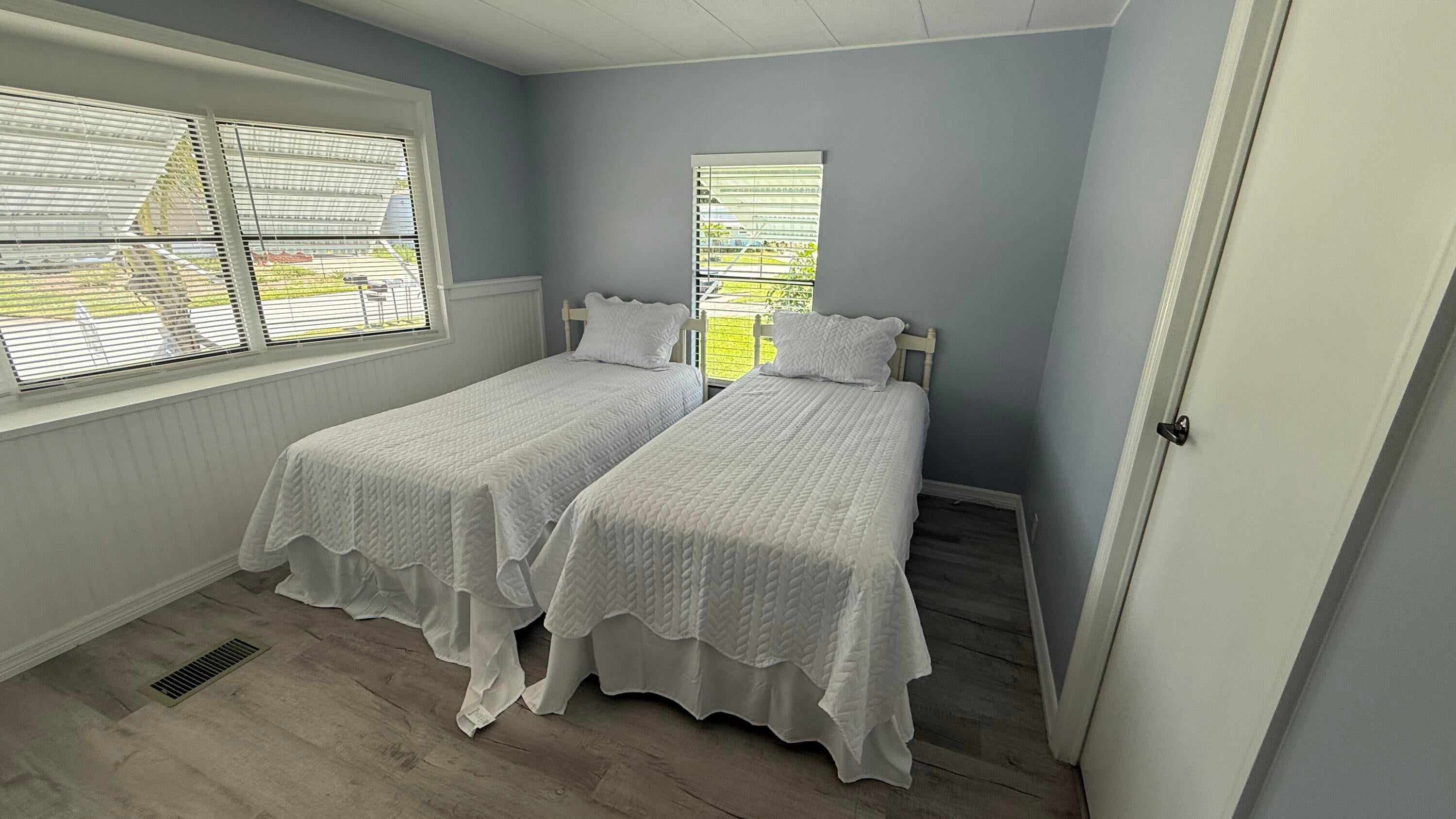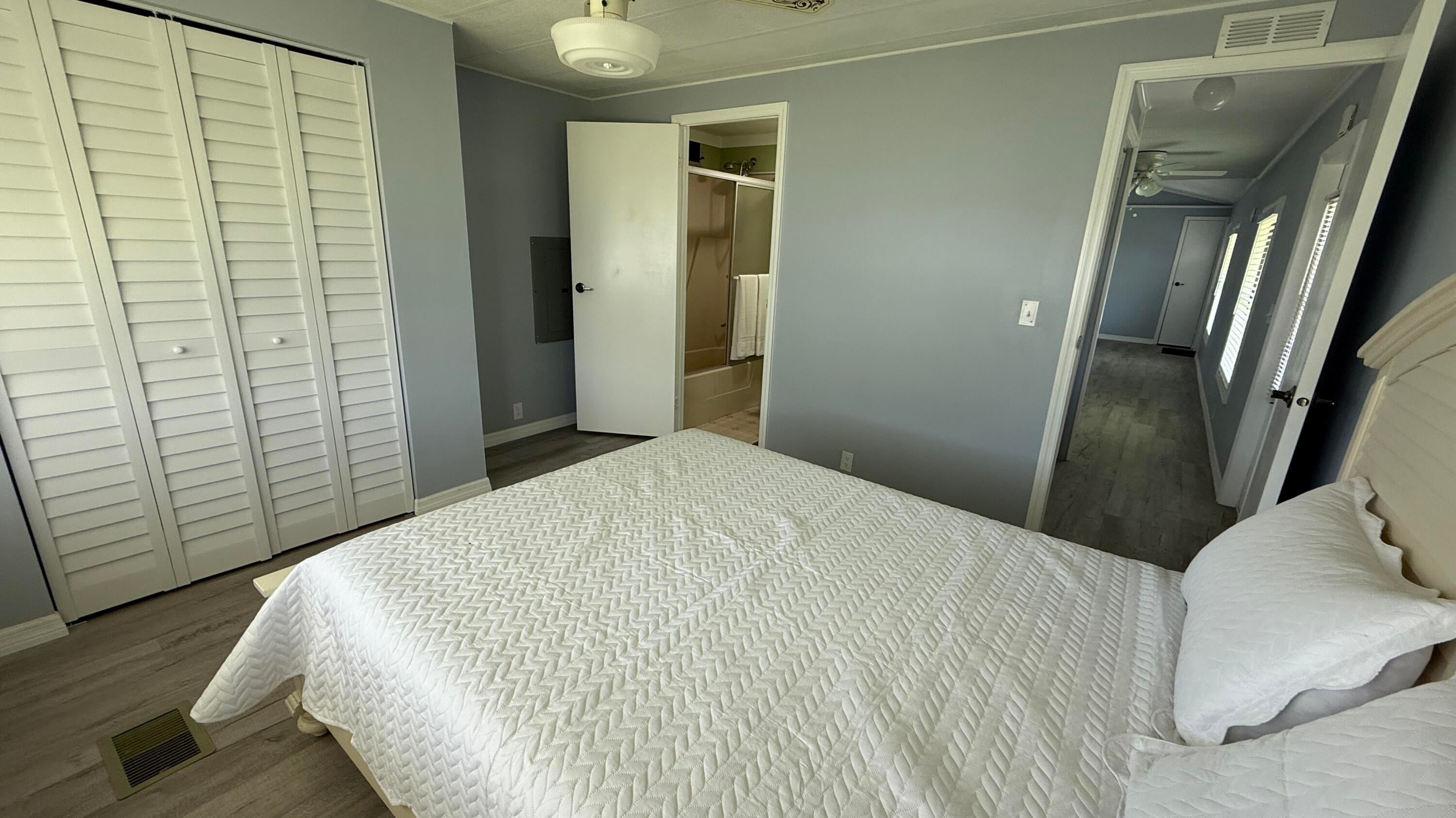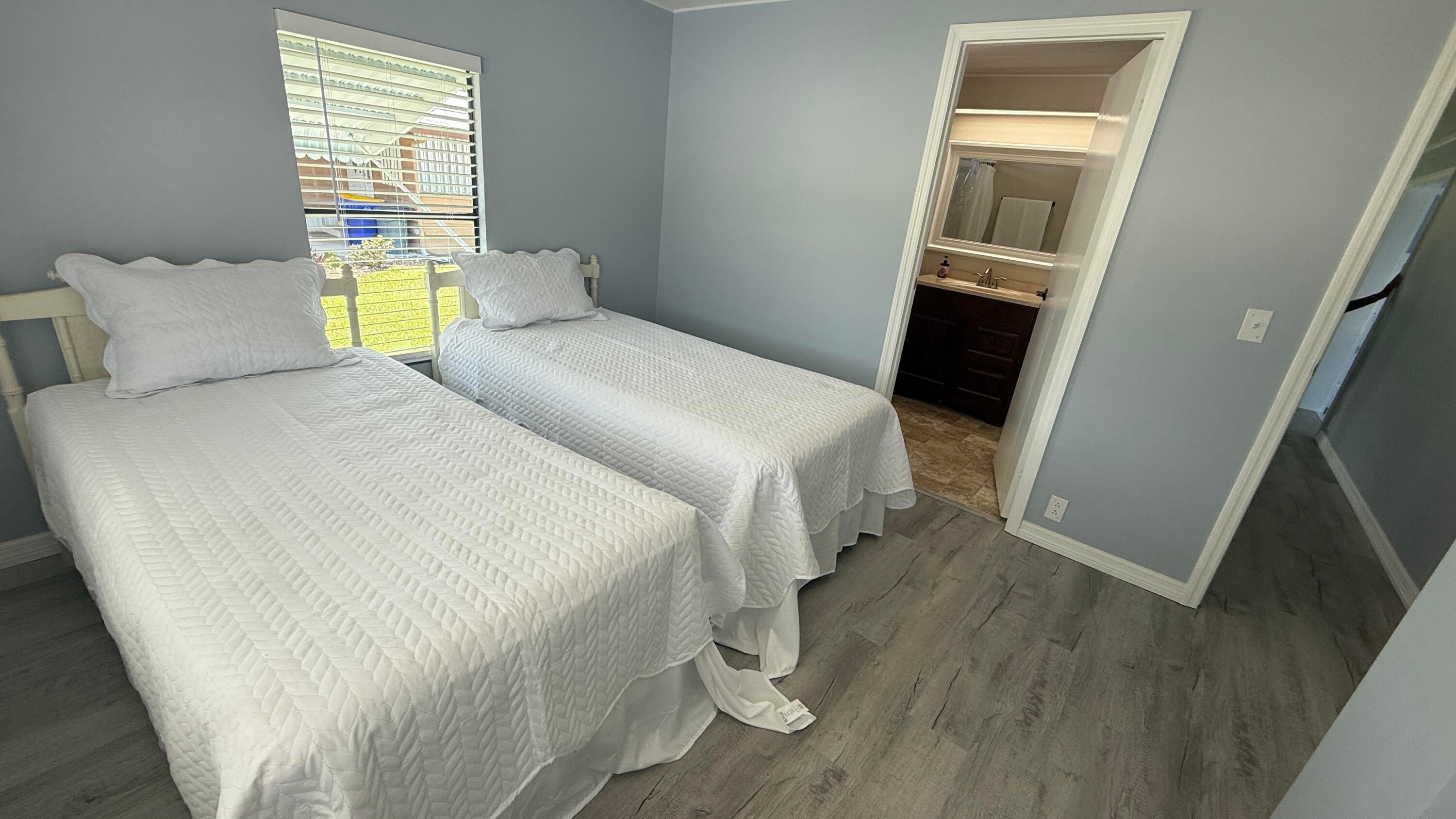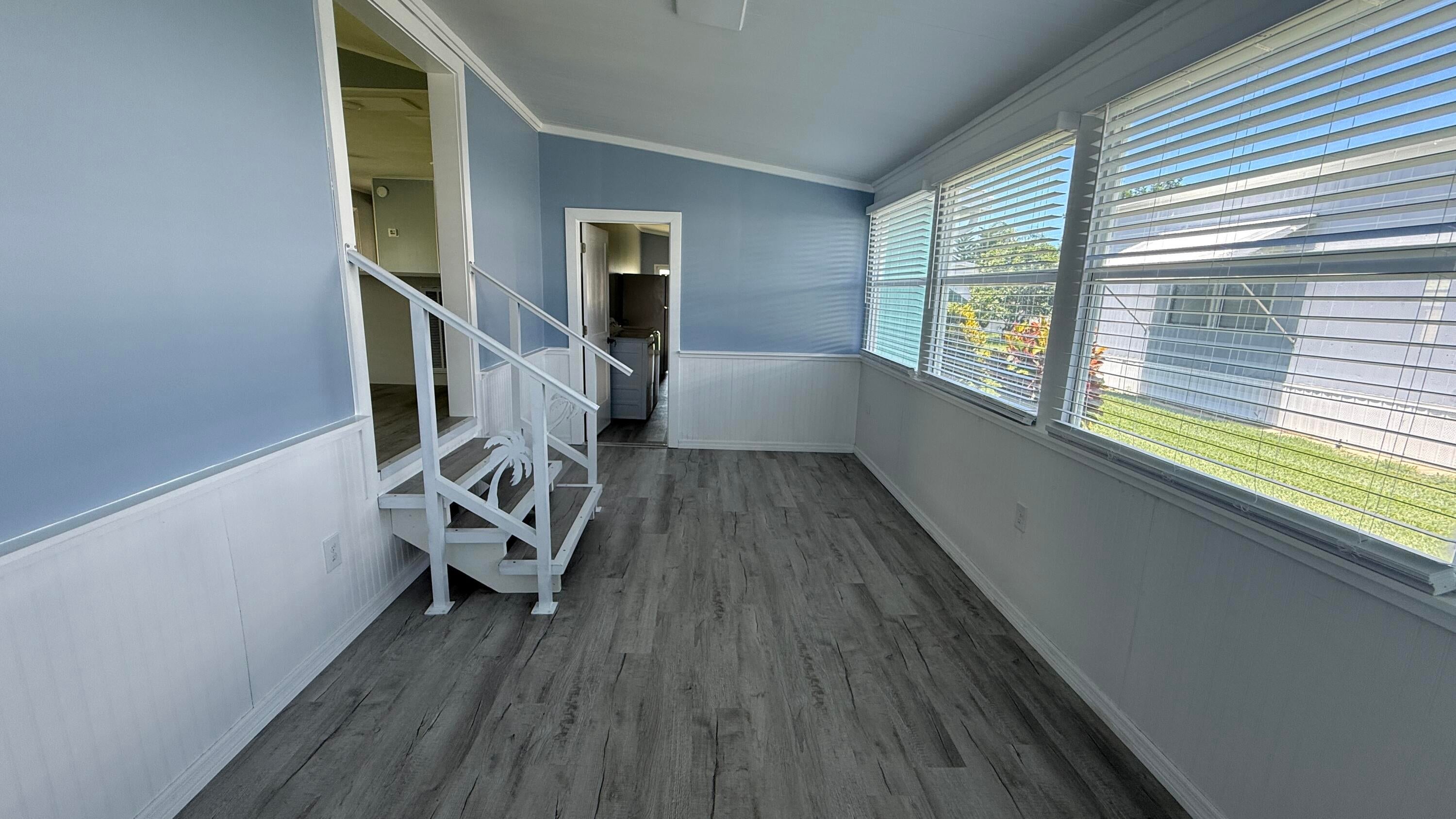 EXTREME MAKEOVER!!! Gorgeous 2 Bedrm/2 Bath Manuf home in Cambridge 55+ community in Hobe Sound. BRING YOUR BOAT/RV. All new vinyl plank flooring thruout over 3/4 inch Ply-wood subfloors. 2X4 16'' on center construction w custom tie downs. New Aluminum roof-over 2012. Electric zoned, well fed, sprinkler system, 2021 A/C. New Shaker Style bright white OPEN kitchen w quartz counters, LED lighting & stainless range, microwave & dishwasher. SPLIT Bedroom Plan. Both Bedrms have ensuite baths. You enter the home into a FL room w custom staircase to Great Room. The 10X32 Bonus/Rec room is on the same level w a pegboard wall, washer/dryer, slop sink & beer frig. Great Curb Appeal!! Cambridge is mins to Ocean Beaches, ICW Boat Ramp & shopping.. YOW OWN THE LAND - ALL PETS WELCOME. Low HOA.