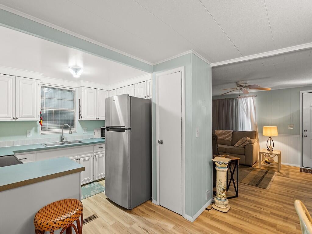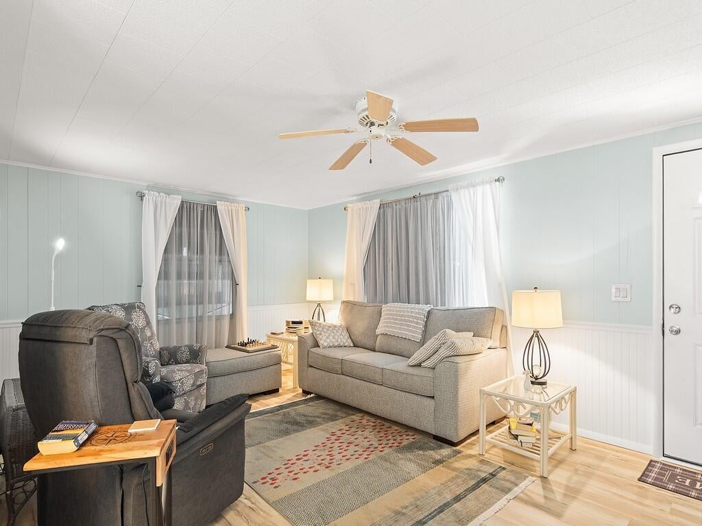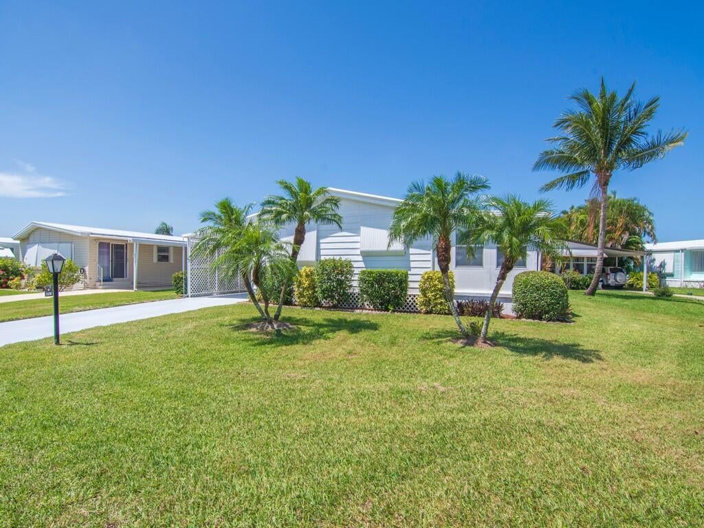 Welcome to 66 Pinelake Village Blvd, Jensen Beach, FL -- a charming double-wide home nestled in the heart of a vibrant 55+ community just minutes from the ocean. This beautifully maintained 2-bedroom, 2-bath home comes completely furnished and brand-new flooring throughout, giving the interior a fresh, modern feel. A new roof ensures peace of mind for years to come and the new vapor barrier adds an extra layer of protection and energy efficiency beneath the home. Situated on a spacious corner lot, this home offers both tranquility and convenience. Enjoy the perks of a fully equipped kitchen, and a cozy porch perfect for morning coffee or evening relaxation. Lot rent is $765 per month and includes cable, trash removal, recycling and all the amenities of the clubhouse.