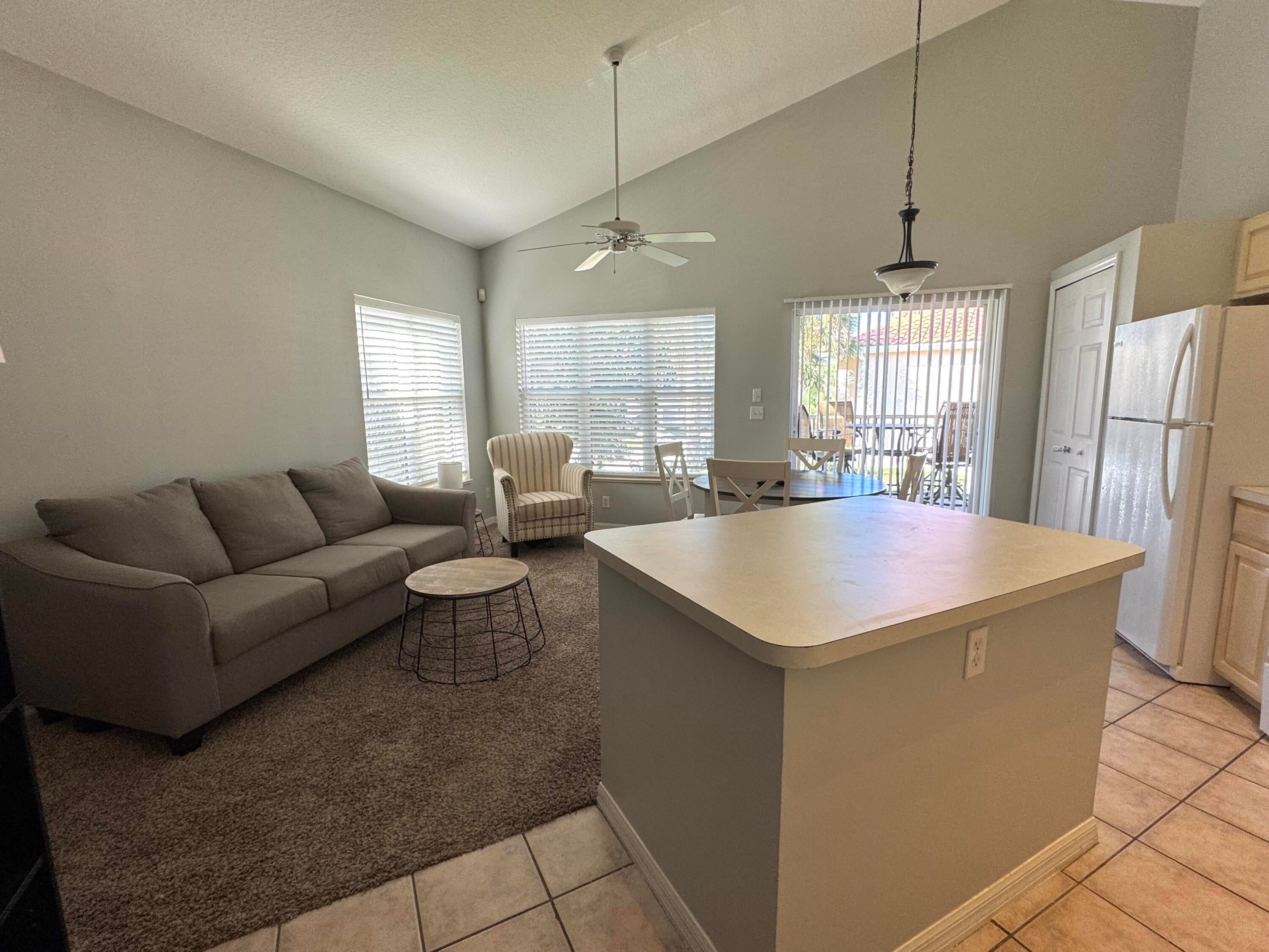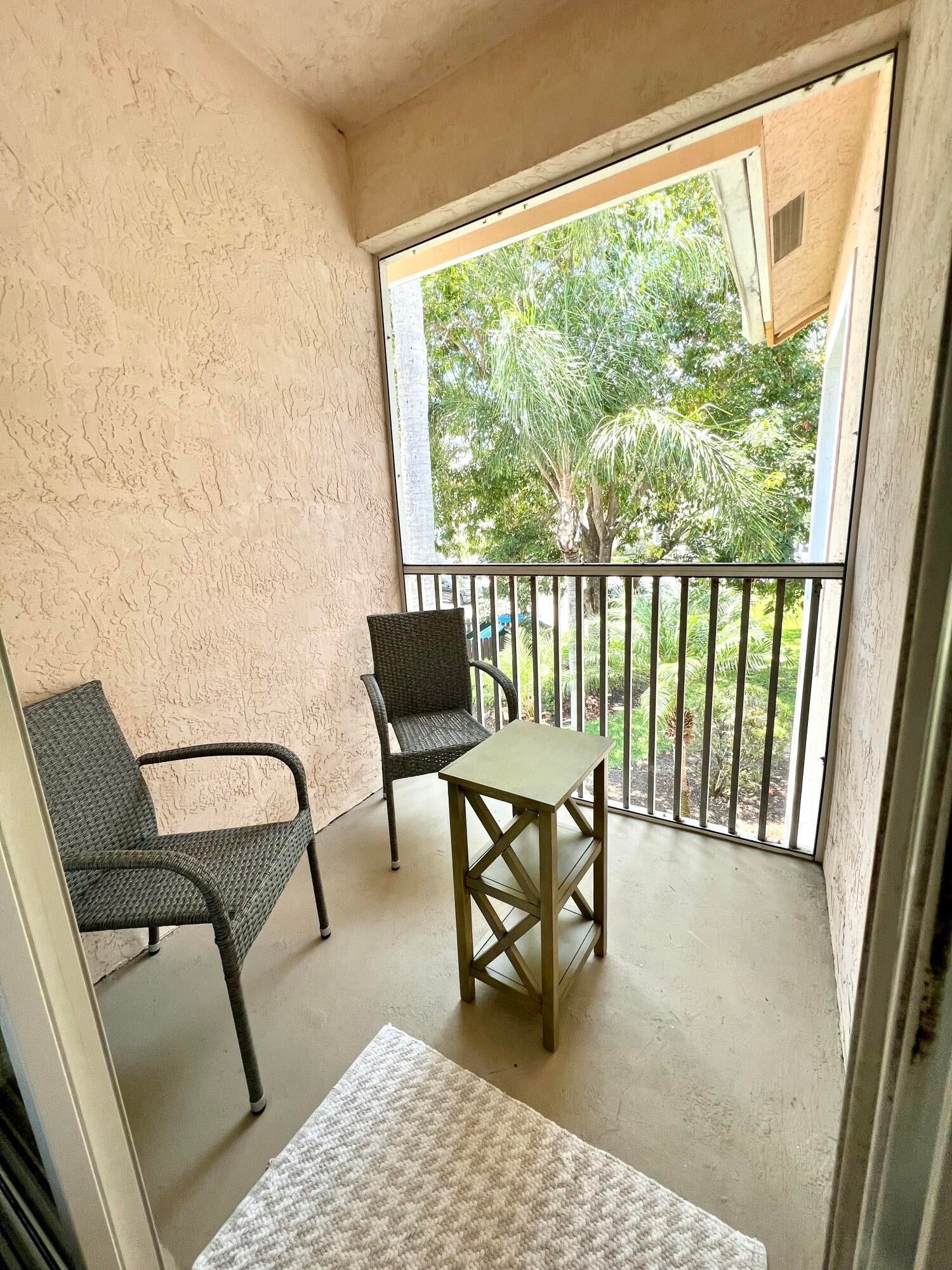 Perfect for investors - Condo in PGA Village's Golf Villas II featuring a flexible dual-entry layout. Side A is a full 1BD unit, while Side B is a private studio, both with a screened balcony with peaceful garden views. Both sides currently hold an annual lease. The AC unit on B side (2021), side B painted May 2023, side A painted Nov, 2024., washer and dryer (June 2021), side A AC unit (2017). Located just steps from the neighborhood pool and a short stroll to the PGA Golf Club.