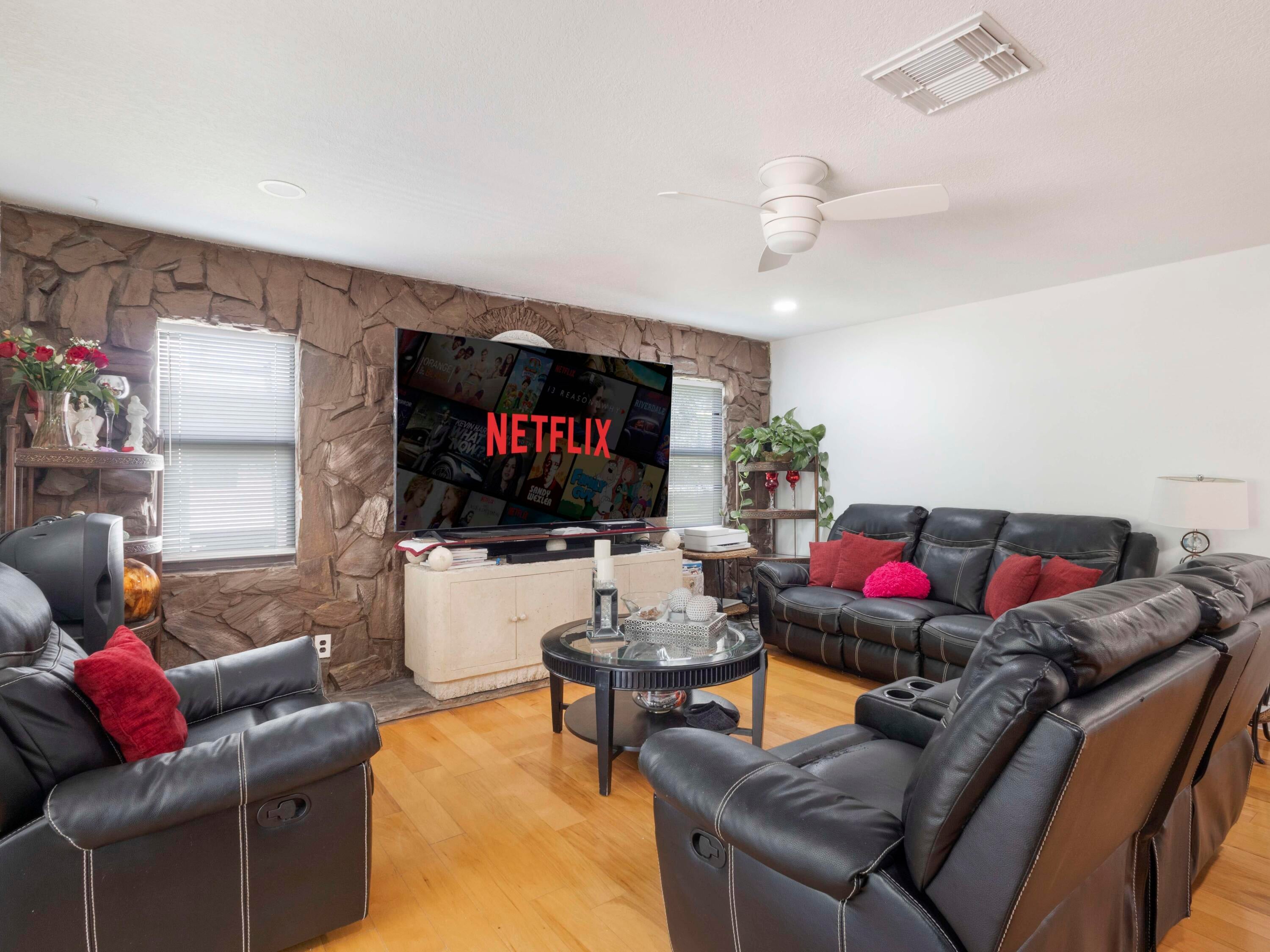 Welcome to this wonderful family home featuring 3 bedrooms and 2 bathrooms, designed for comfort and peace of mind. All windows are impact-rated for hurricane protection.The property includes a spacious 22' x 19' barn, perfect for storage or hobbies. Enjoy the outdoors in the screened and covered patio, which stretches an impressive 70 feet long by 12.5 feet wide--ideal for entertaining or relaxing year-round.Step outside to an extra-large wooden deck in the backyard, offering plenty of space for gatherings or enjoying nature. The entire property is fully fenced, providing privacy in a peaceful, tucked-away locatio