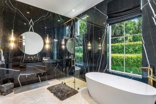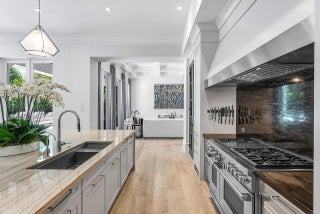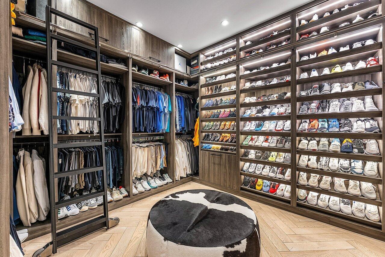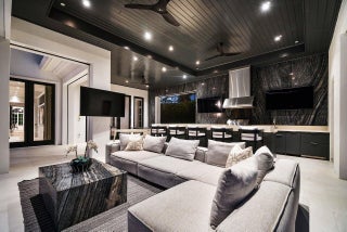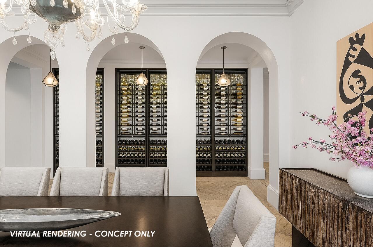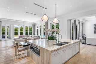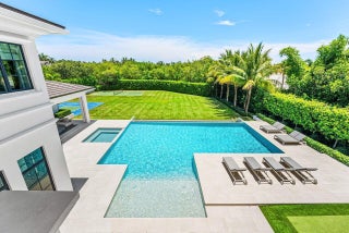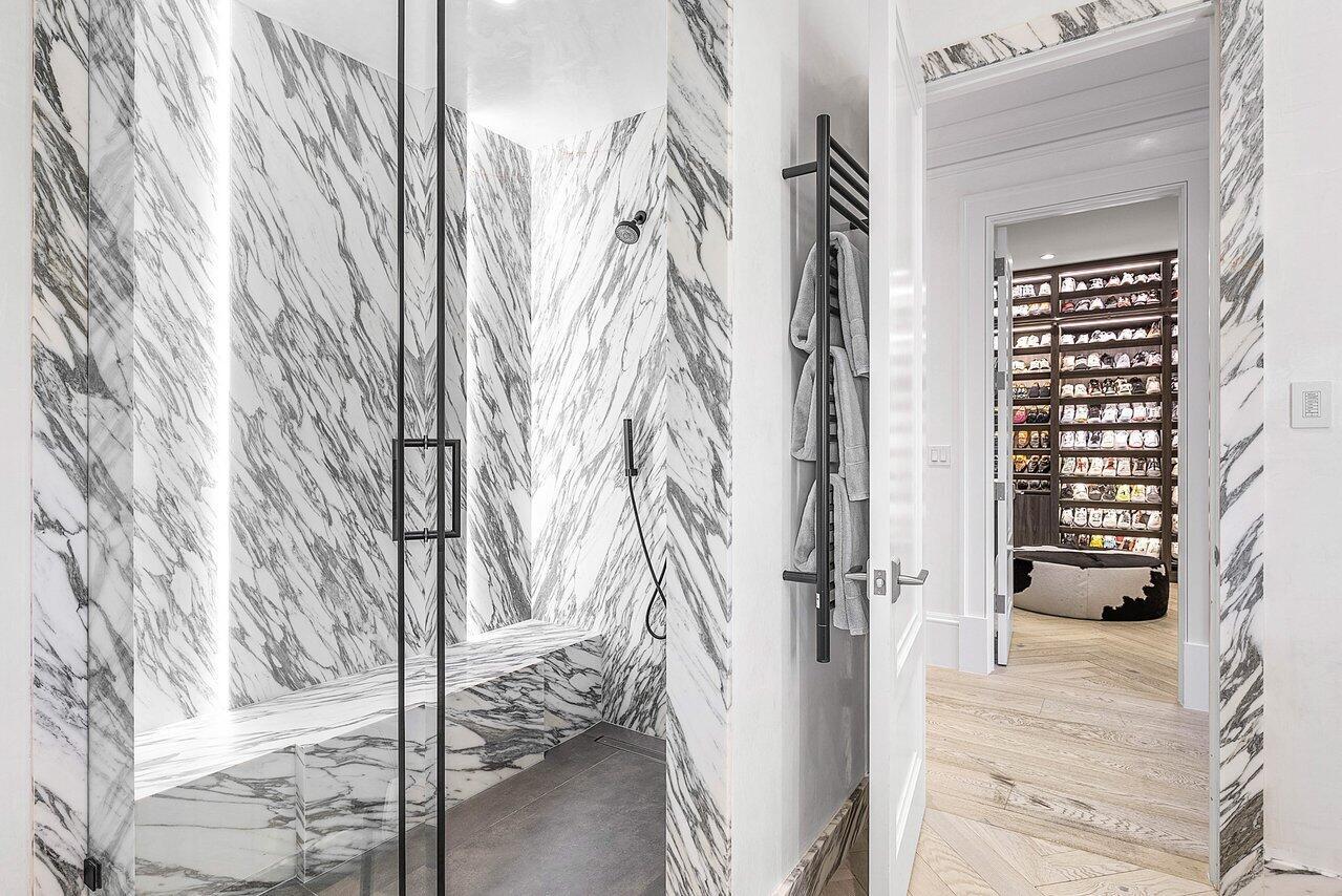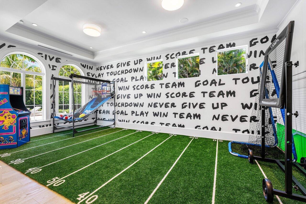 A one-of-a-kind masterpiece in prestigious Seminole Landing, this ultra-custom estate blends timeless elegance with modern innovation. Completed in 2020 with an unwavering commitment to quality, the home delivers an unparalleled living experience just minutes from Seminole golf course, other championship golf courses and private beach access.Set on over an acre at the end of a tranquil cul-de-sac, the residence is enveloped by lush tropical landscaping and towering privacy fences that ensure a secure retreat. Approximately 70% of the interior is finished in hand-applied Venetian plaster, a striking complement to the sophisticated Crestron automation system, Sonos audio throughout, and comprehensive Lutron lighting and motorized blinds.Luxury extends into every space, from the grand foyer to the expansive living areas. The chef's kitchen is a showpiece, appointed with Wolf appliances, Sub-Zero refrigeration, dual Bosch dishwashers, a Miele steamer, and an oversized custom island, all seamlessly connected to a walk-in butler's pantry and an area thoughtfully designed for a dramatic wine wall. Nearby, an elegant club room and bar feature dark cabinetry with gold accents, stunning white and black countertops, a Sub-Zero pull-out refrigerator, wine refrigerator, and are pre-plumbed for an additional sink, perfect for entertaining. A dedicated movie theater offers an immersive experience with fully electric reclining chairs, a custom $28,000 twinkle ceiling, and built-in surround speakers. The main level primary suite is a private sanctuary featuring a fireplace opposite the bed, his and her luxurious bathrooms, and boutique-style closets, including a closet with a center island. Upstairs, all bedrooms boast 10-foot ceilings, ensuite baths with stunning showers, and custom walk-in closets, accompanied by an additional loft-style den with double built-in workstations, and a balcony with a negotiable cold plunge and sauna. A secondary laundry room upstairs complements the spacious main laundry on the first floor. Outdoors, the home becomes a resort, featuring an oversized infinity-edge pool and spa, a putting green, half basketball court, and pickleball court, all surrounded by impeccably maintained lawn at golf-course quality. The full summer kitchen is equipped with a Wolf grill and multiple TVs, while marble slab walls add architectural drama. Botanical mosquito misters ensure comfort and safety for children and pets, and two-year-old electric shades provide effortless sun control. Additional highlights include four garage spaces with both attached and detached configurations, an elevator, a whole-house generator, a reverse osmosis water system, comprehensive security with cameras and central station monitoring, and all TVs throughout the home included. On breezy days, the soothing sound of the nearby ocean serves as a gentle reminder of this estate's exceptional coastal location. Situated within Seminole Landing, one of North Palm Beach's most sought-after gated communities with full-time security, private ocean access, and tennis facilities, this property is a rare opportunity to experience South Florida living at its most refined.