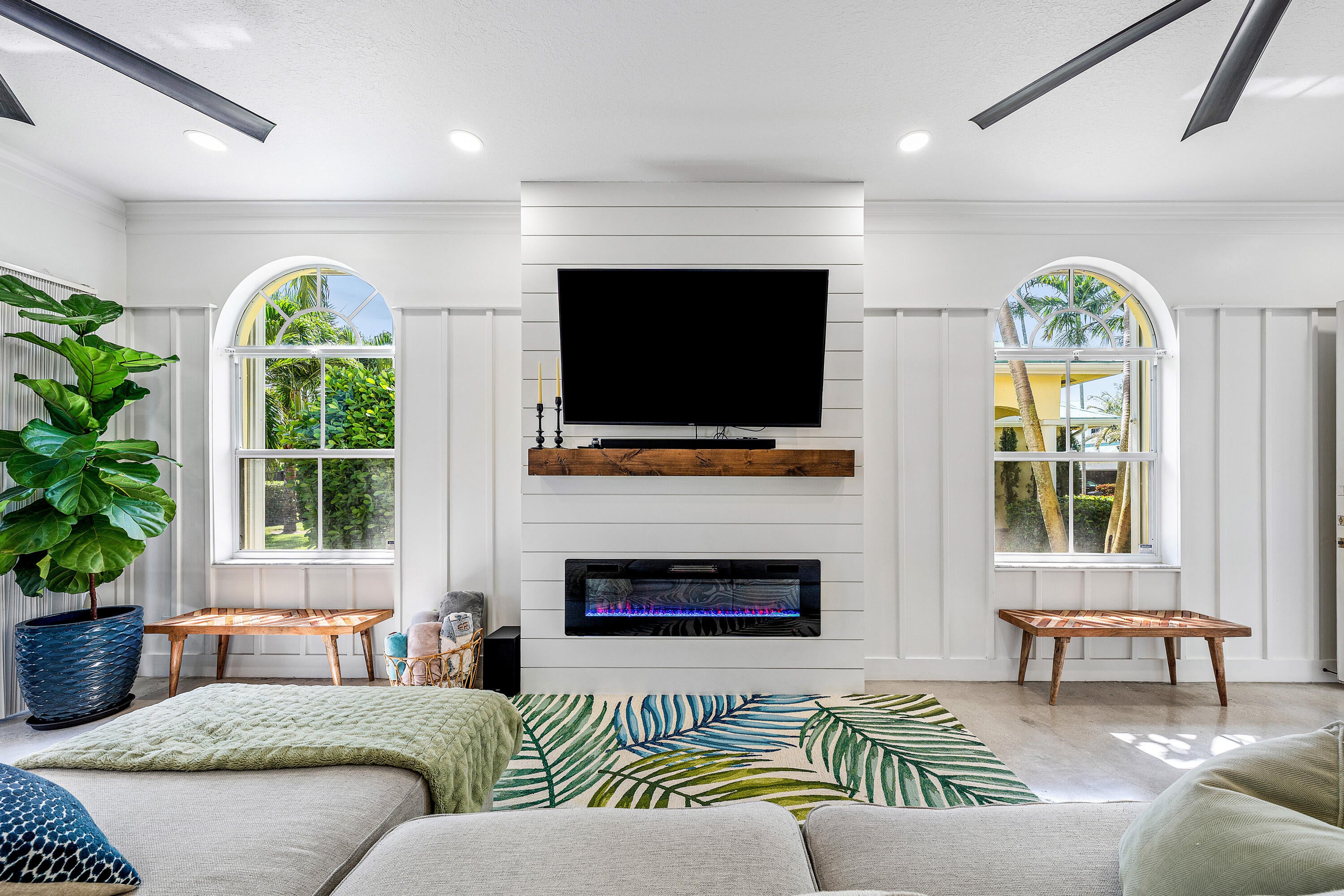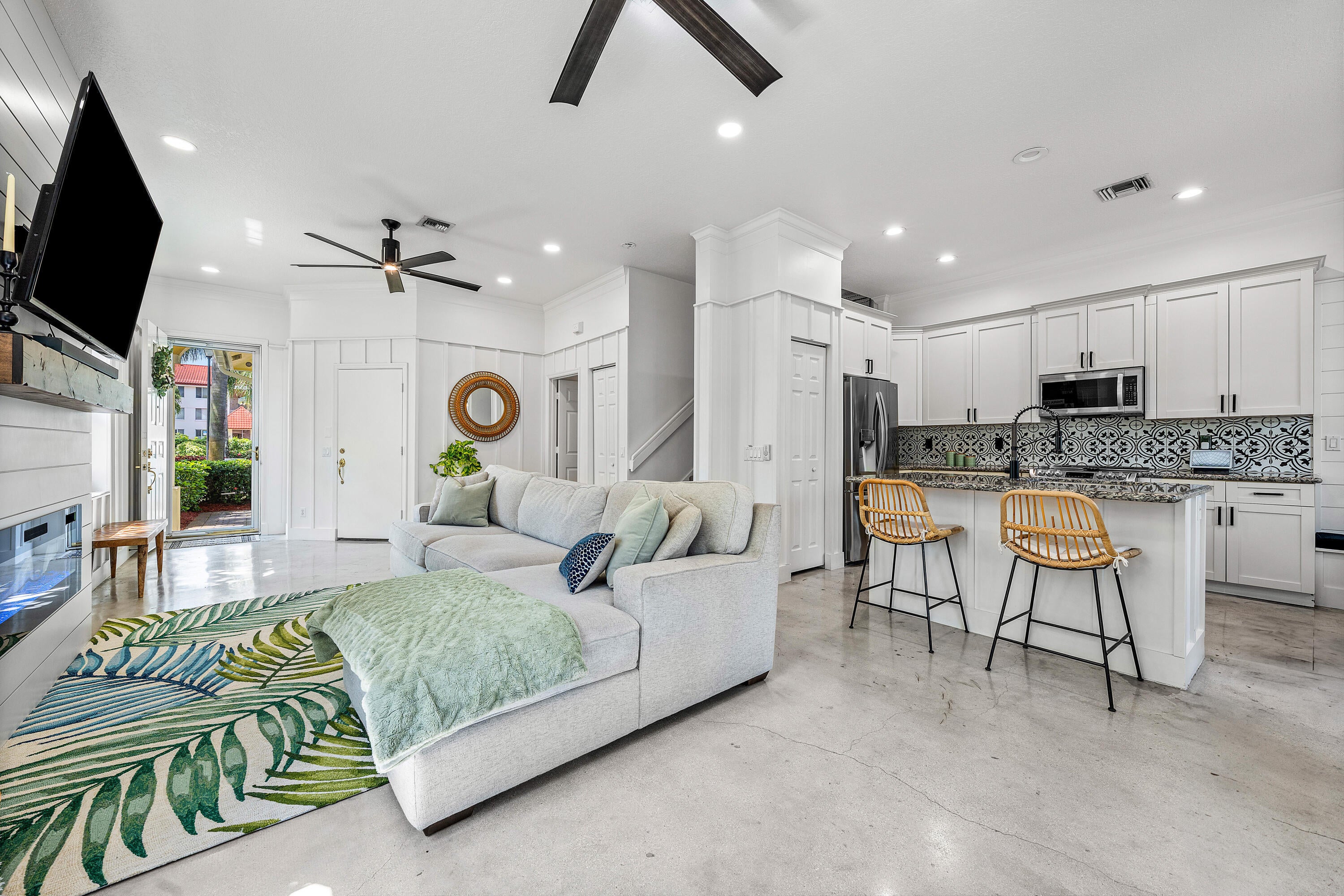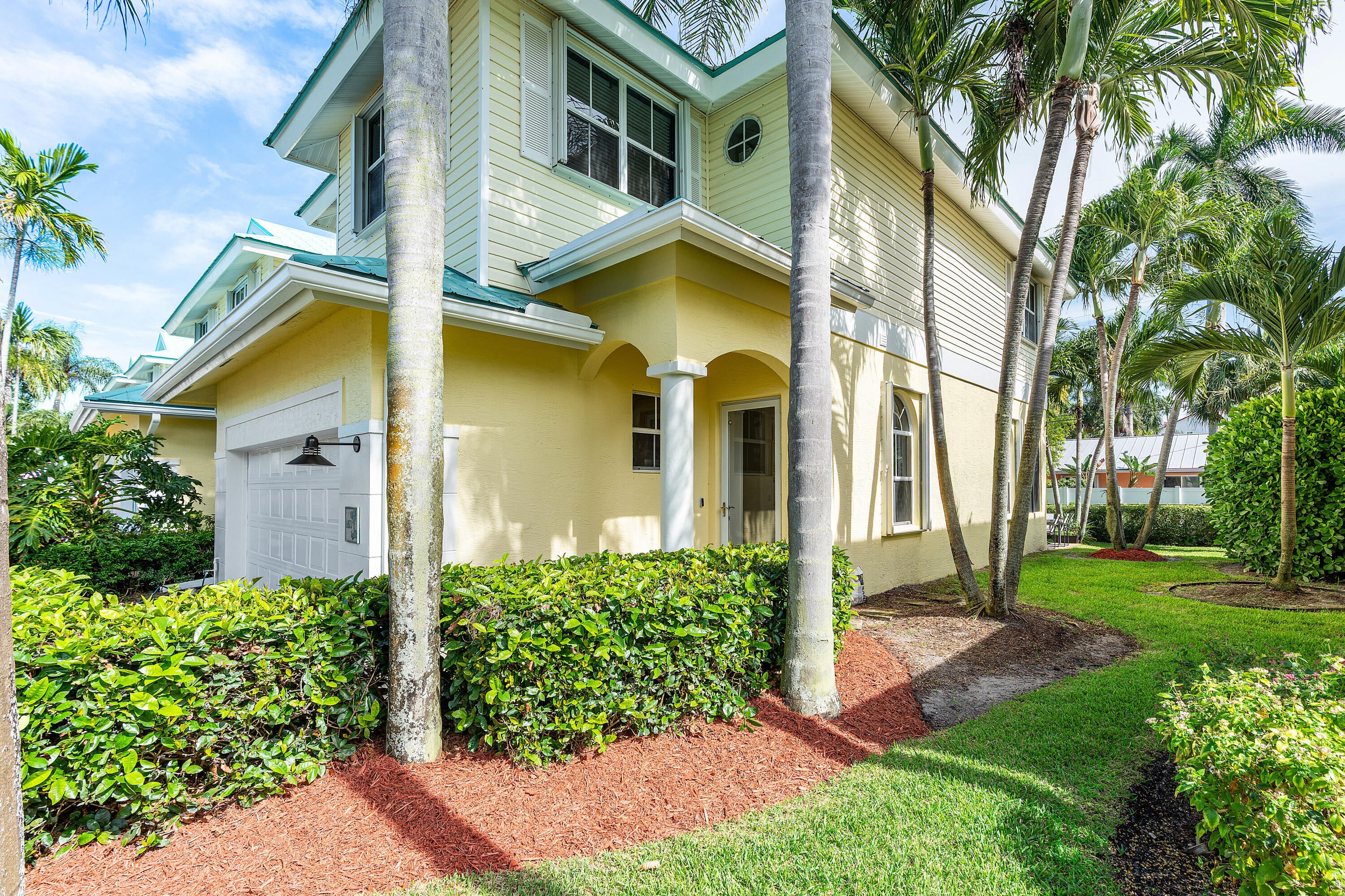 Welcome to Barefoot Cove, a tropical paradise gated waterfront community where every day feels like a vacation. This beautifully updated 3-bedroom + den, 3-bathroom end unit townhome offers the perfect blend of privacy, comfort, and coastal charm. Located directly across from the Intracoastal-front pool, this residence is one of the most desirable spots in the neighborhood.Step inside to discover thoughtfully upgraded interiors, including all remodeled bathrooms, custom Crate & Barrel light fixtures, and dimmer switches throughout for a perfectly curated ambiance. The screened sunroom and expansive patio provide ample outdoor living space to relax, entertain, or simply enjoy the tropical surroundings.Additional highlights include a rare 2-car garage, flexible den/officespace, and generous natural light thanks to the end unit positioning. The pet-friendly and rental-friendly community is gated for peace of mind and convenience, and just moments from beaches, shopping, and dining. Whether you're looking for a full-time residence or a lock-and-leave coastal retreat, this home captures the essence of South Florida living at its finest.