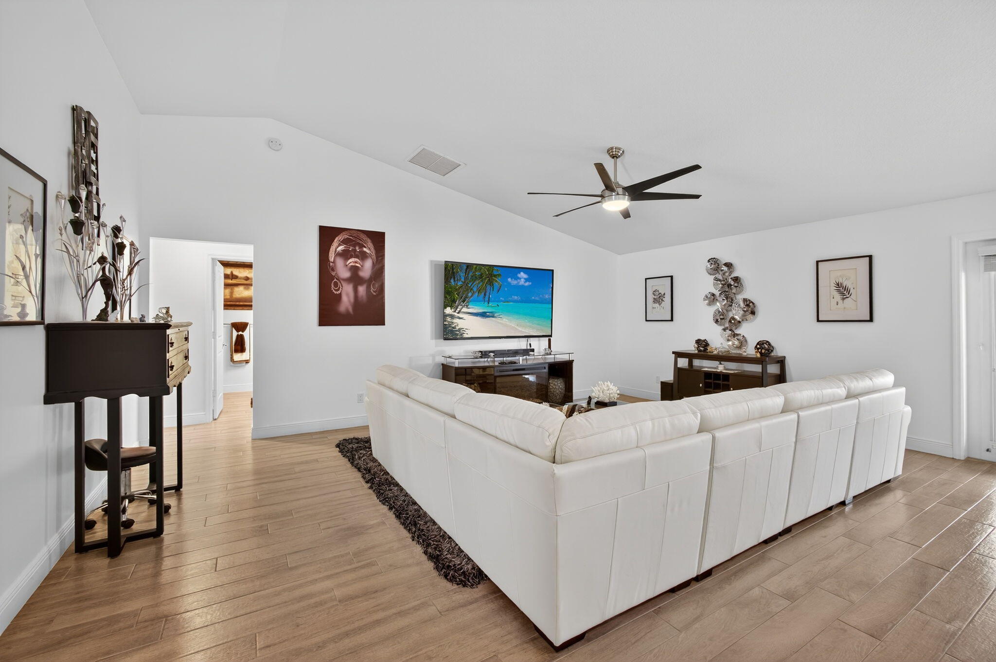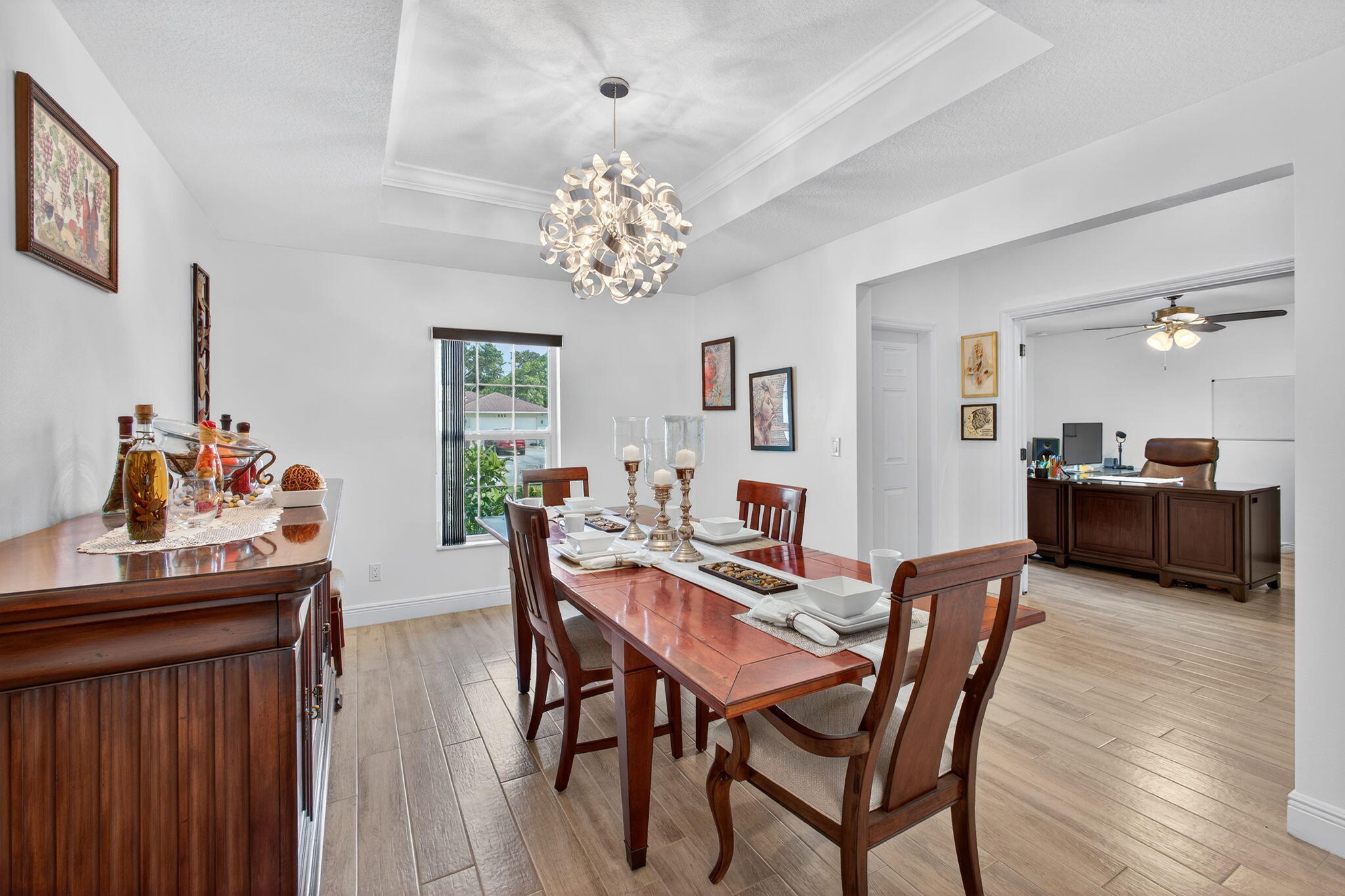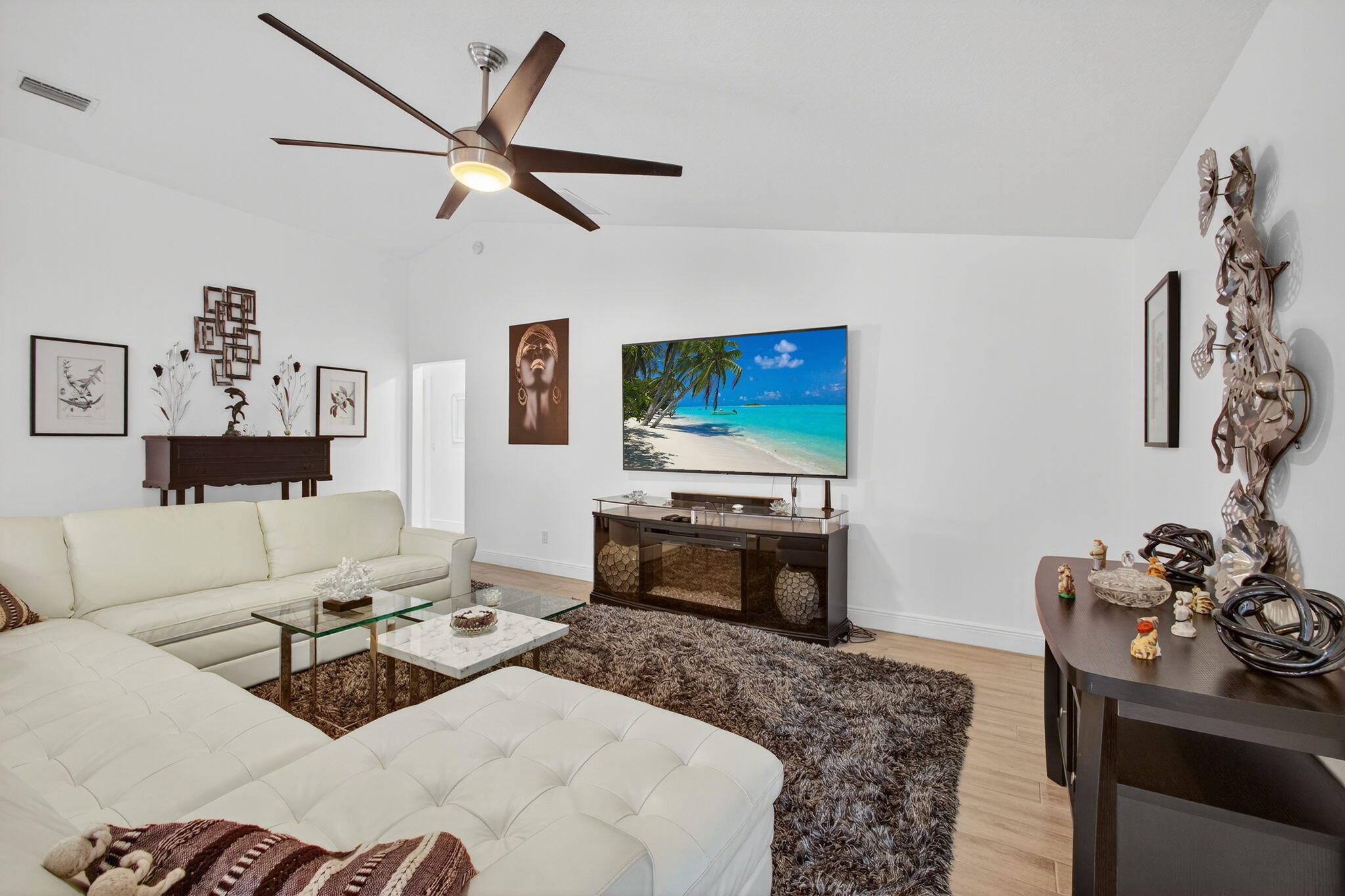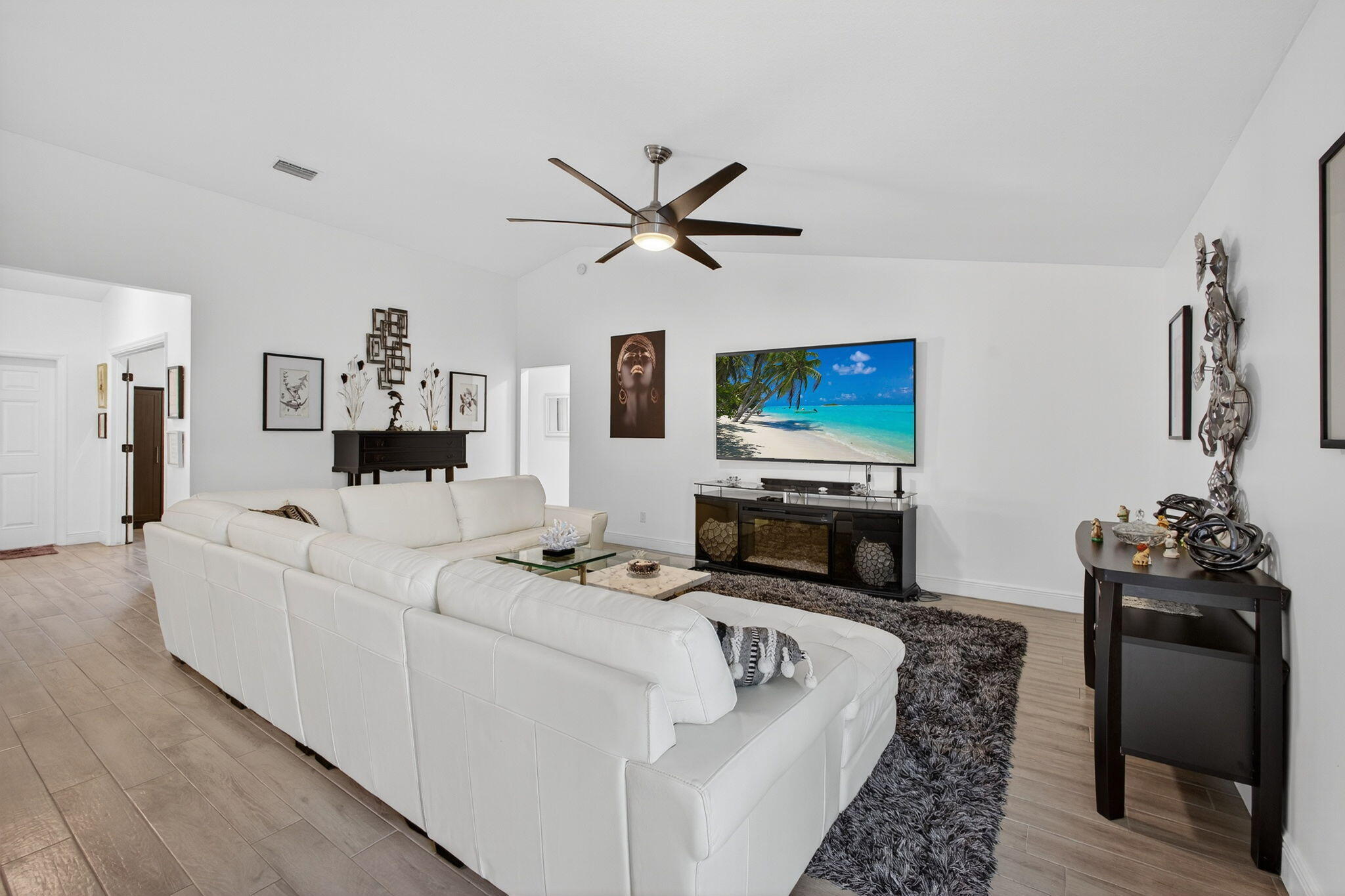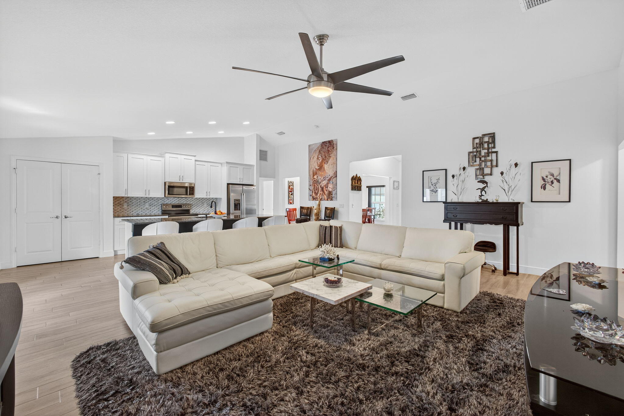 STUNNING 4-BEDROOM RANCH | DESIGNER SHOWCASE HOME MOVE-IN LUXURY OR BLANK CANVAS - YOUR CHOICE!Prepare to be WOWED! This isn't just another house - it's a show-stopping, jaw-dropping masterpiece that will have you canceling every other showing on your list!Discover this breathtaking ranch-style gem featuring four (4) generous bedrooms But here's the kicker, you can walk into COMPLETE DESIGNER LUXURY or create your own vision!The Plot Twist: STUNNING DESIGNER FURNISHINGS AVAILABLE SEPARATELY! House price = house only. Want the magazine-worthy furniture? Let's talk! Want to bring your own style?Perfect! This beauty shines either way..Why You'll Fall Head-Over-Heels: Gourmet kitchen that'll make you the neighborhood's most envied host - premium wood cabinetry, gleaming stainless appliances, and a chef's island so massive it has its own zip code. Great room with soaring vaulted ceilings that practically beg for dinner parties Owner's suite that screams "spa retreat" - decorative tray ceiling, dual vanities, separate soaking tub, and a glass shower that belongs in a luxury resort Your Private Paradise Includes: MASSIVE 10,000 sq ft lot wrapped in 6' privacy fencing (nosy neighbors, not here!) 20' x 10' outbuilding - gym? Studio? In-law suite? Mother-in-law escape pod? You decide! 16' x 10' covered lanai for endless Florida living. Hurricane-proof fortress with impact windows and doors (Mother Nature, bring it on!) Warning: This home may cause a severe case of "I-must-have-this-NOW" syndrome. Don't walk, RUN to our open house - hearts will be broken when this sells!