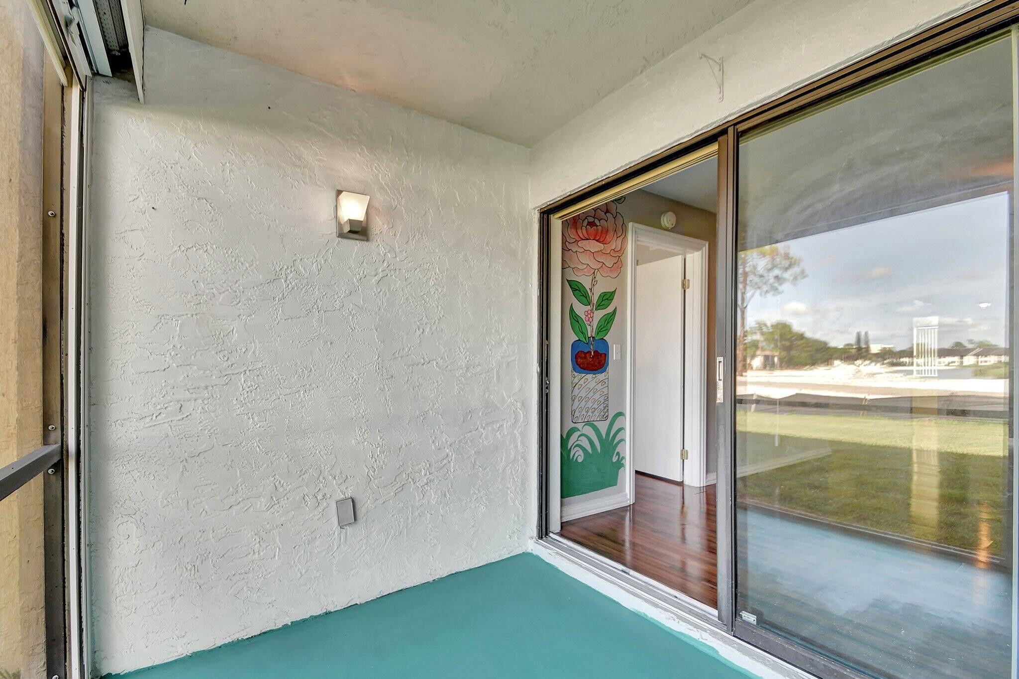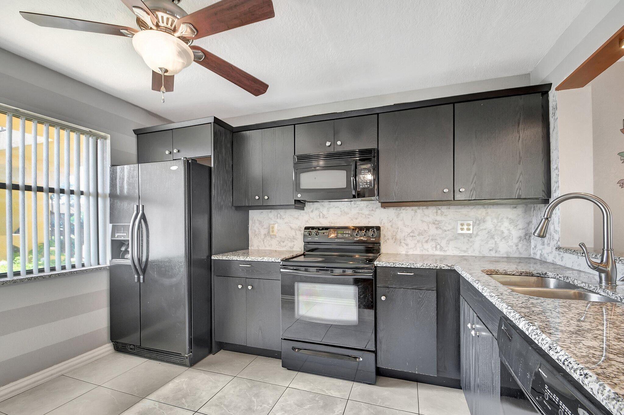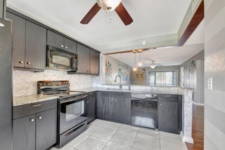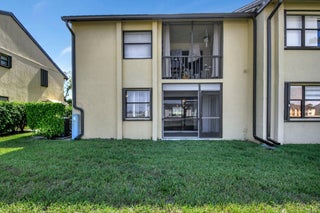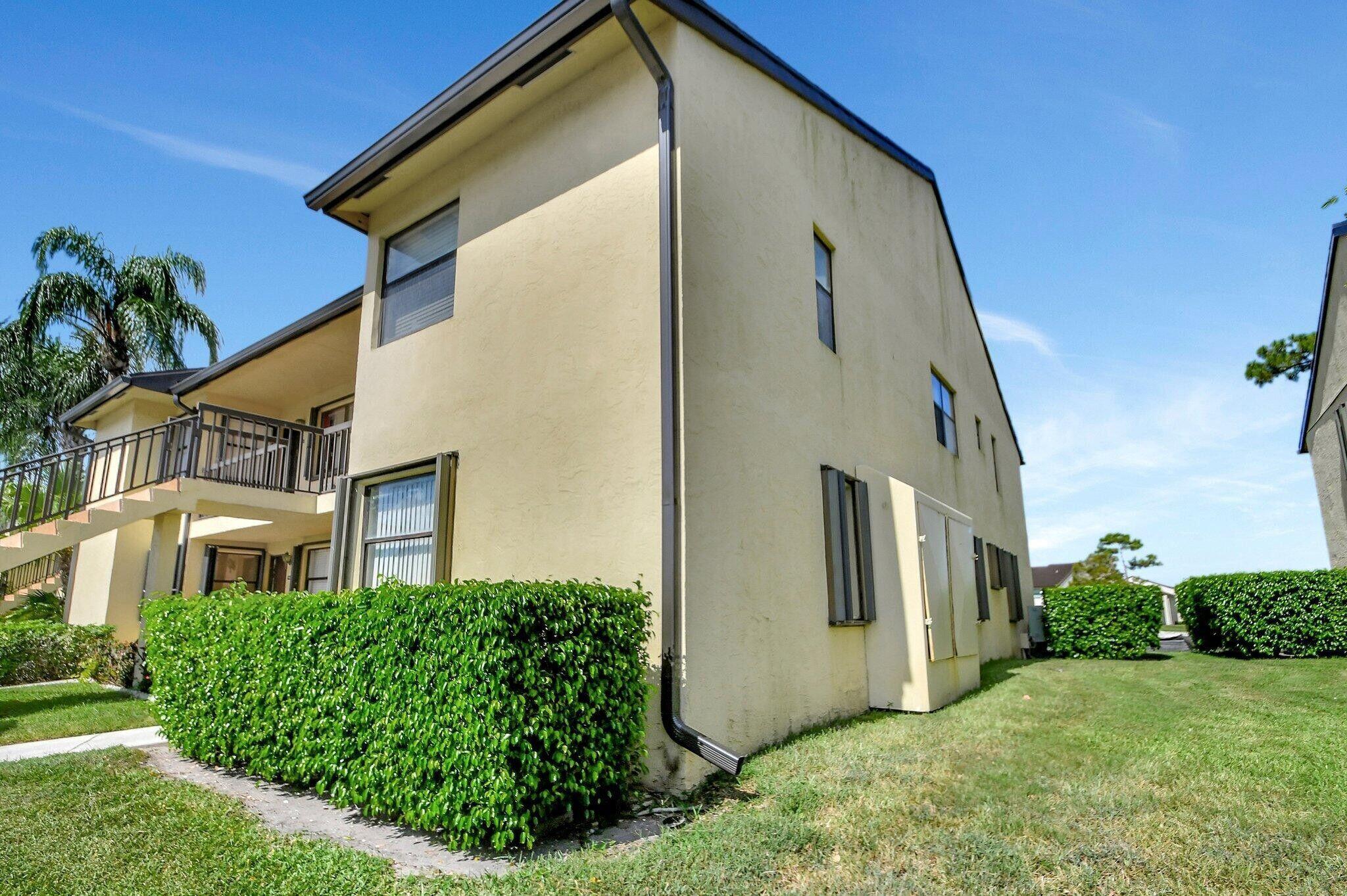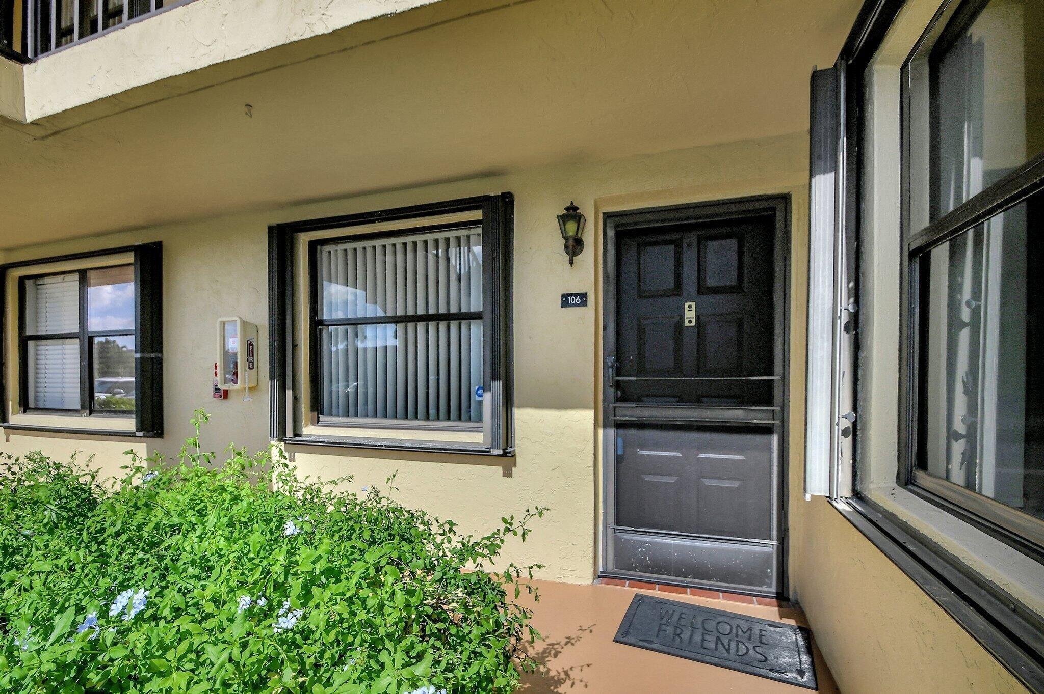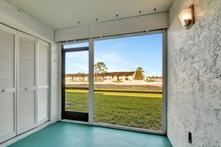A beautiful 2/2 condo with a golf course view. It has beautiful laminate floors throughout the living space and ceramic tile floors in the bathrooms. It has a walk-in closet in the master bedroom. The kitchen has granite counter tops, self closing cabinets and drawers and a breakfast bar. It has storm shutters. Roof updated in 2023. The water heater; air conditional; washer and Dryer was replaced in 2021. No Lease First Two Years/No Age Restriction. HOA as it includes: Cable, Lawn Care, Water, Pool, Clubhouse, Insurance on the Building, Roof Maintenance.