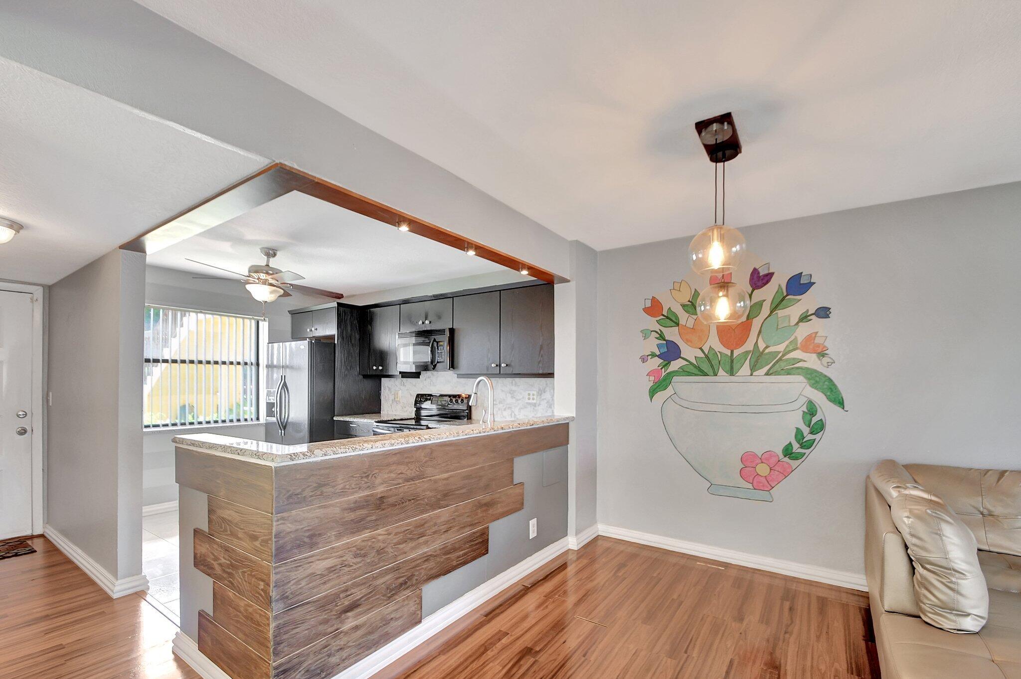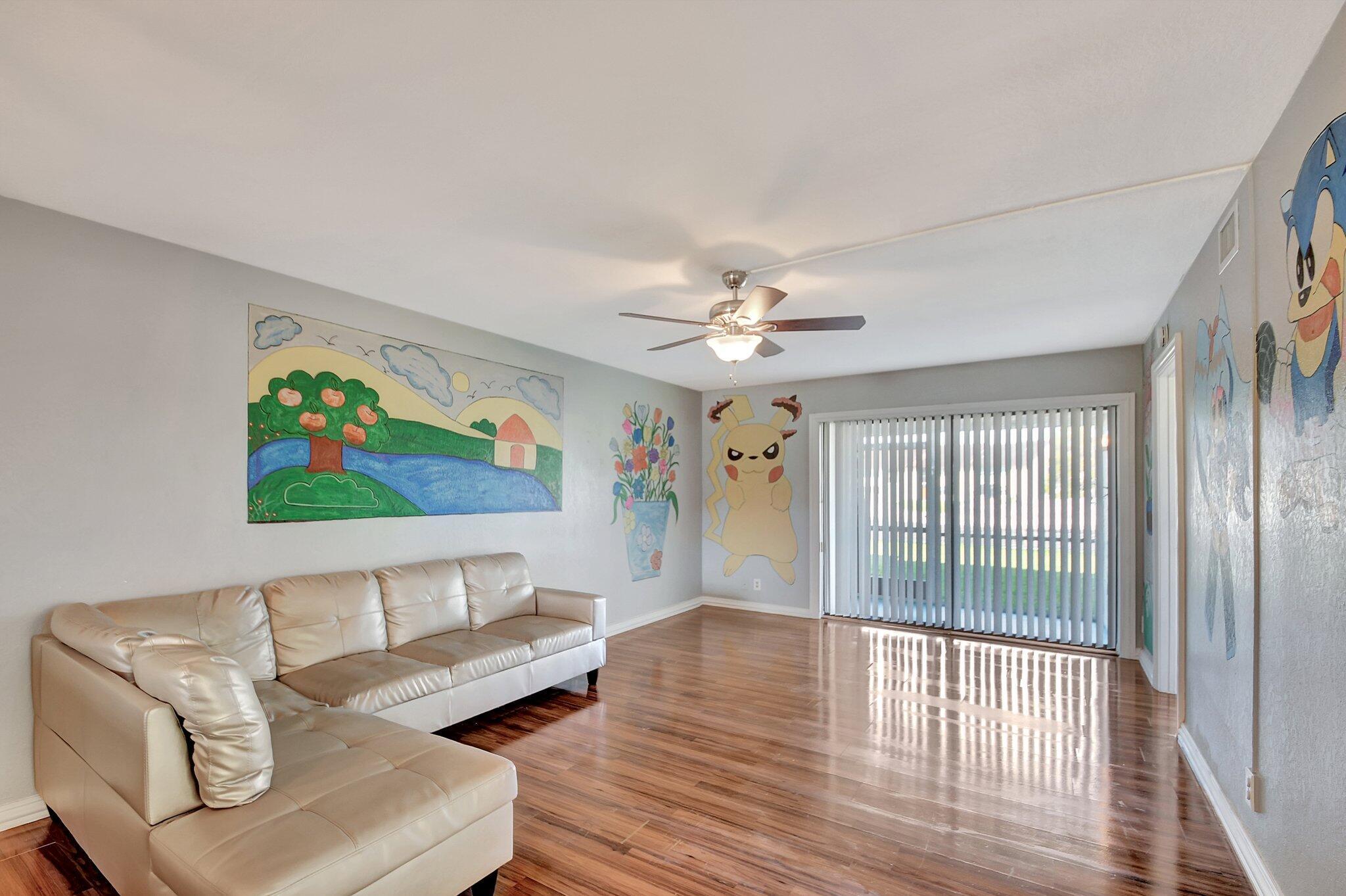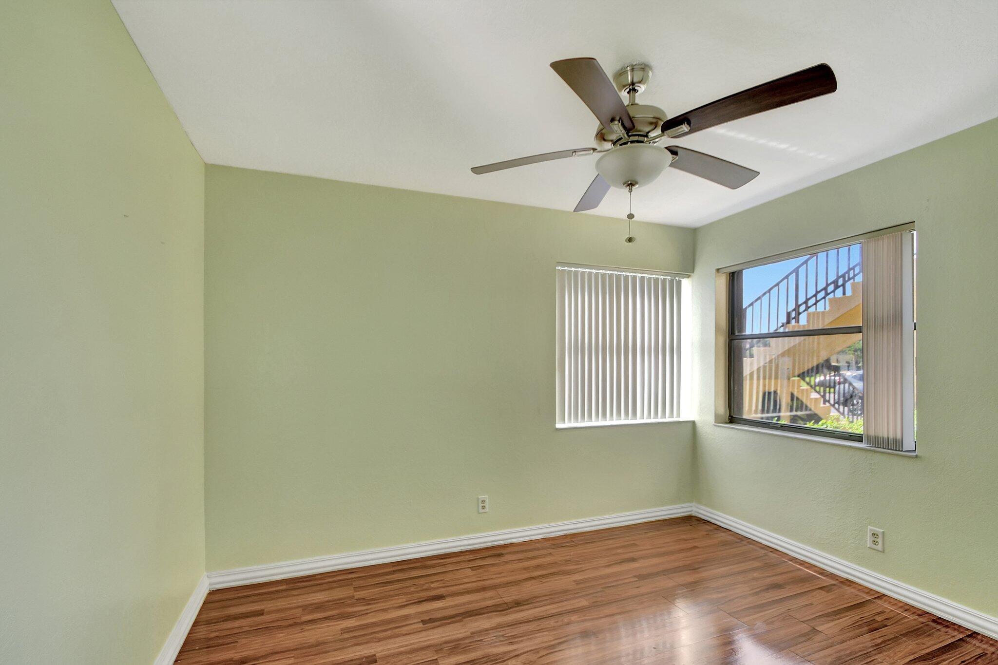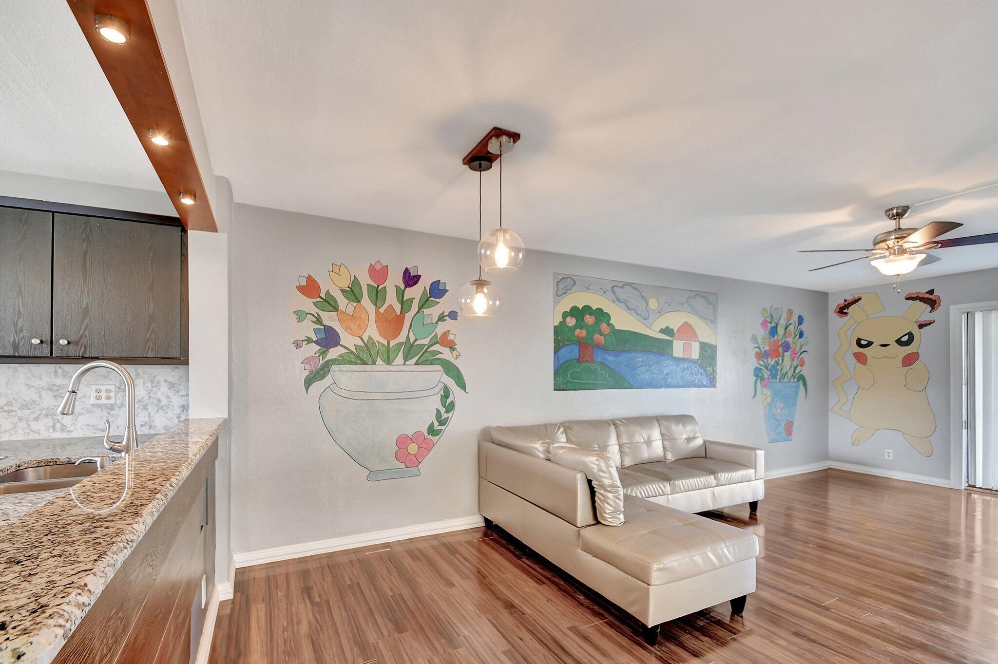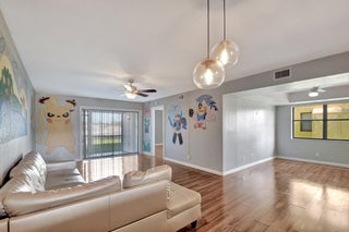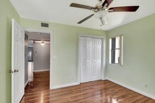 A beautiful 2/2 condo with a golf course view. It has beautiful laminate floors throughout the living space and ceramic tile floors in the bathrooms. It has a walk-in closet in the master bedroom. The kitchen has granite counter tops, self closing cabinets and drawers and a breakfast bar. It has storm shutters. Roof updated in 2023. The water heater; air conditional; washer and Dryer was replaced in 2021. No Lease First Two Years/No Age Restriction. HOA as it includes: Cable, Lawn Care, Water, Pool, Clubhouse, Insurance on the Building, Roof Maintenance.