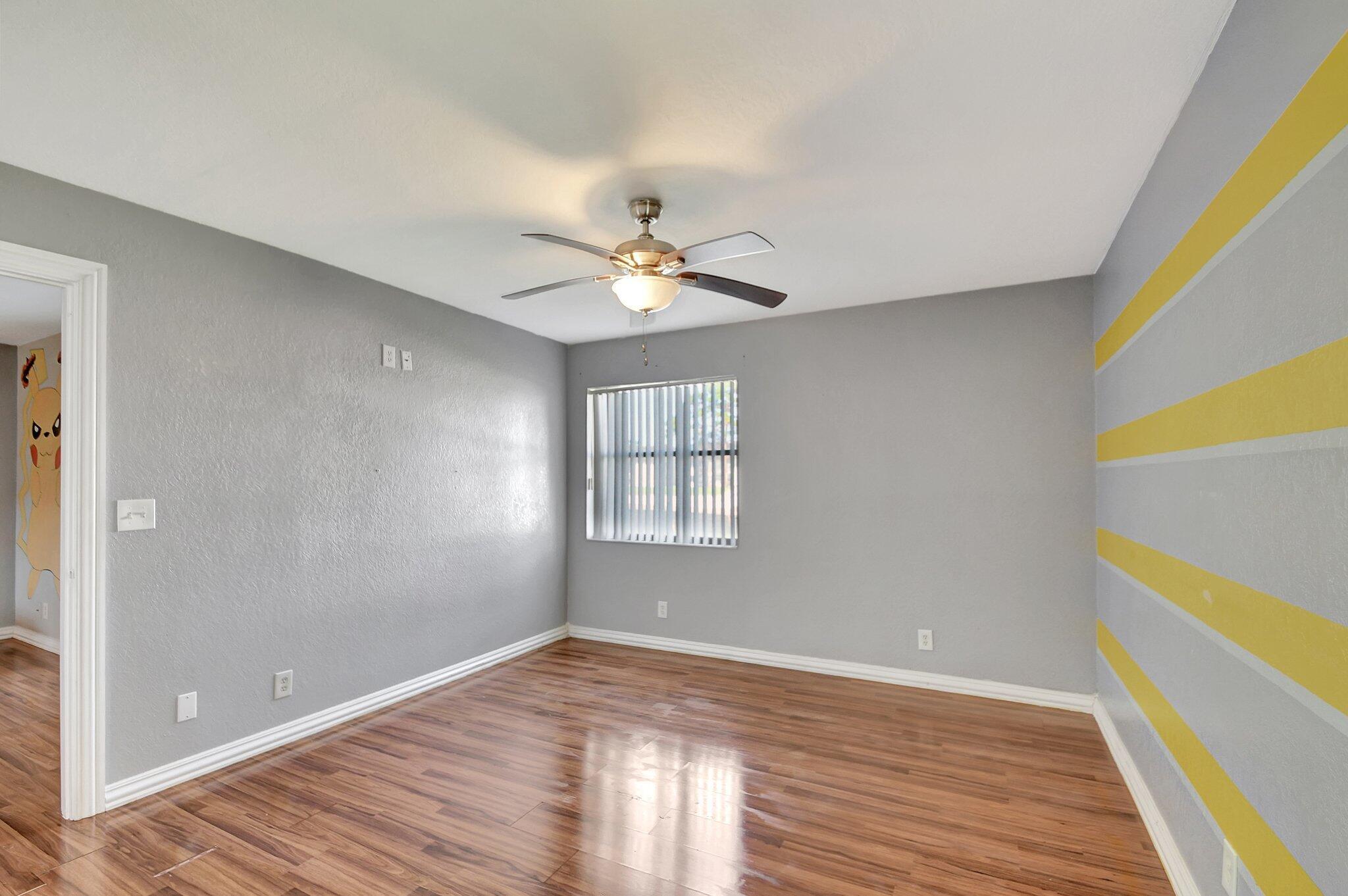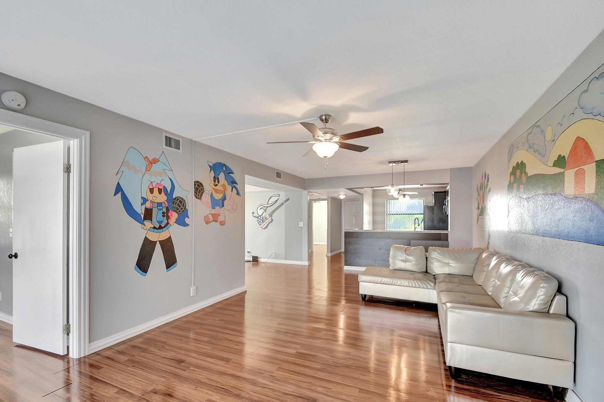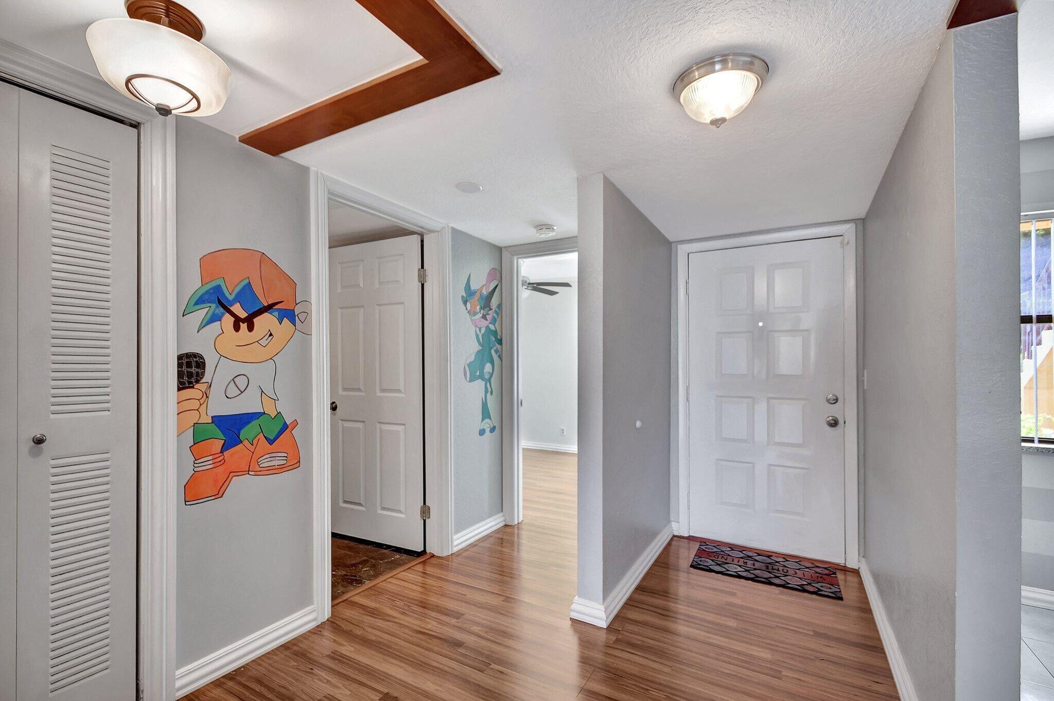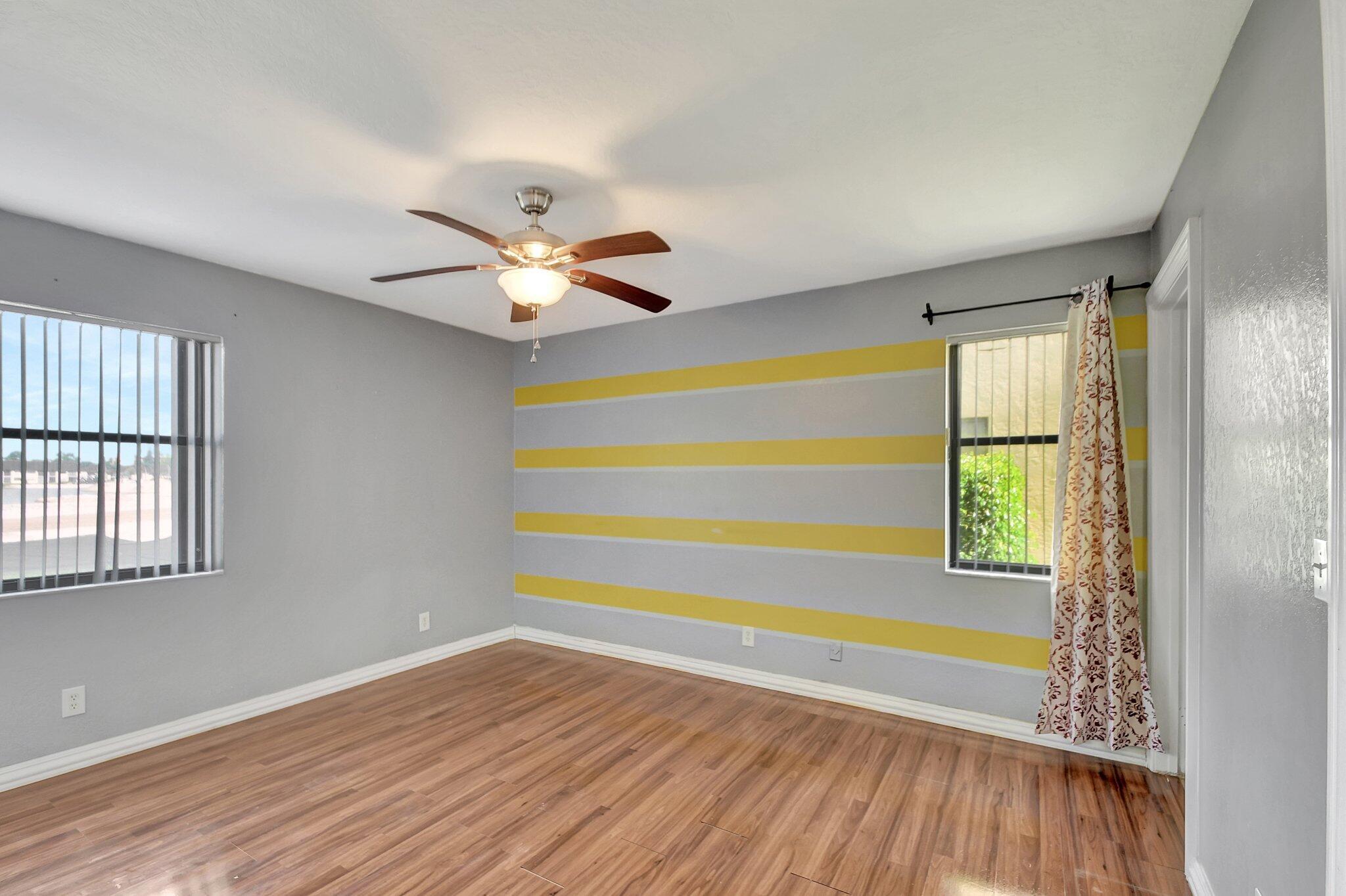 A beautiful 2/2 condo with a golf course view. It has beautiful laminate floors throughout the living space and ceramic tile floors in the bathrooms. It has a walk-in closet in the master bedroom. The kitchen has granite counter tops, self closing cabinets and drawers and a breakfast bar. It has storm shutters. Roof updated in 2023. The water heater; air conditional; washer and Dryer was replaced in 2021. No Lease First Two Years/No Age Restriction. HOA as it includes: Cable, Lawn Care, Water, Pool, Clubhouse, Insurance on the Building, Roof Maintenance.