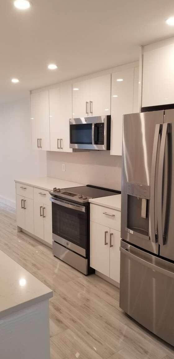 Beautiful renovated condo in Wynmoor. Brand new kitchen and bathrooms. Wood Look porcelain floors throughout, Hurricane glass enclosed patio for additional living space, LED recessed lighting, Walk in Closets in both bedrooms. Zero entry walk in showers in both bathrooms, Washer/Dryer hookup in unit!!!