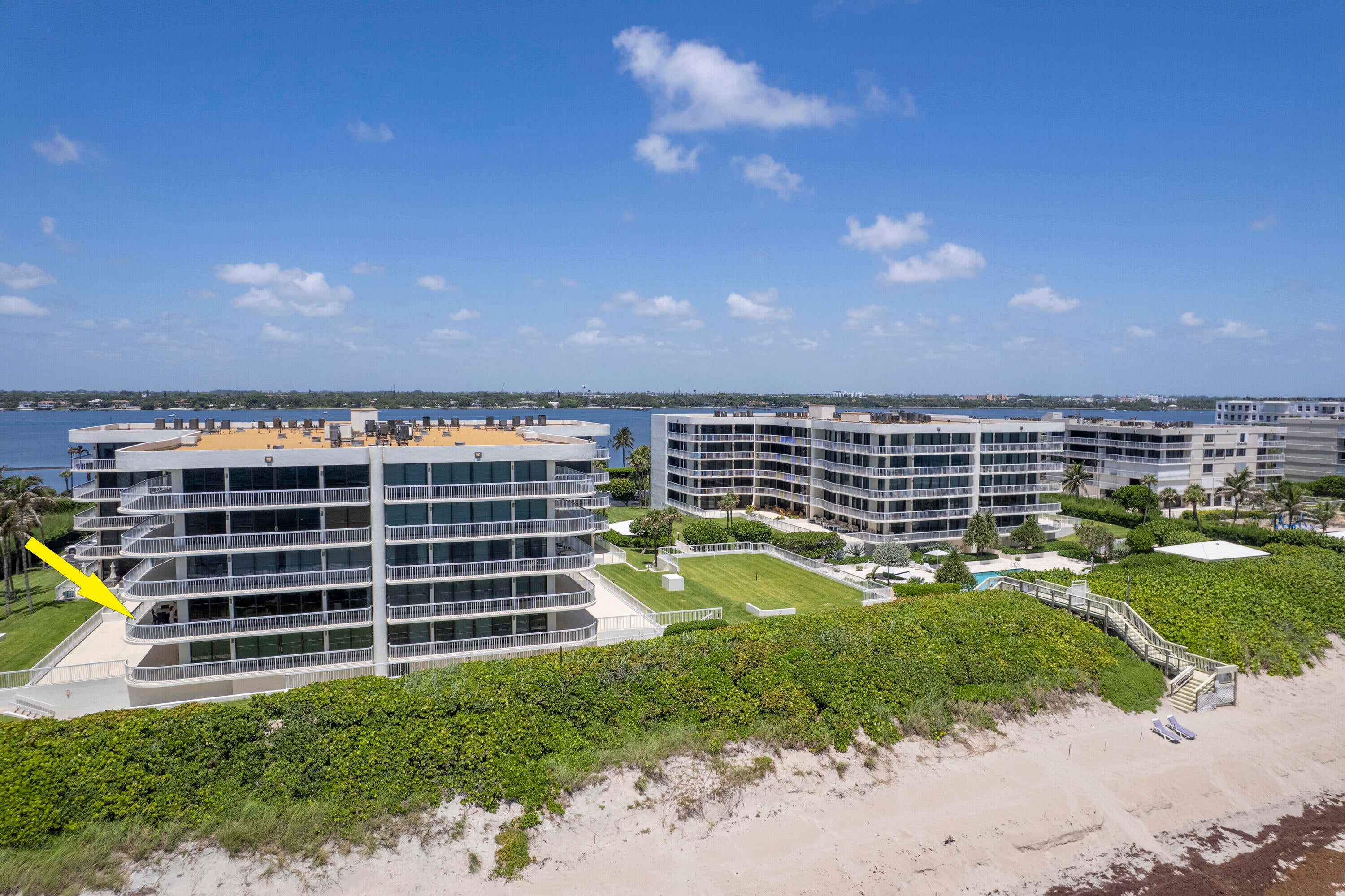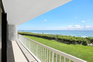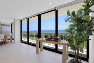 Expansive oceanfront views from this pristinely renovated three bedroom, two and a half bath second floor corner condo unit with full wrap-around balcony! Take in the extraordinarily wide range ocean views from the living room, kitchen, all three bedrooms and the spacious balcony with loungers and outdoor dining table. Be lulled to sleep with the soothing sounds of breaking waves on the shoreline from each room, offering balcony access.Classically designed for comfort and warmth this welcoming, fully furnished turnkey condo unit boasts new wood flooring throughout, a bright and open updated eat-in kitchen with quartz countertops, custom cabinetry, stainless steel appliances and impact windows and sliders throughout. This unit offers a laundry room with washer and dryer. Relax ...poolside on the expansive new Meridian pool deck with sun loungers, umbrellas and covered entertaining space. Utilize the heated pool, spa or direct beach access for added ocean enjoyment. Take in a round of tennis, pickleball or basketball on the newly resurfaced courts, or explore the fitness center, clubroom or sauna! The Meridian offers a 24-hour manned guardhouse and a designated garage parking space and guest parking. Season in peaceful serenity for 2026 while being located only minutes away from the best of the Palm Beaches for dining, entertainment, shopping and more!