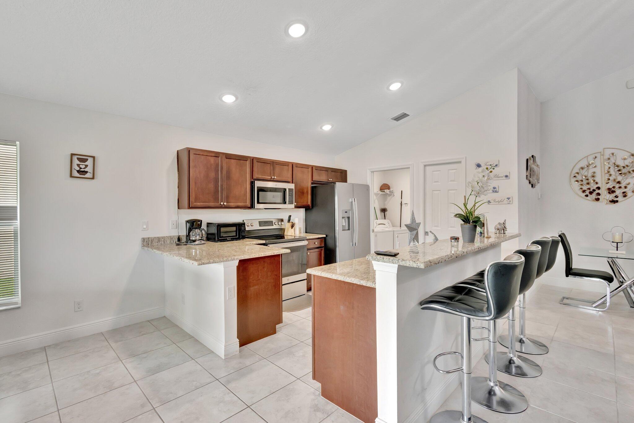 This charming 3-bedroom, 2-bath home offers a spacious open floor plan with vaulted ceilings and an inviting covered lanai. The main living areas feature 18'' ceramic tile, while the bedrooms are comfortably carpeted. The open-concept kitchen is equipped with stainless steel appliances, granite countertops, a pantry, and overlooks both the great room and dining area, making it the heart of the home. The beautifully designed master suite boasts a tray ceiling, dual oversized walk-in closets, and a luxurious master bath with a double vanity, soaking tub, walk-in shower, and a linen closet. Both bathrooms feature tiled showers and cultured marble vanities.This Community features a quiet country setting while being convenient to everything with manned security gate, resort style pool, club house, basketball courts, sidewalks & jogging trails. Low HOA dues.