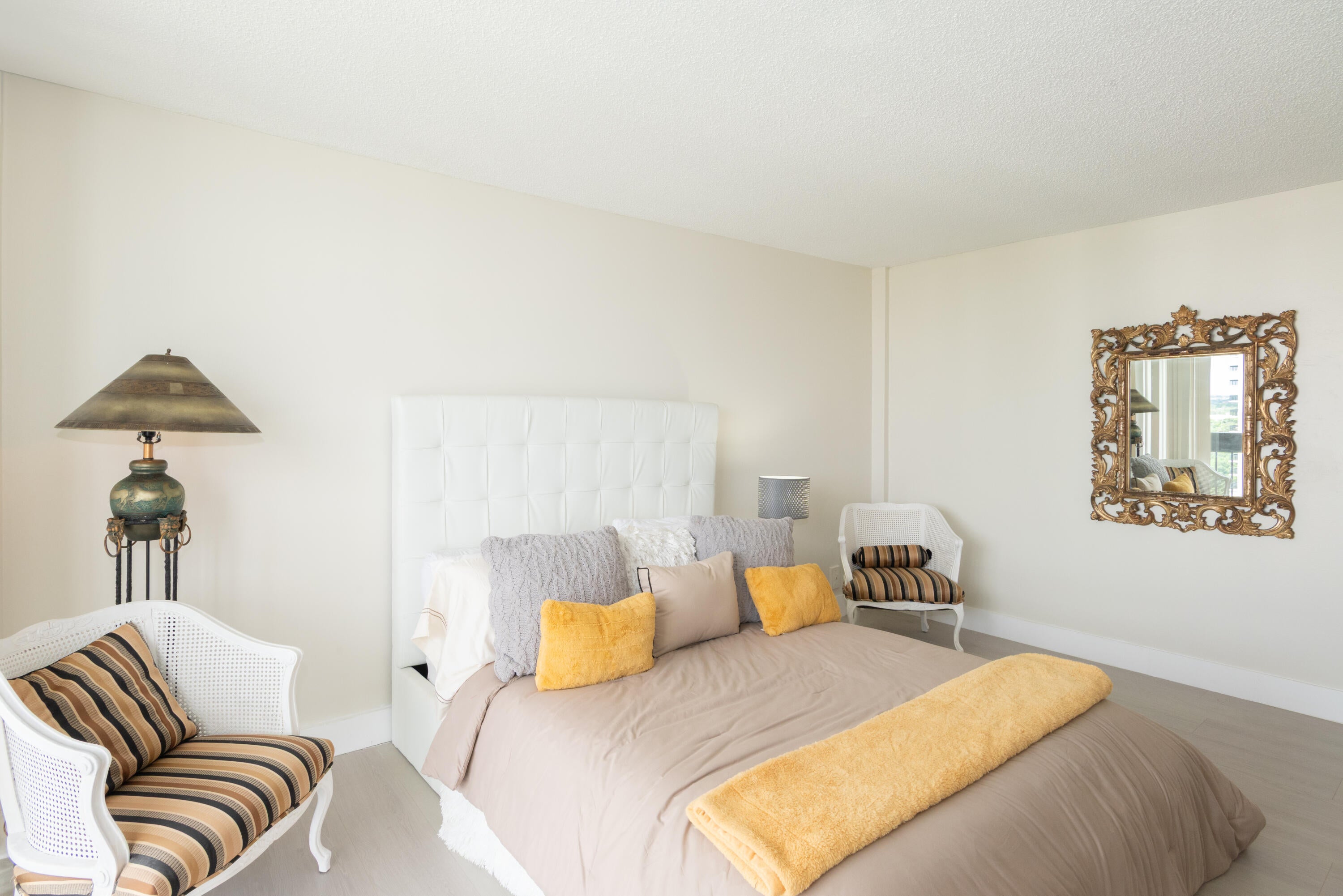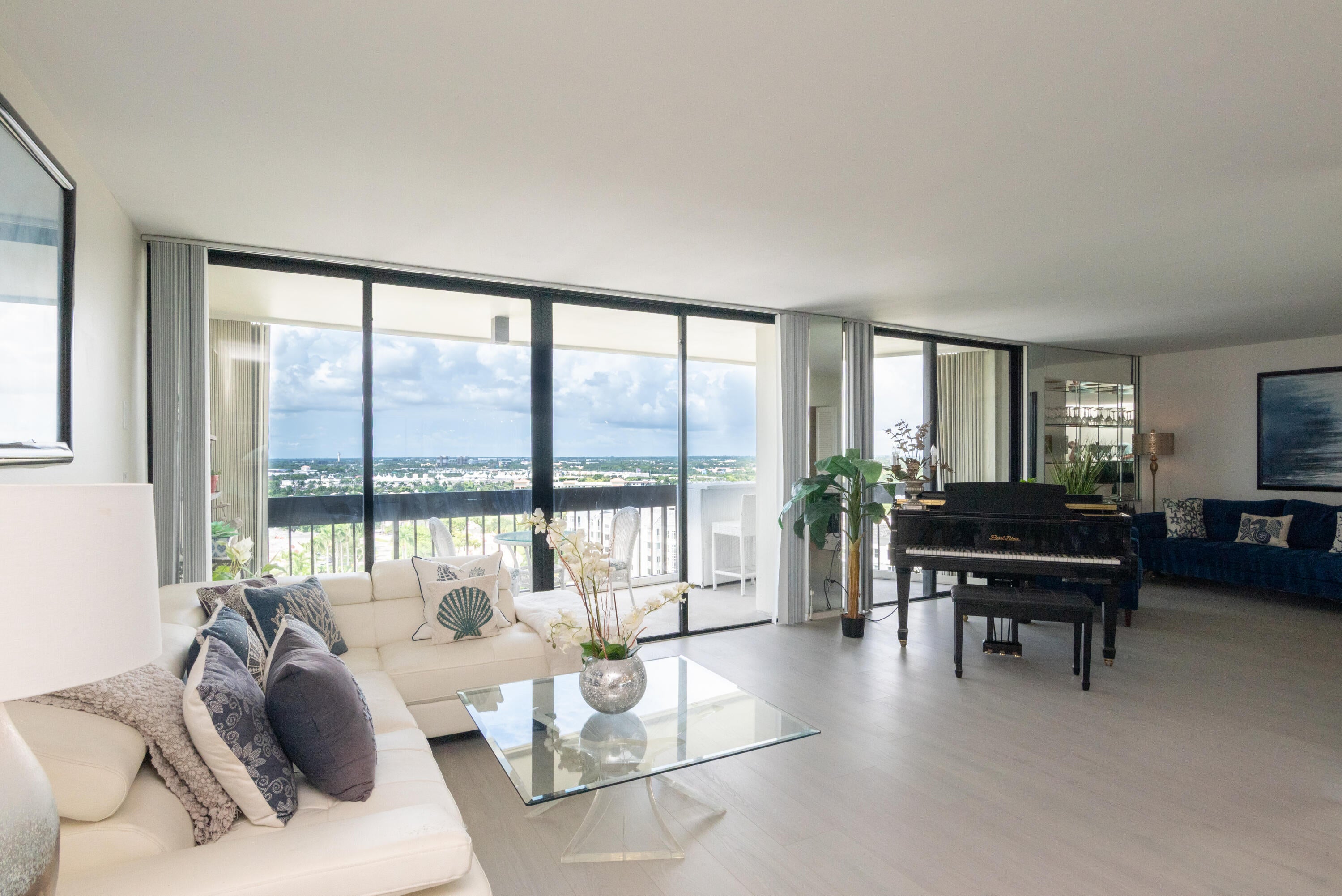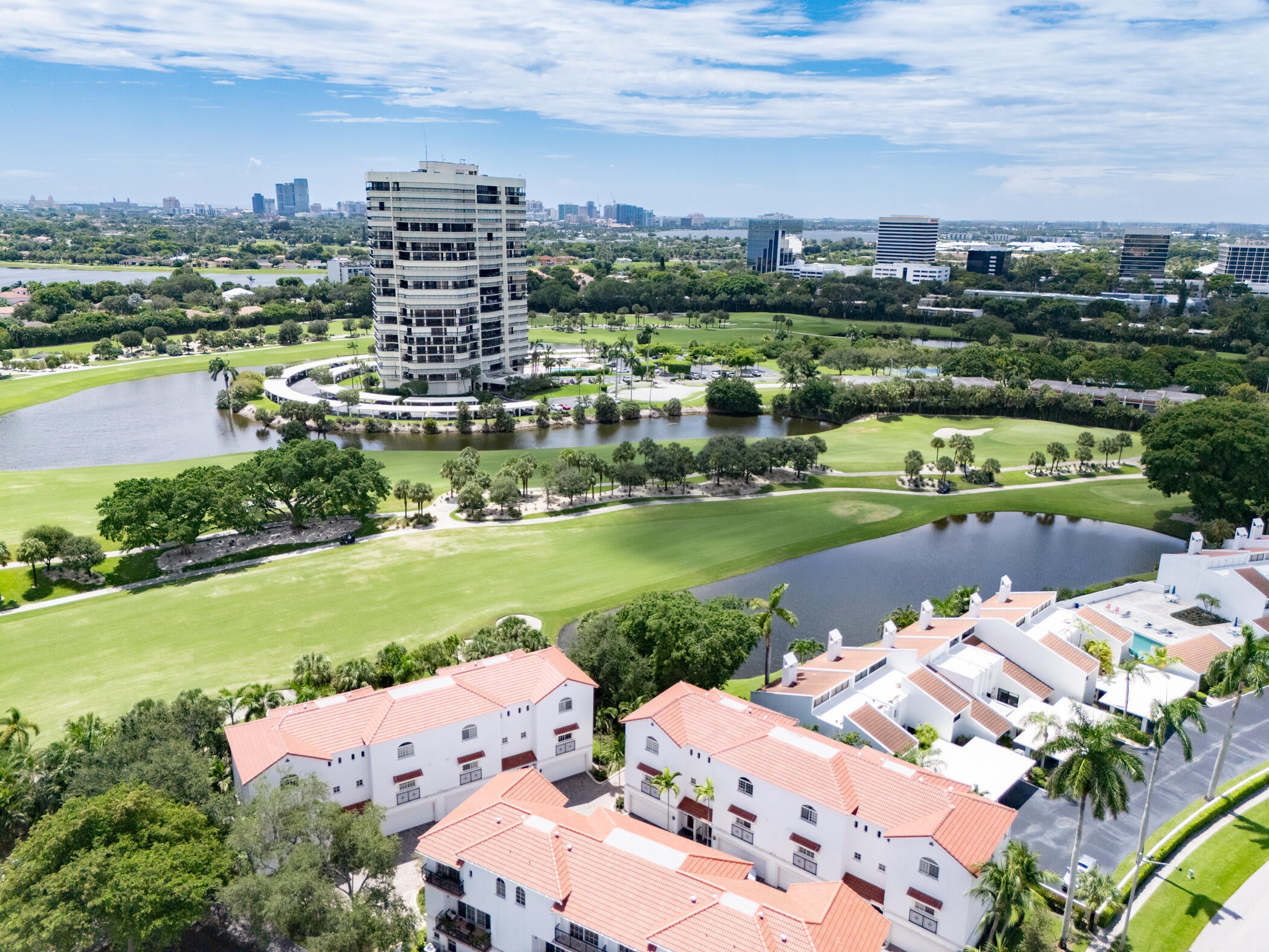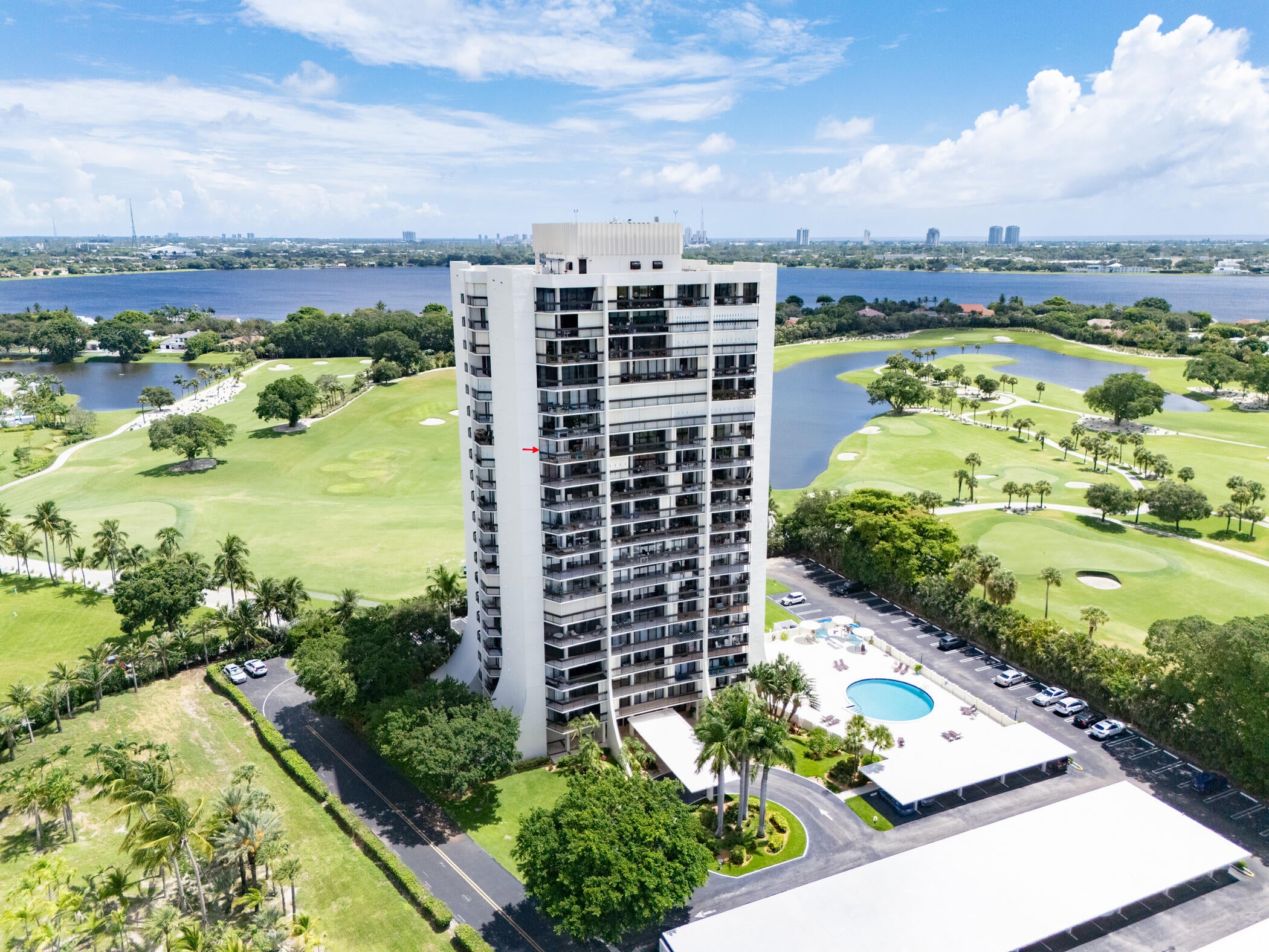 Enjoy the Magnificent panoramic views of the Golf Course in this beautiful open 2 bedroom 2 bath corner unit located in the prestigious gated community of Lands of the President. Views are great day and night as at night you'll get the beautiful lights from the city & Outlets. This condo is move in ready & has floor to ceiling sliding doors, hurricane shutters & has 2 balconies for plenty of outdoor living. Newer air conditioner, Granite counter tops, beautiful laminate flooring & freshly painted. Unit has 2 parking spaces 1 covered & 1 uncovered. Doorman building with manager on site in gated community. HOA fee Includes Cable, water, Fitness center, party room and beautiful pool. Great location near I-95, Tanger outlets, Beaches, Palm beach airport, City place & downtown West Palm Beach