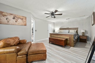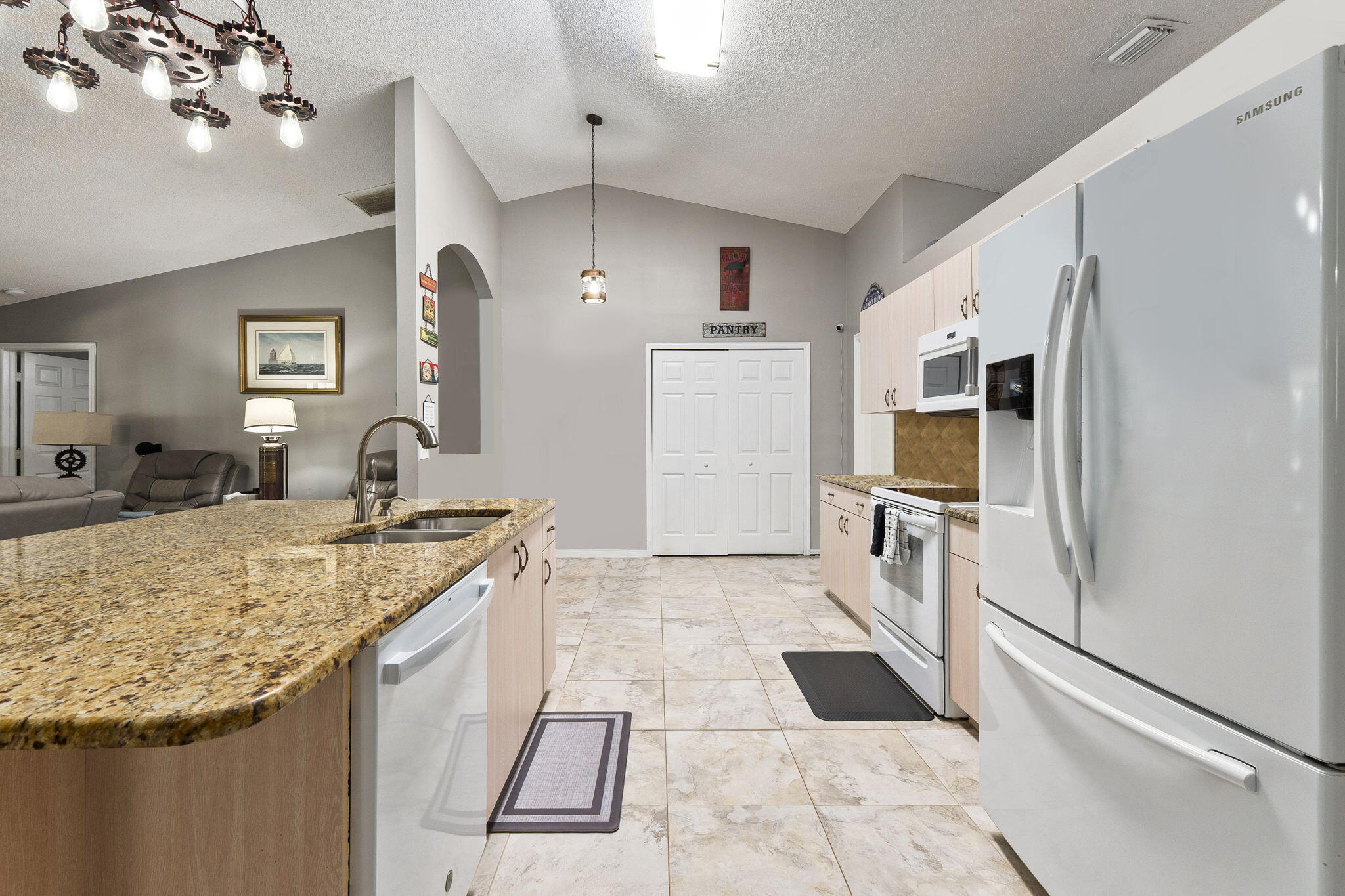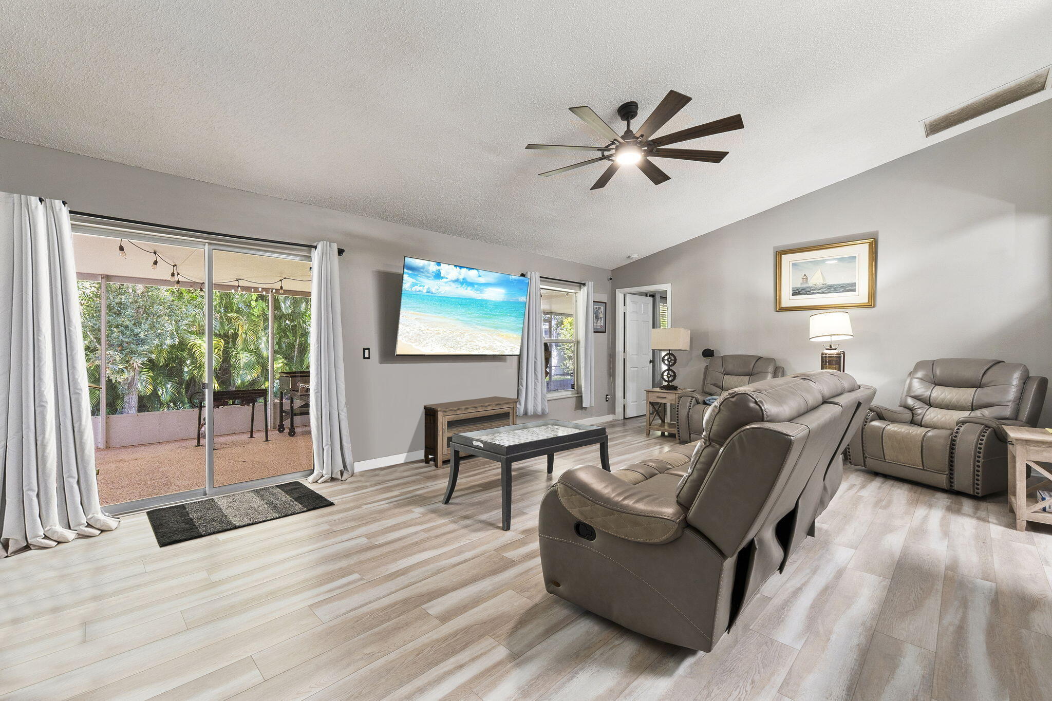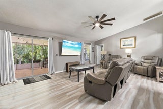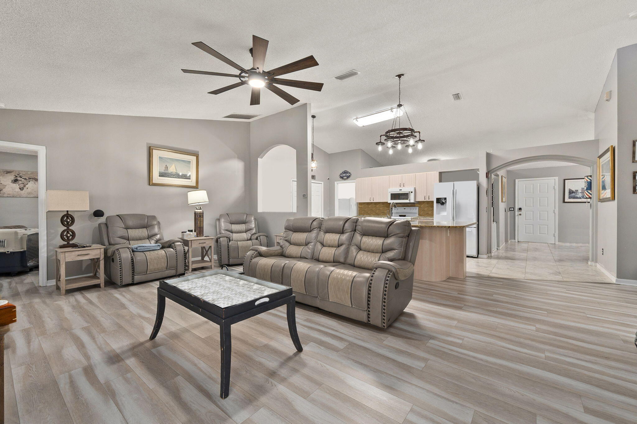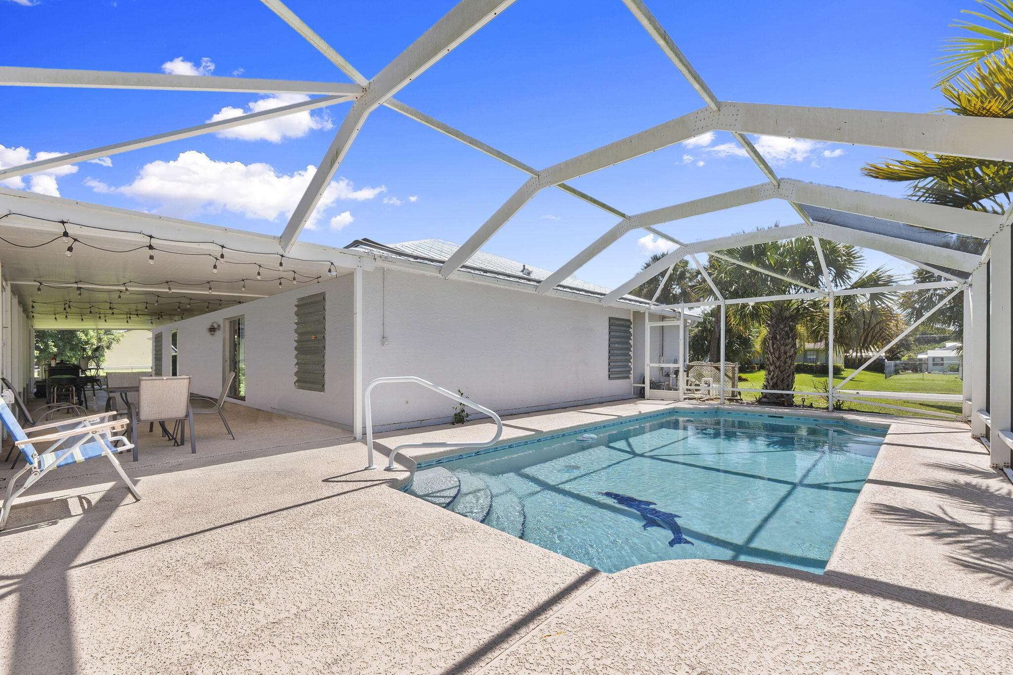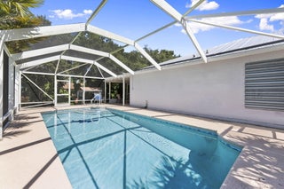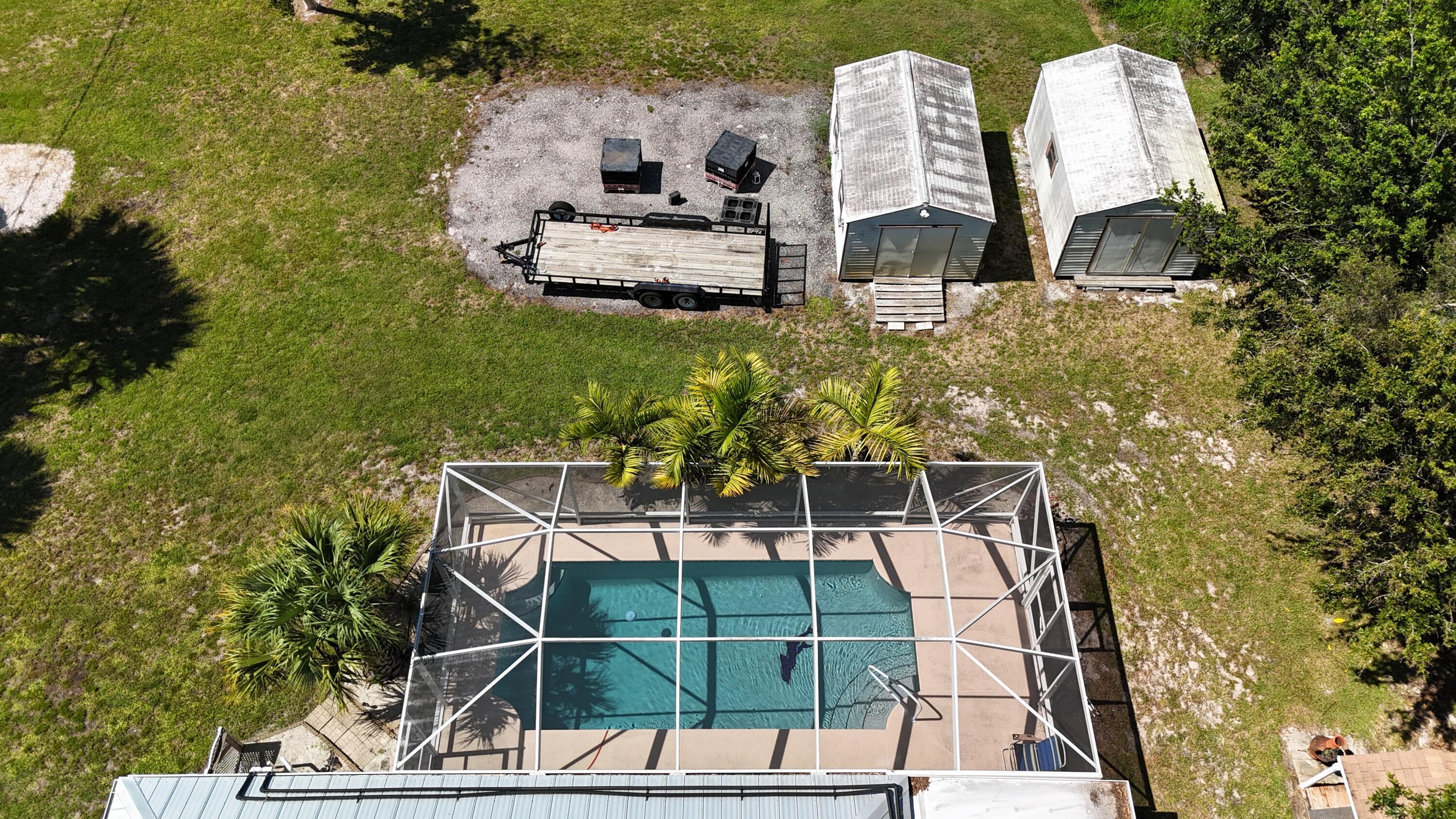 This spacious CBS home offers 3 bedrooms, 2 full baths, w/ over 2,000 SF of living space--w/ a flexible layout that could easily accommodate a 4th bedroom or home office. Inside, you'll like the open-concept design, chef's kitchen w/ granite countertops, ample cabinetry, and tile flooring throughout the main living areas. The primary bedroom features an en-suite bath & sitting area. Enjoy your screened-in pool and massive 12' x 60' covered patio, perfect for relaxing or entertaining year-round. Sitting on a .46/acre double lot with no HOA, there's plenty of room to bring your boat, RV, or toys--plus two large storage sheds for the ''extras''. Major updates include a metal roof and A/C system installed in 2021. Just minutes from beaches, shopping, and dining--this one truly has it all.