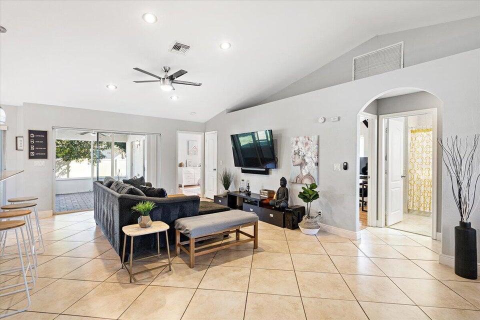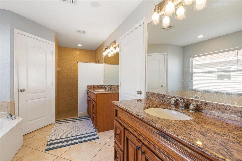 SPACIOUS 4 BEDROOMS AND 3 FULL BATH HOME. OPEN FLOOR PLAN, TILE AND WOOD LAMINATE FLOORING, GRANITE COUNTER TOPS WITH 42 INCH WOOD CABINETS, STAINLESS STEEL APPLIANCES, DECORATIVE BACK SPLASH, BRICK PAVERS IN DRIVEWAY AND PATIO, UPGRADED LIGHT FIXTURES & CEILING FANS. FULLY FENCED YARD WITH PLENTY ROOM FOR A POOL. MATURE LANDSCAPE WITH SPRINKLER SYSTEM. LOTS OF FRUIT TREES, CLOSE TO ENTERTAINMENT AND FINE DINING.