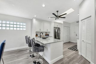 Welcome to your renovated dream home with 3-bedroom, 2-bath this gem offering breathtaking lake views and a spacious expanded patio. Designed for elegance, the home boasts quartz countertops, modern lighting, and ceiling fans luxury vinyl throughout, Also, includes brand-new appliances, custom blinds, skylights, vaulted ceilings, and modern plumbing. a state-of-the-art 2023 A/C guarantees comfort in all seasons. . Located in a vibrant 55+ community, check out the renditions of the SOON COMPLETED MILLIION $$ updates to the clubhouse. Social butterflies will adore the Palm Isles clubhouse not far from your new home, where mingling with neighbors becomes a daily delighted with billards, art classes, fitness and much more.