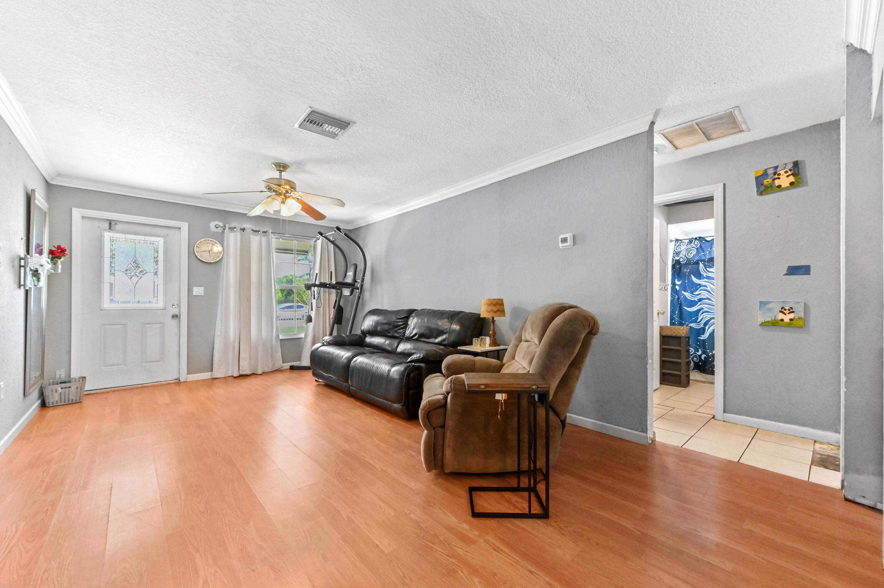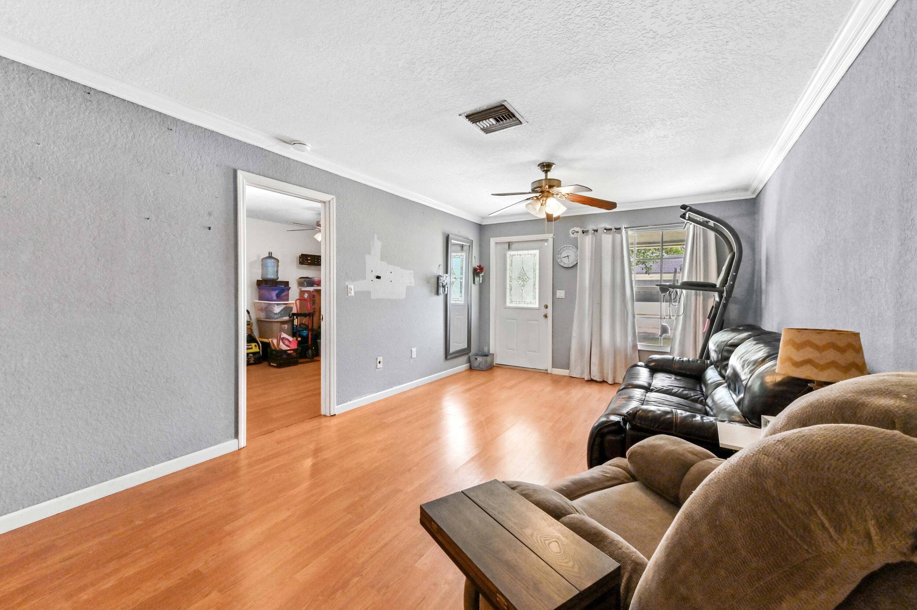 Discover a true sense of freedom and space in this charming single-family home, perfectly positioned on a generous corner lot within the non-HOA community of Palm Beach Farms in West Palm Beach, FL. This inviting residence features 3 comfortable bedrooms and 2 full bathrooms, offering a practical and serene living environment. Step inside to a welcoming living room that seamlessly flows into the combined dining and kitchen area, creating an open and connected heart of the home. The kitchen is both functional and stylish, boasting a classic tiled backsplash and a convenient laundry/storage closet for added utility.Every bedroom in this home provides ample closet space, ensuring organized living. Step outside to a delightful screened patio that offers a tranquil view of your spacious backyard, providing an ideal setting for relaxation or outdoor dining. The fully fenced yard, complete with sheds, offers plenty of room for gardening, play, and additional storage. This fantastic home is ideally located just minutes from West Palm Beach's vibrant array of fine shopping, diverse dining establishments, and a wealth of other attractions, providing the perfect blend of peaceful suburban living with easy access to all the conveniences you desire.