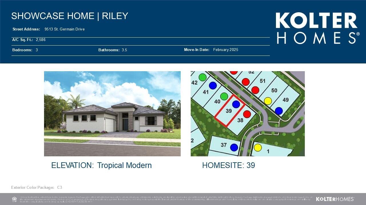 ***New Construction** Move in ready. Welcome to the newly built Riley floorplan by Kolter Homes, located in the gated community of L'Ambiance at Avenir. This spacious and elegantly designed home features 3 Bedrooms, 3.5 Bathrooms, a Flex Room, Great Room, Dining Room, Covered Lanai, and a 2-Car garage. Ideally positioned near the neighborhood entrance, mail kiosk, and the future Great Egret Clubhouse, this home offers both convenience and luxury.A striking 16' wide by 10' tall sliding glass door opens the Great Room to the lanai, creating a seamless indoor-outdoor living experience. The gourmet kitchen is outfitted with Cambria Portrush quartz countertops and a full-height matching backsplash. It features a cooktop and wall oven in place of a standard range, second-tier upper cabinets, and a complete cabinet panel package. The Owner's Bath offers a luxurious shower, while the secondary bath has been upgraded to include a shower in place of a tub. A laundry tub rough-in is included, and a gas stub-out is ready for a future pool heater. Surrounded by nature trails and located across from the upcoming Great Egret Clubhousefeaturing a restaurant, poolside bar, fitness center, pools, and sports courtsthis home combines high-end finishes, thoughtful upgrades, and a vibrant community lifestyle.